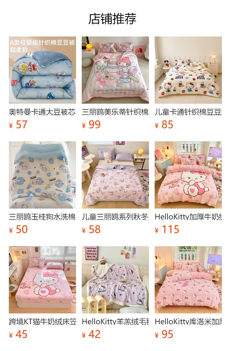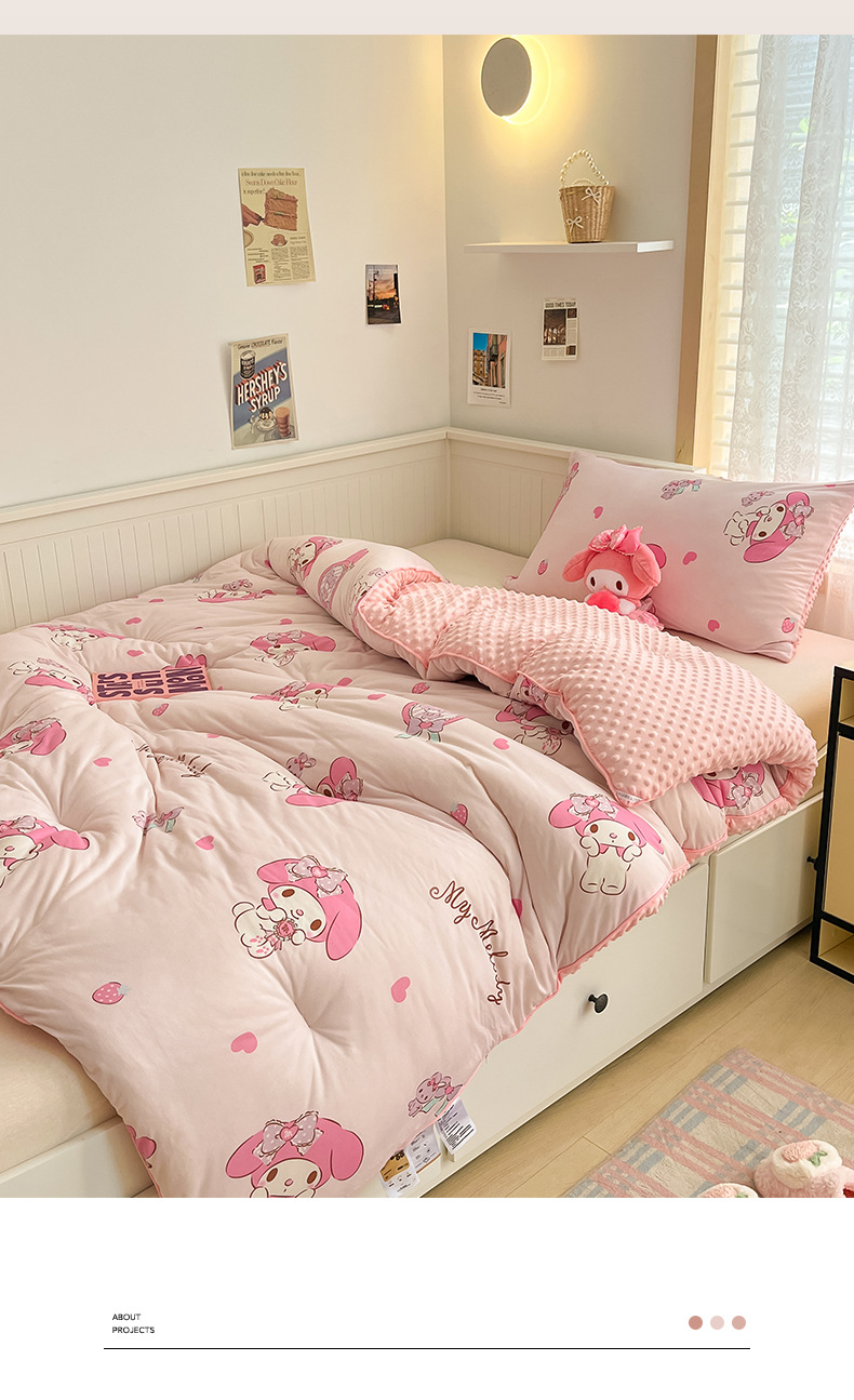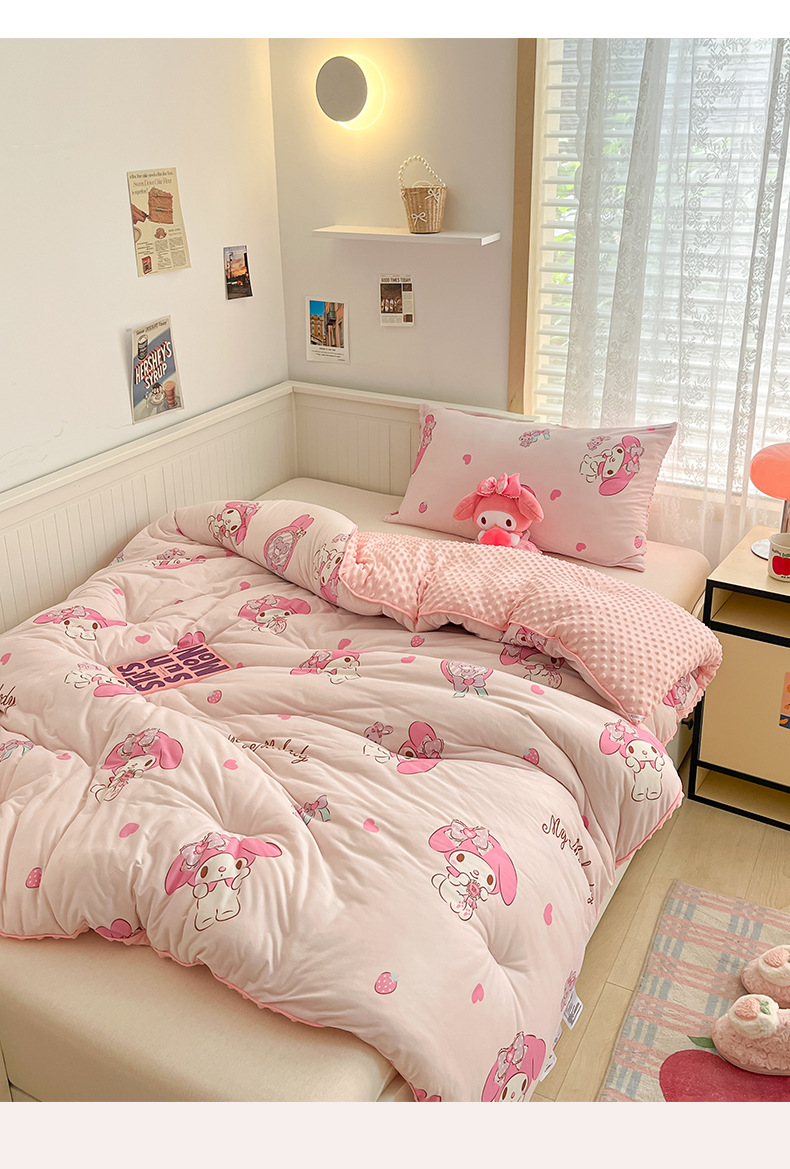 귀여운 멜로디 니트 코튼 빈 퀼트 코어 산리오 만화 두꺼운 겨울 퀼트 어린이 학생 싱글 더블 퀼트스토어 가기