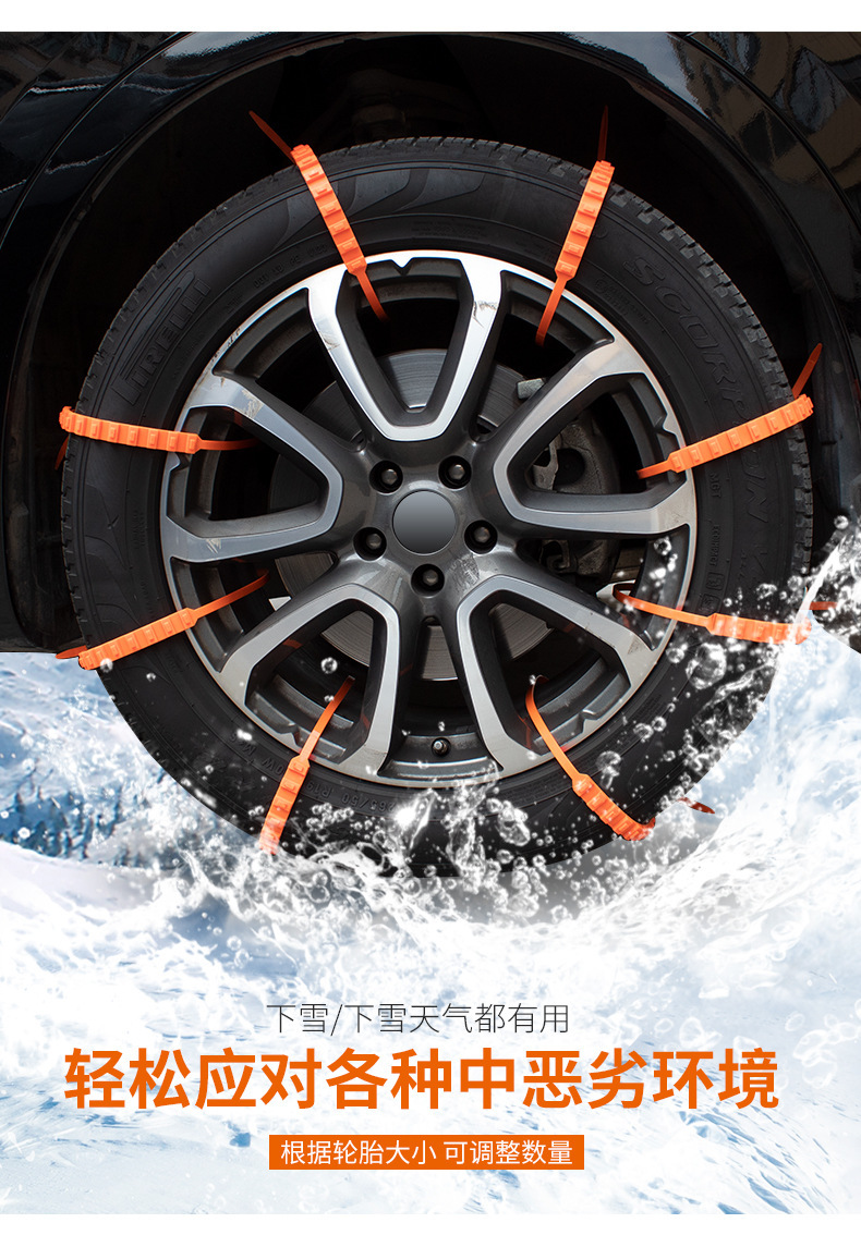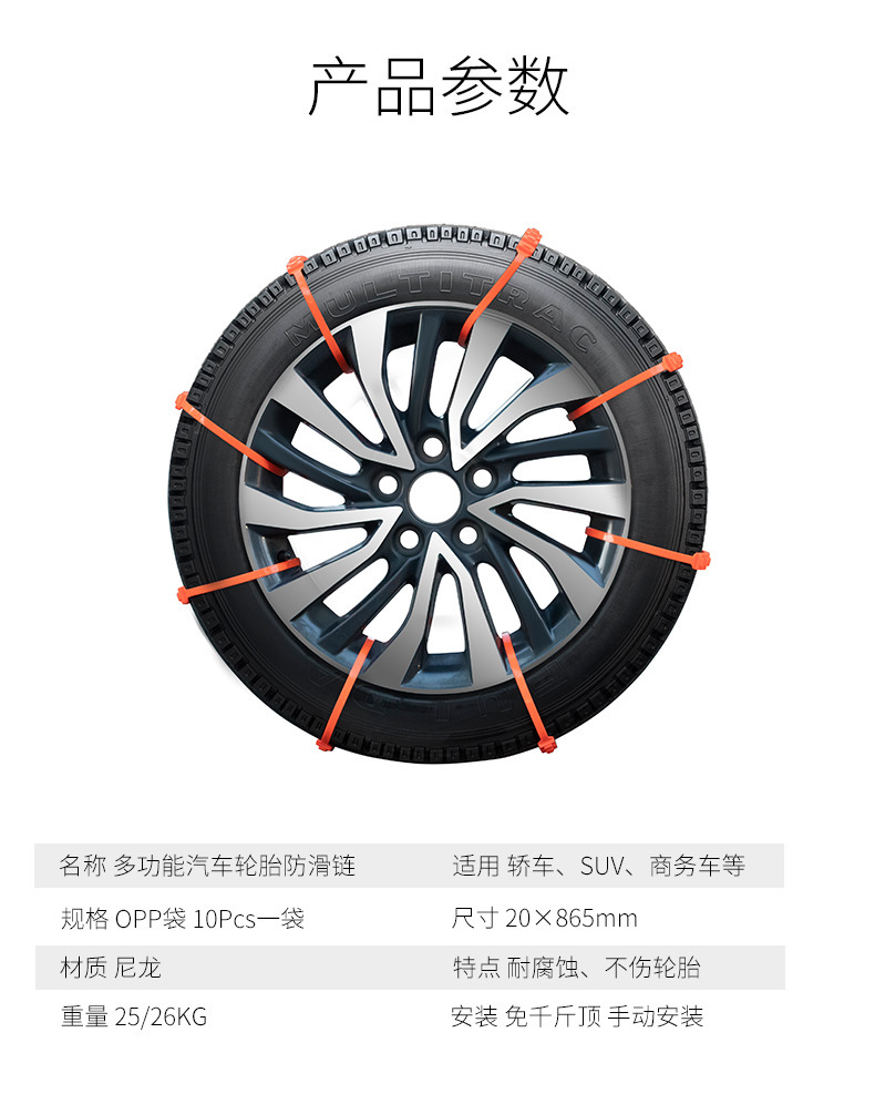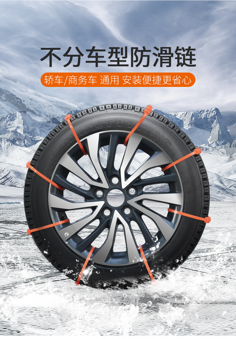 用途:用于雪地或泥泞道路汽车轮胎防滑,替代传统金属制防滑链条。