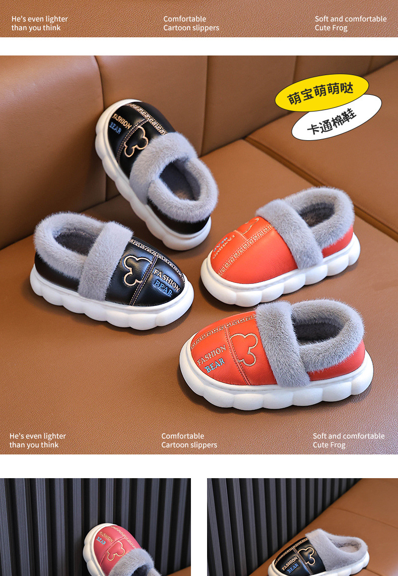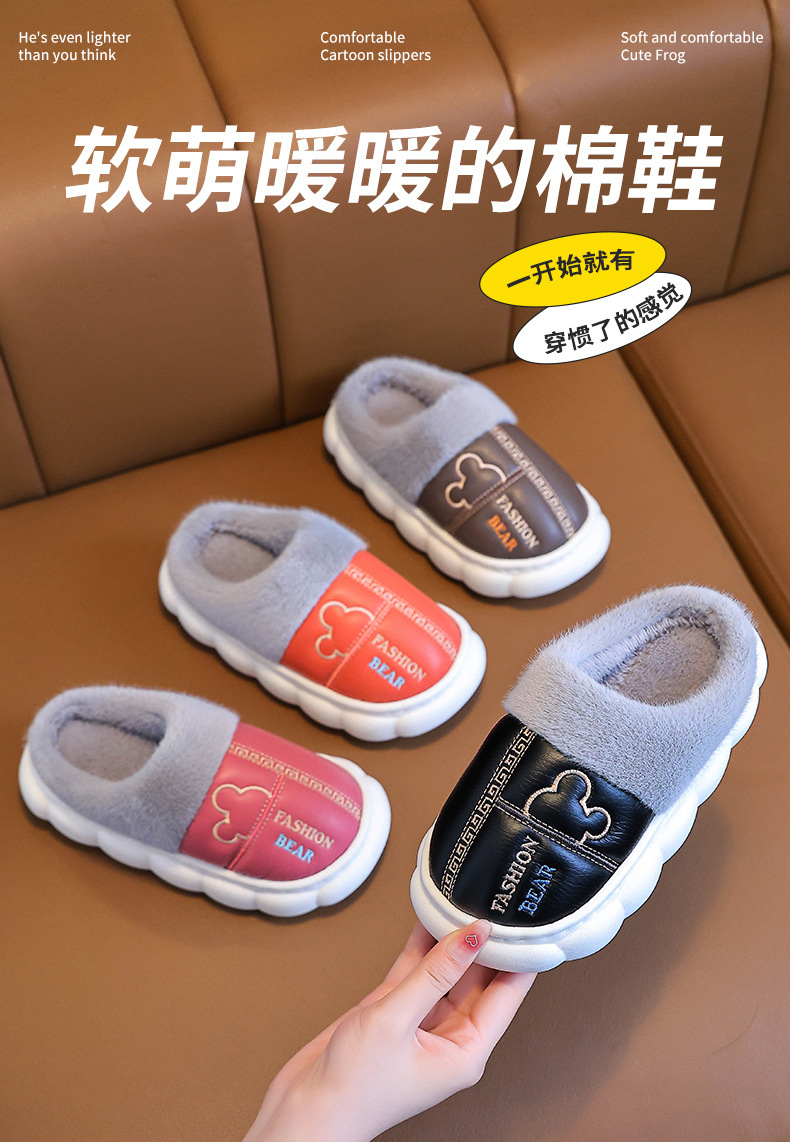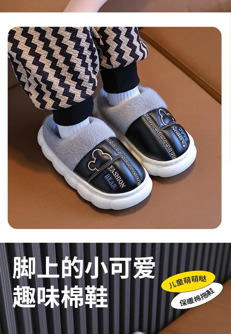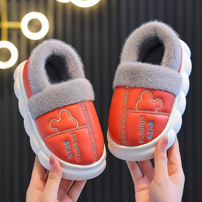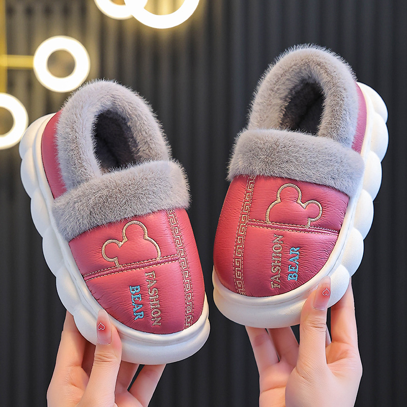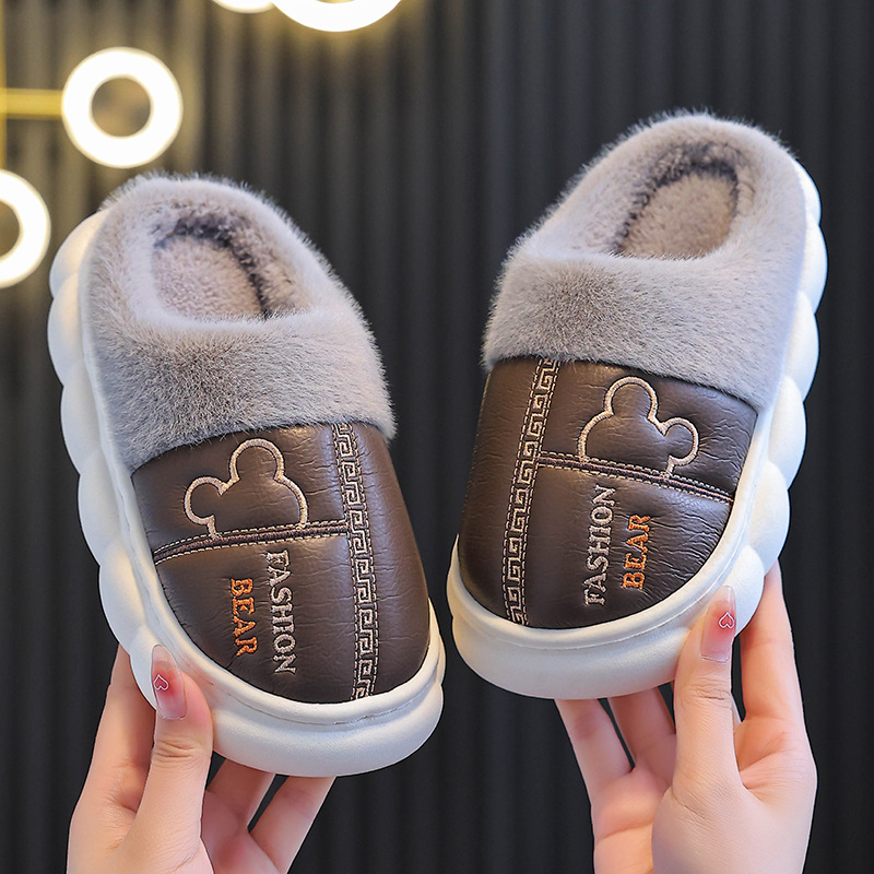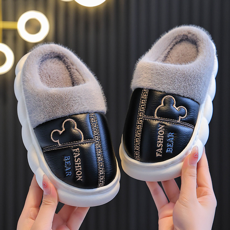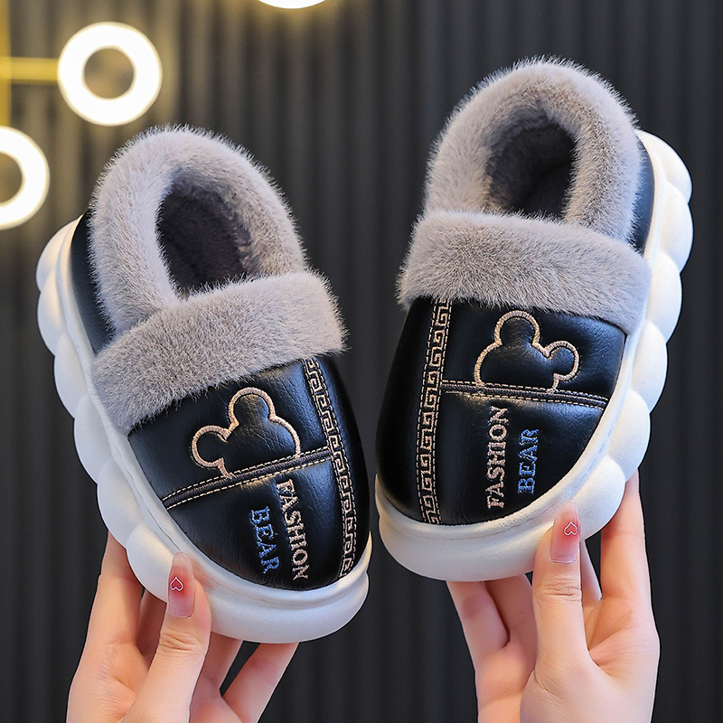 어린이 면화 슬리퍼 2024 새 소녀 소년 발 뒤꿈치 방수 미끄럼 방지 두꺼운 밑창 기모 가을과 겨울 가죽 면화 신발스토어 가기