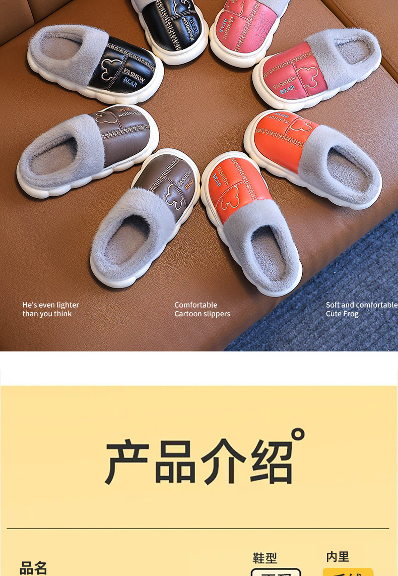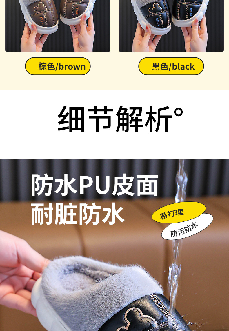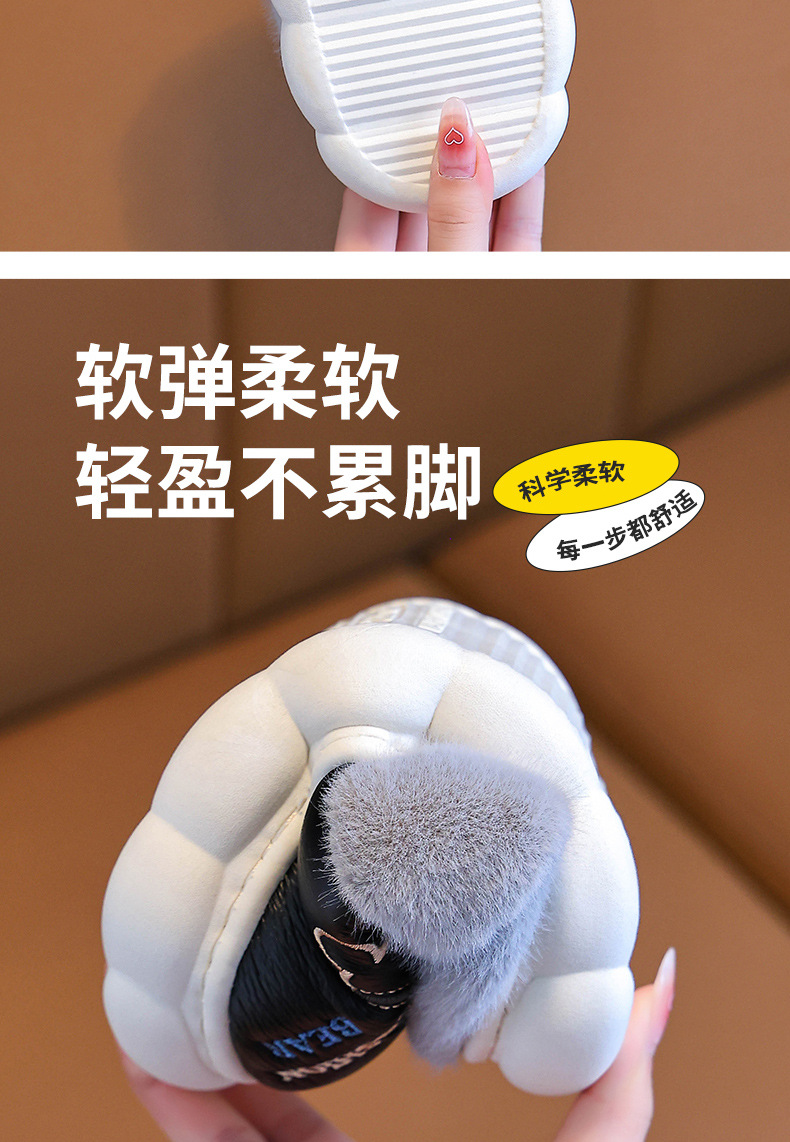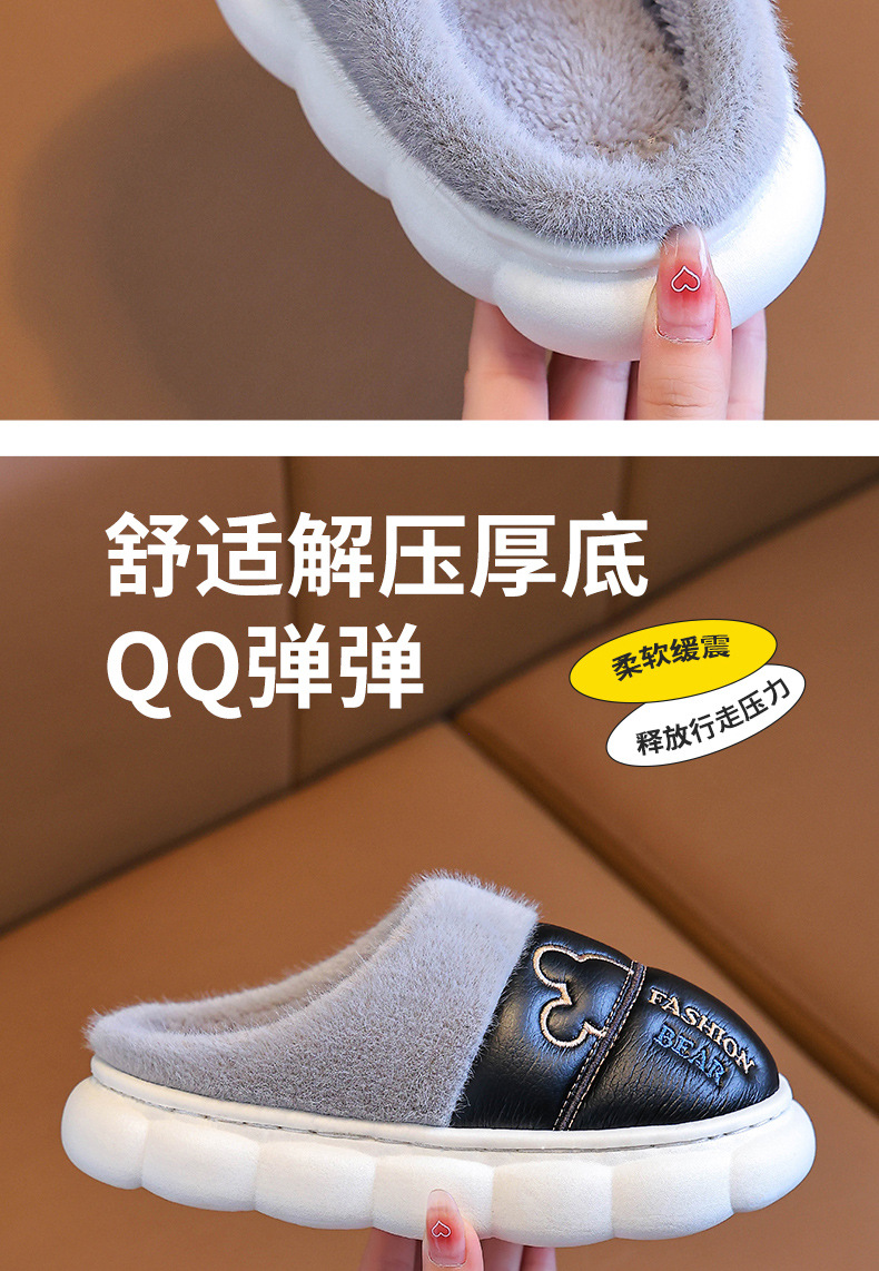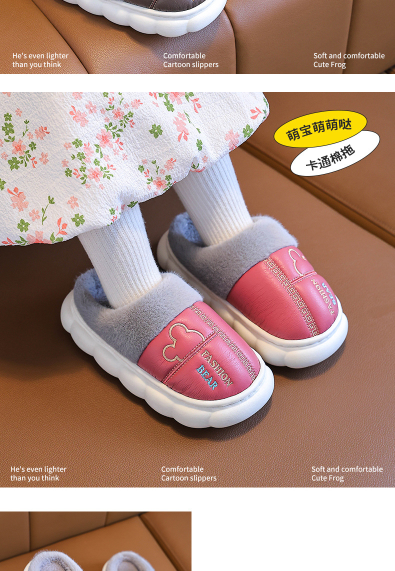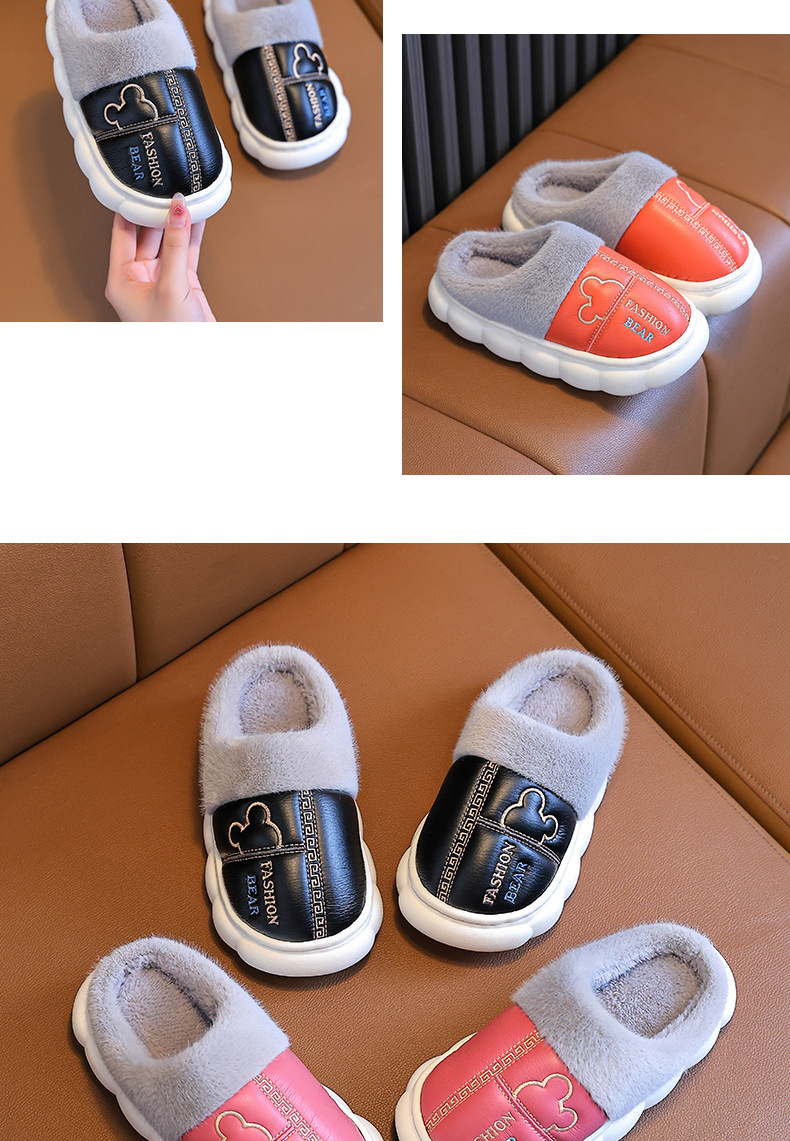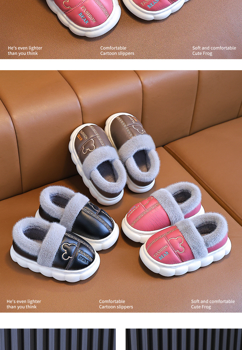 어린이 면화 슬리퍼 2024 새 소녀 소년 발 뒤꿈치 방수 미끄럼 방지 두꺼운 밑창 기모 가을과 겨울 가죽 면화 신발스토어 가기
