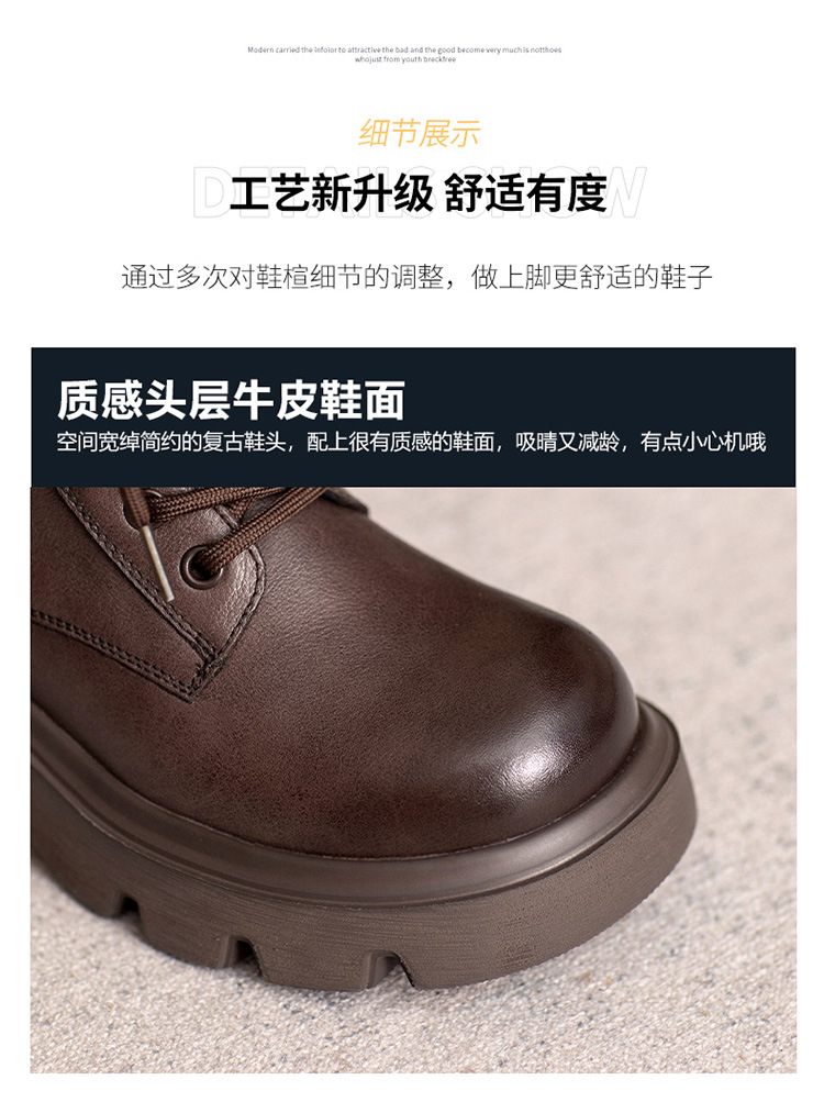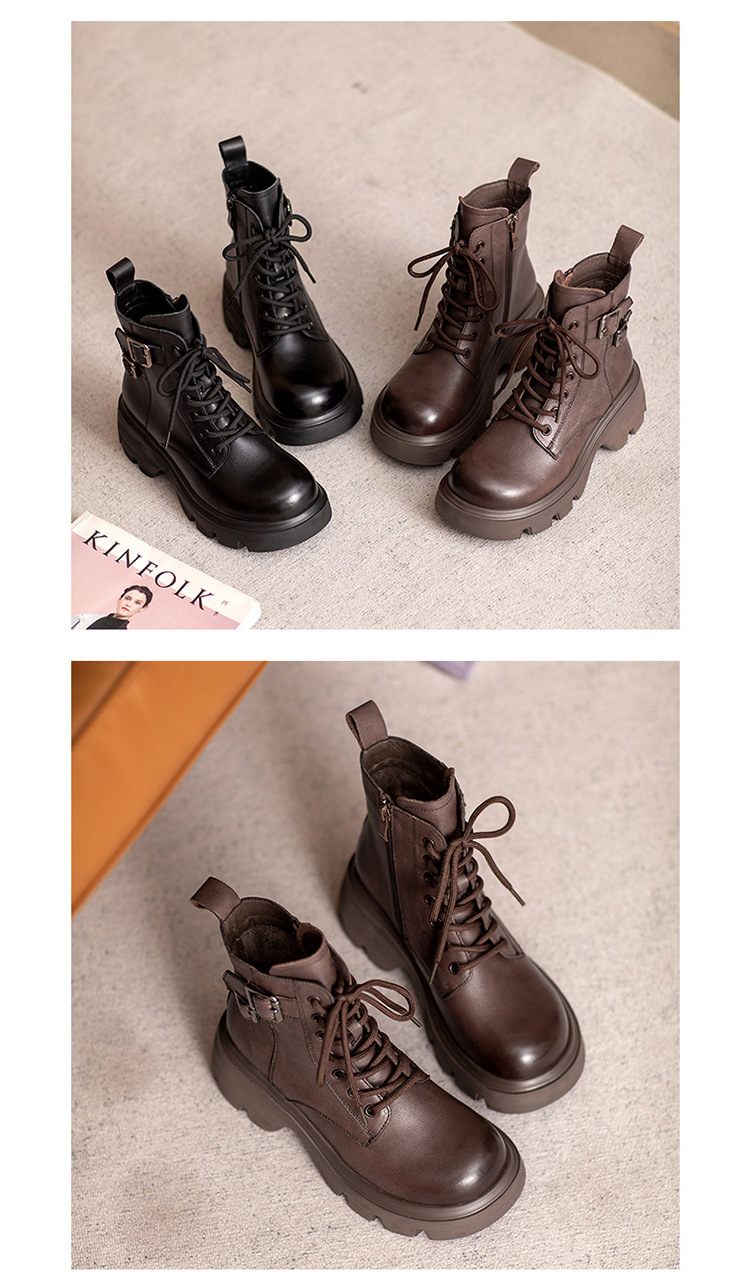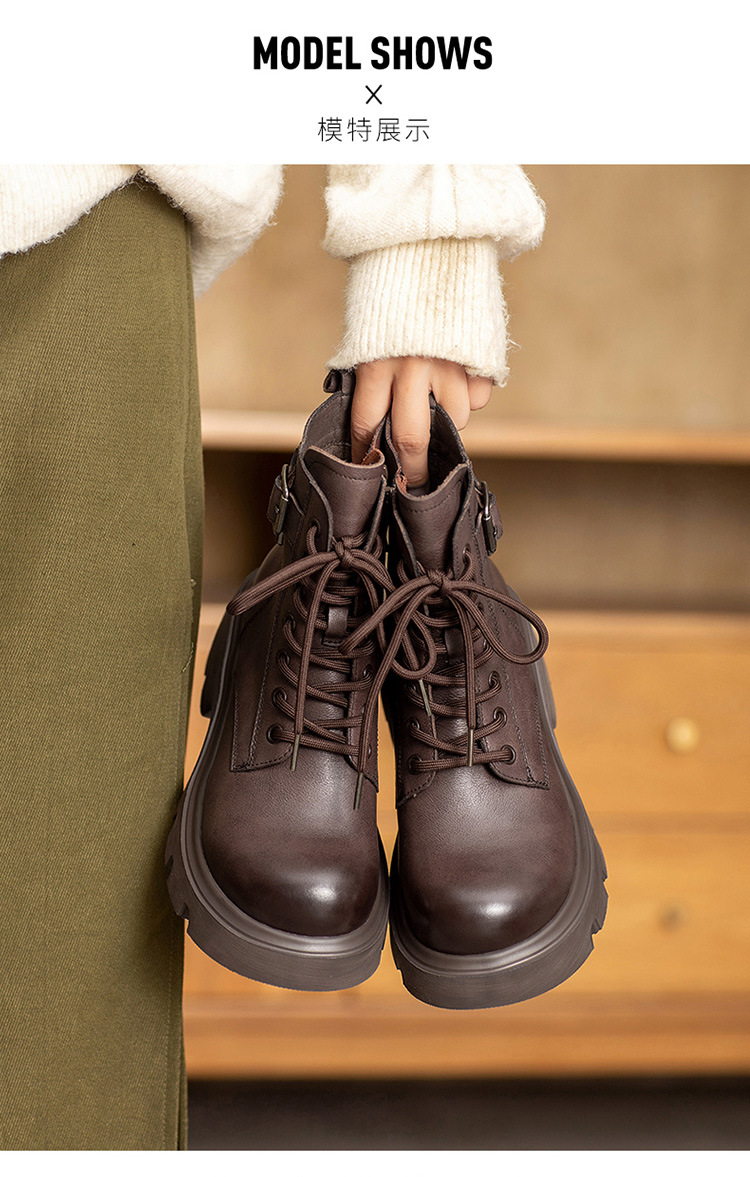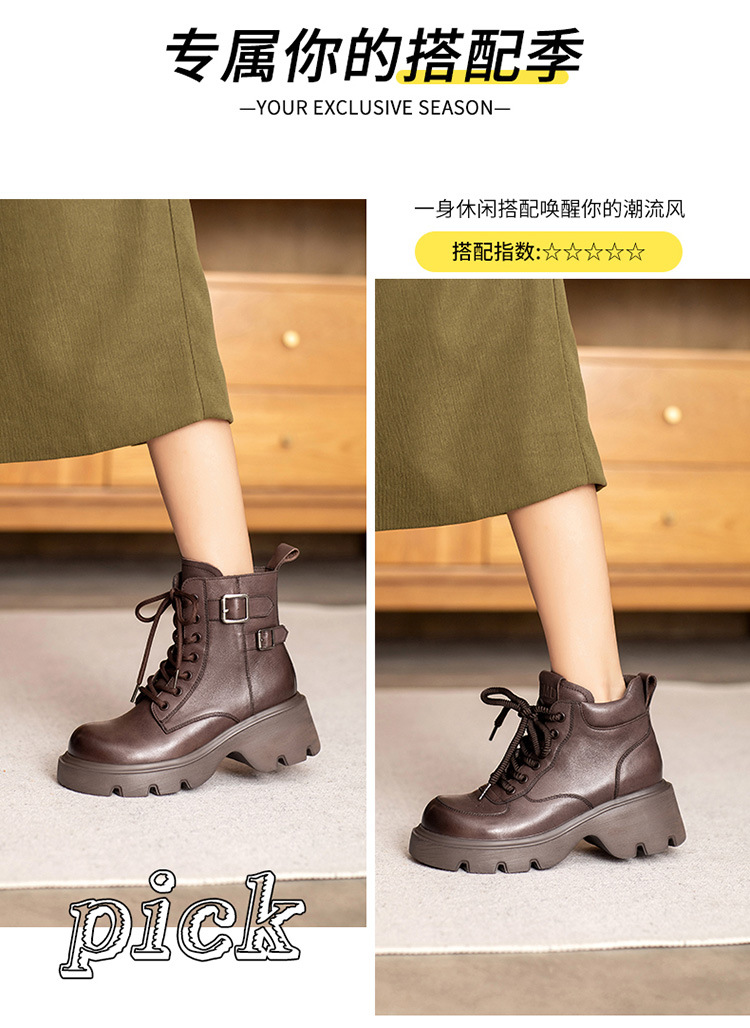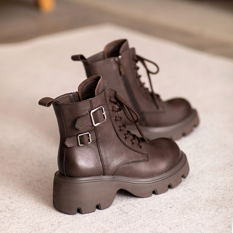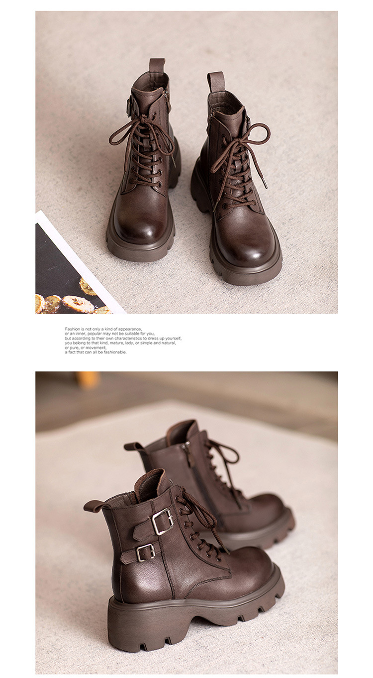 2024 새로운 영국 스타일 정품 가죽 짧은 부츠 다크 브라운 짧은 부츠 여성 플랫폼 레트로 Cowhide Martin 부츠