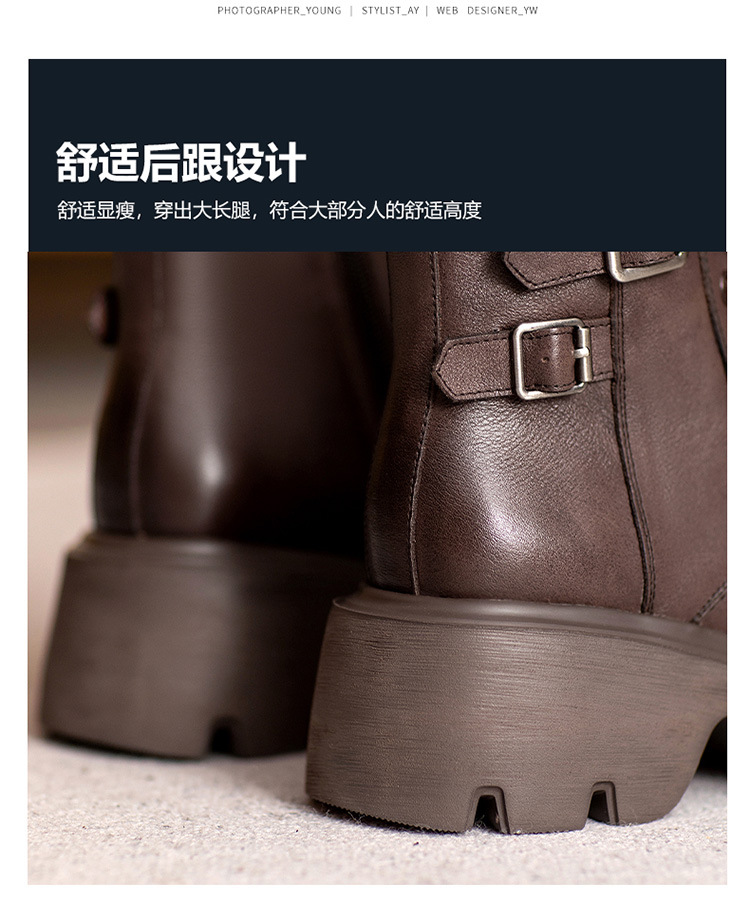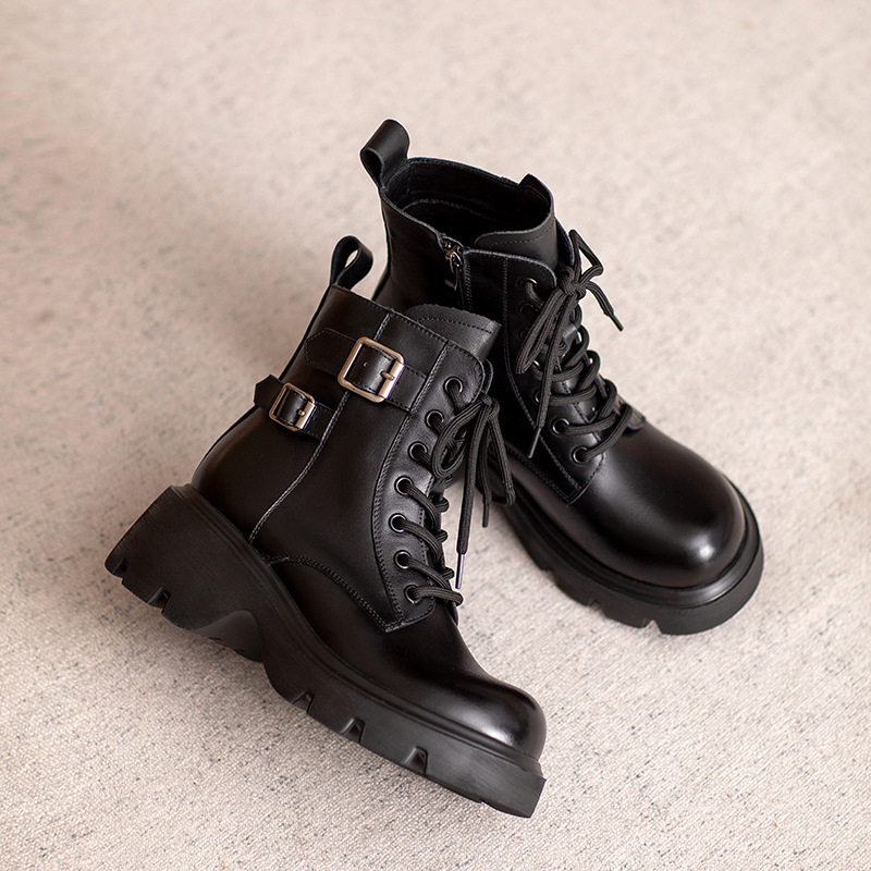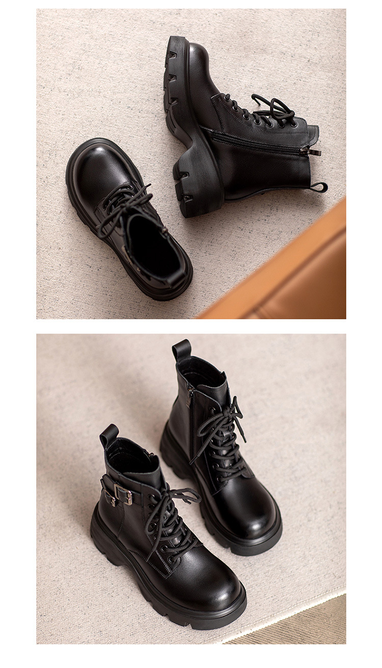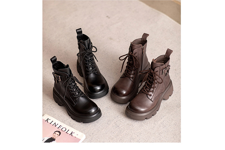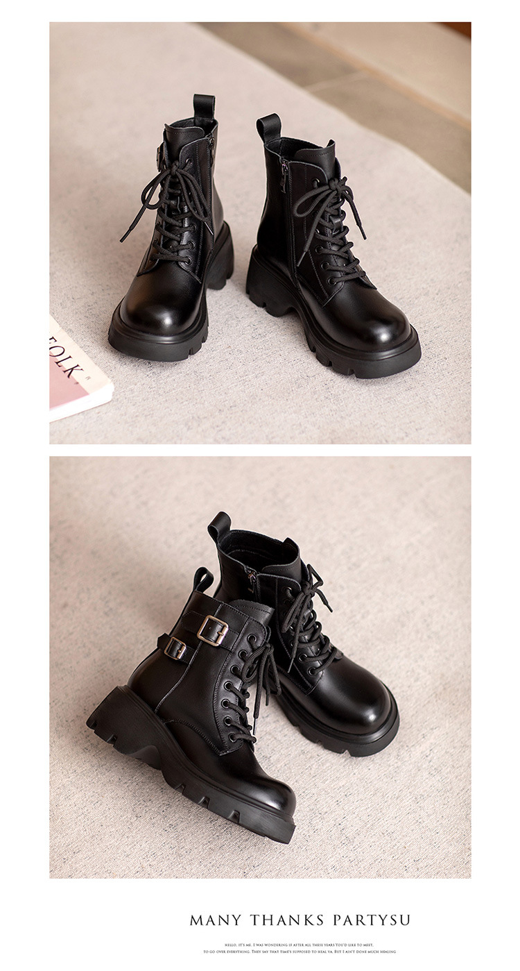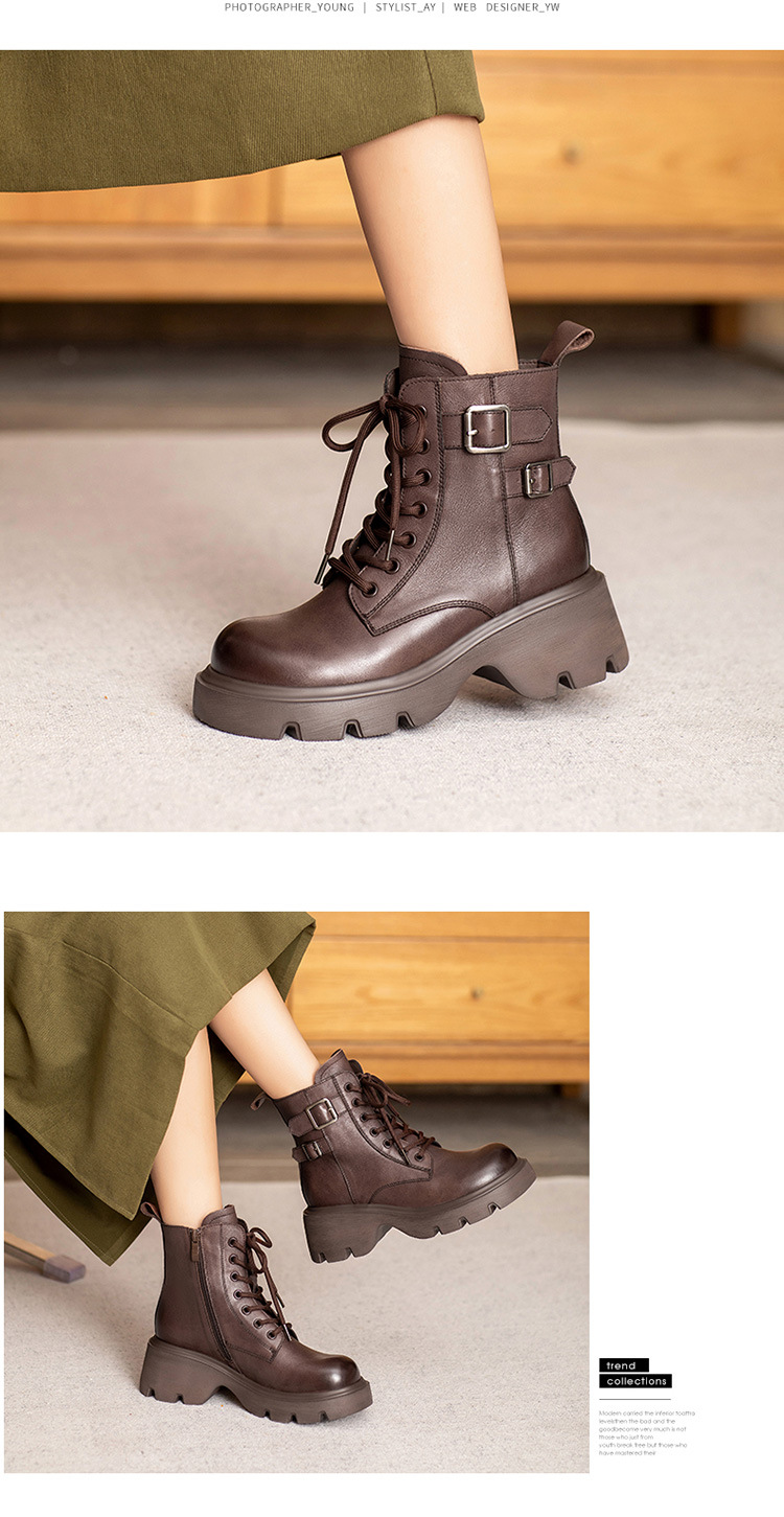 2024 새로운 영국 스타일 정품 가죽 짧은 부츠 다크 브라운 짧은 부츠 여성 플랫폼 레트로 Cowhide Martin 부츠