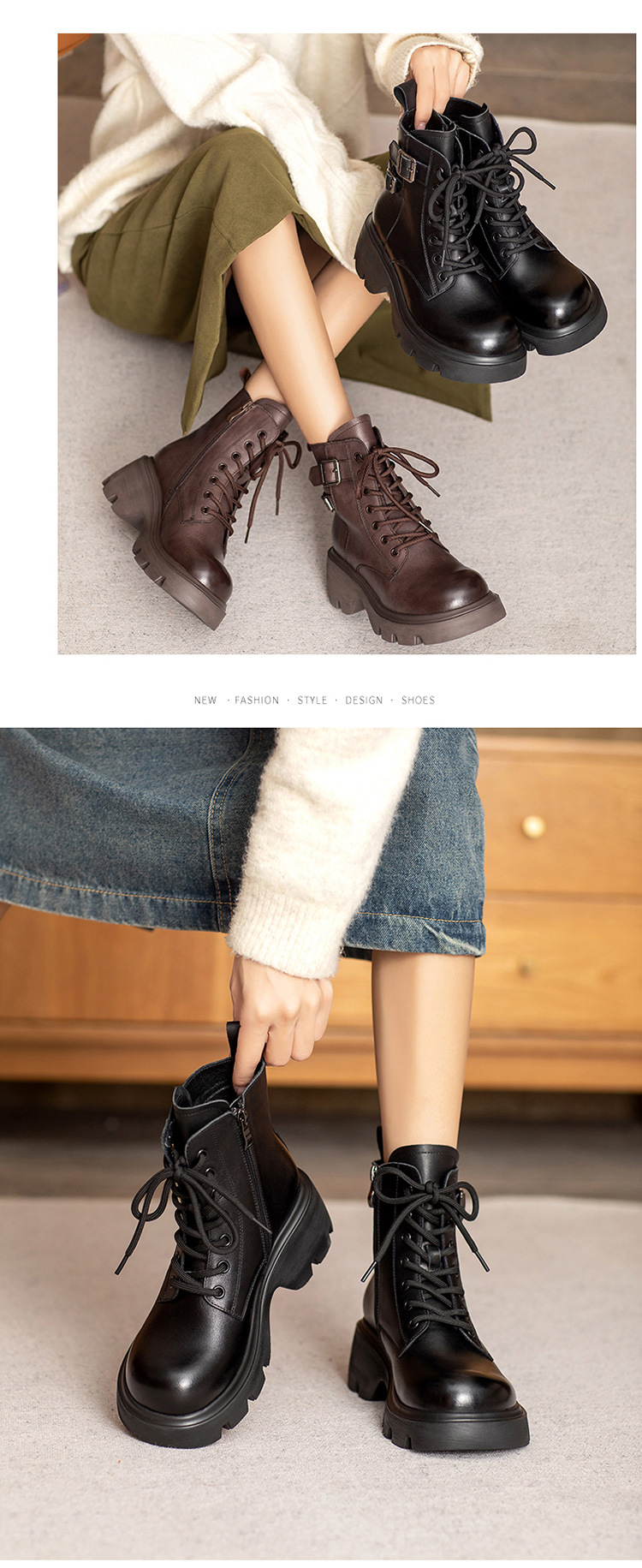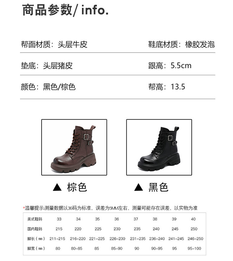 2024 새로운 영국 스타일 정품 가죽 짧은 부츠 다크 브라운 짧은 부츠 여성 플랫폼 레트로 Cowhide Martin 부츠스토어 가기