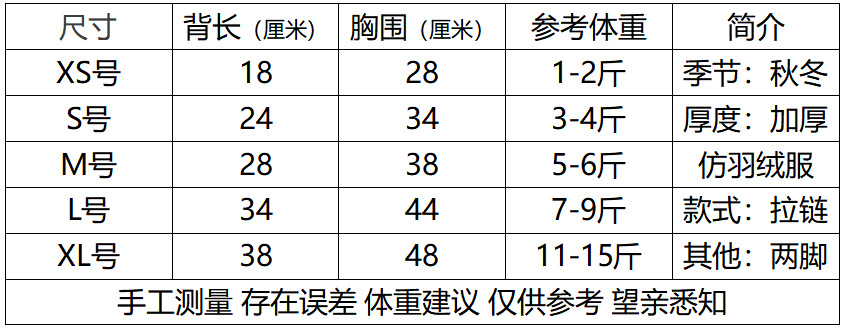 • XS 등길이 20cm (권장 0.5-1.0kg )
