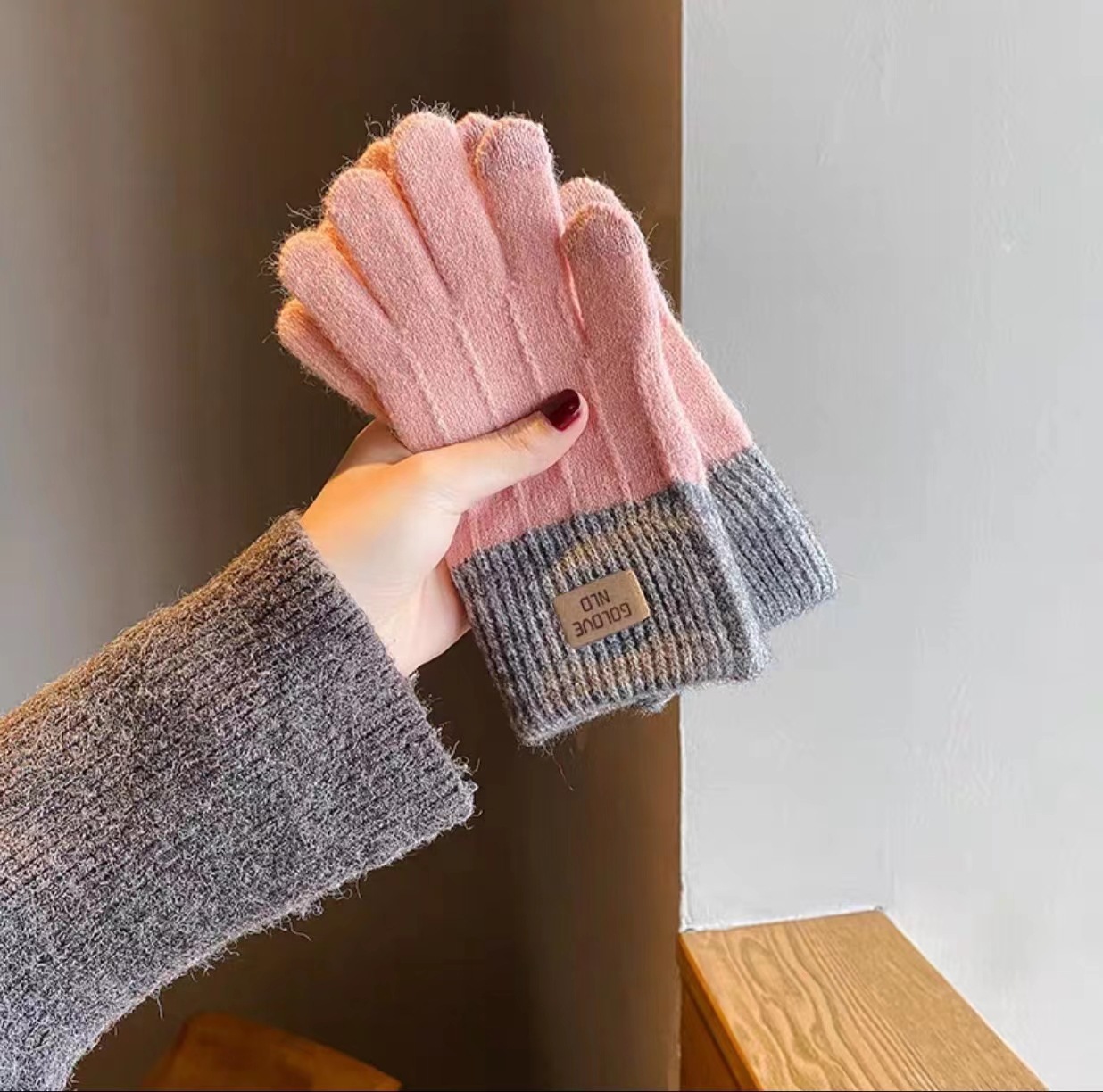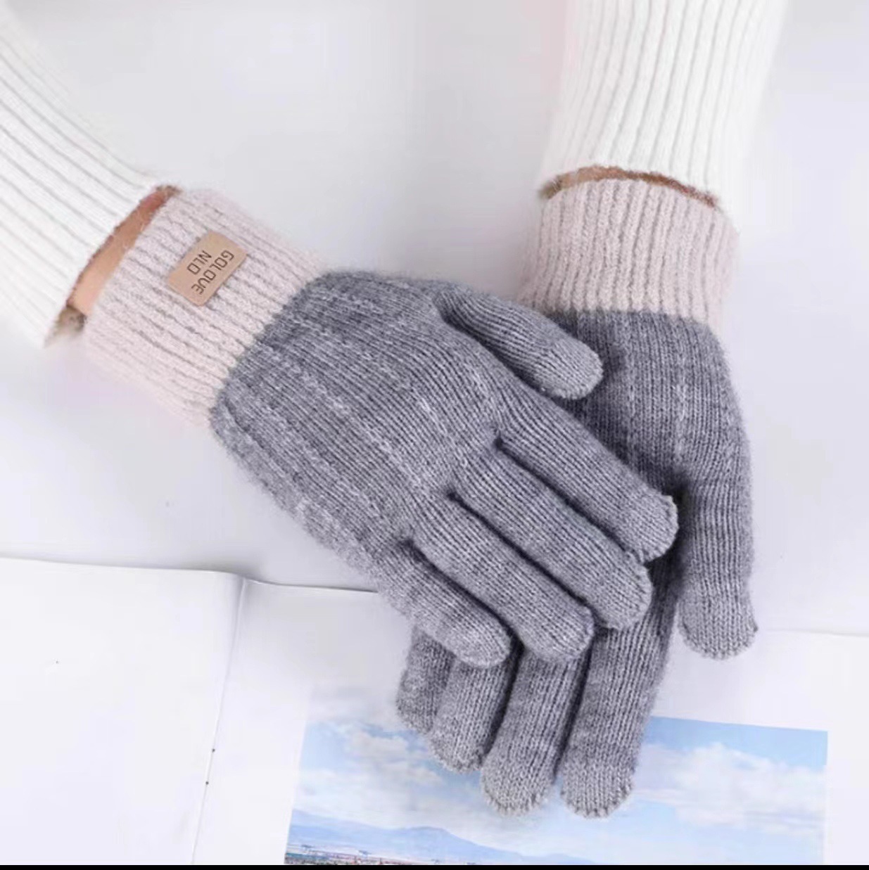 하프 핑거 플립 장갑 여성의 겨울 따뜻한 두꺼운 니트 하프 핑거 장갑 여학생 Leakage Finger in Writing스토어 가기
