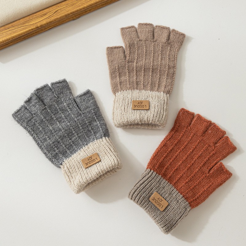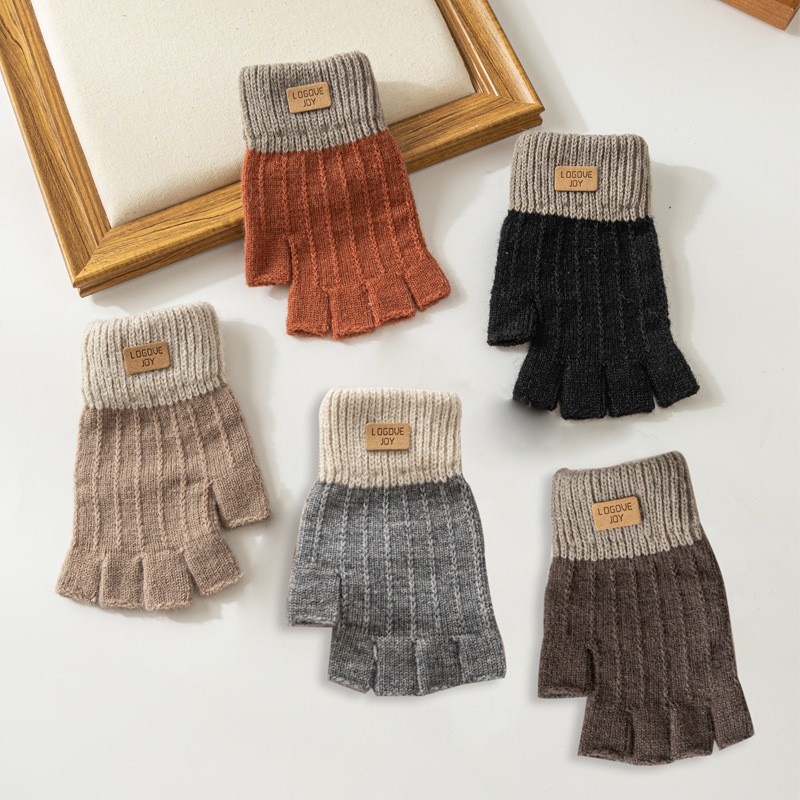 하프 핑거 플립 장갑 여성의 겨울 따뜻한 두꺼운 니트 하프 핑거 장갑 여학생 Leakage Finger in Writing