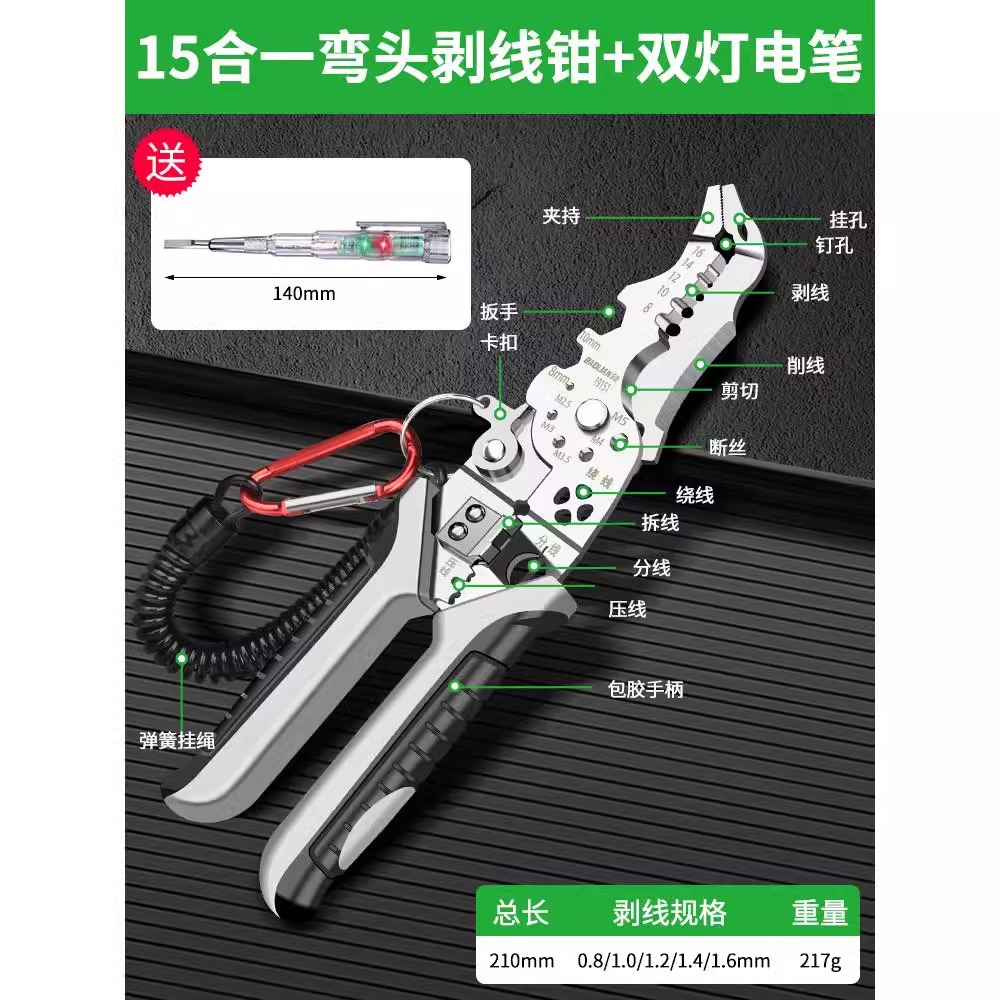• [15-in-1] 독수리 부리 와이어 스트리퍼 + 이중 조명 펜
