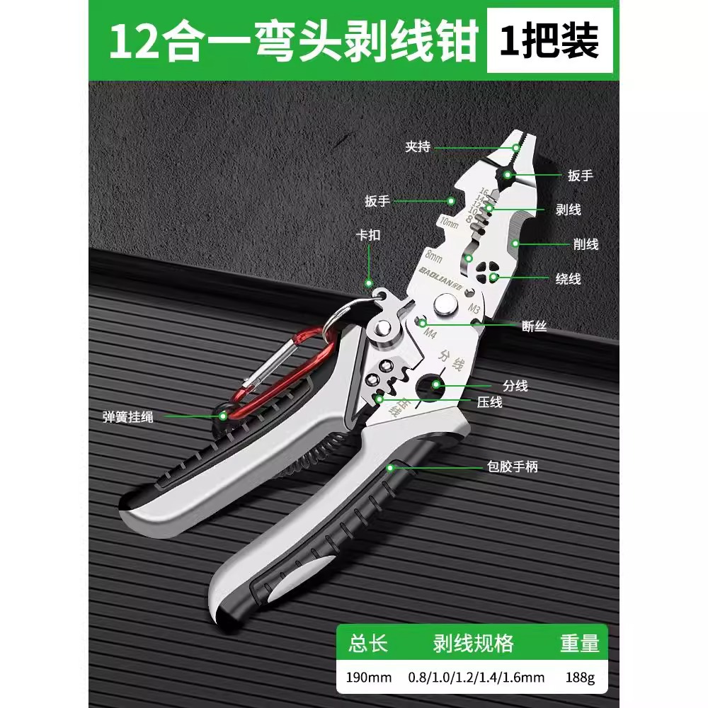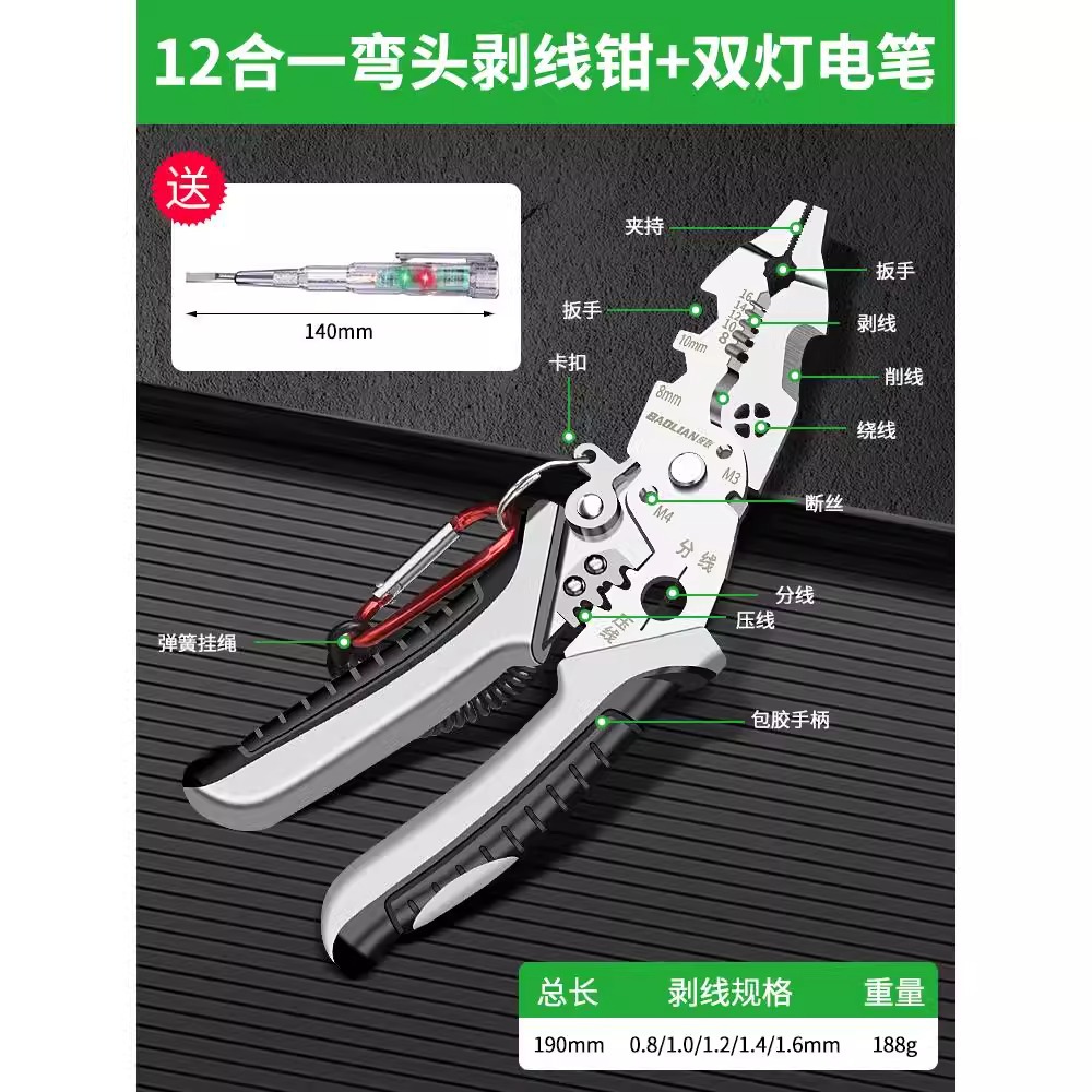 • 【12-in-1】엘보우 와이어 스트리퍼 + 이중 조명 펜