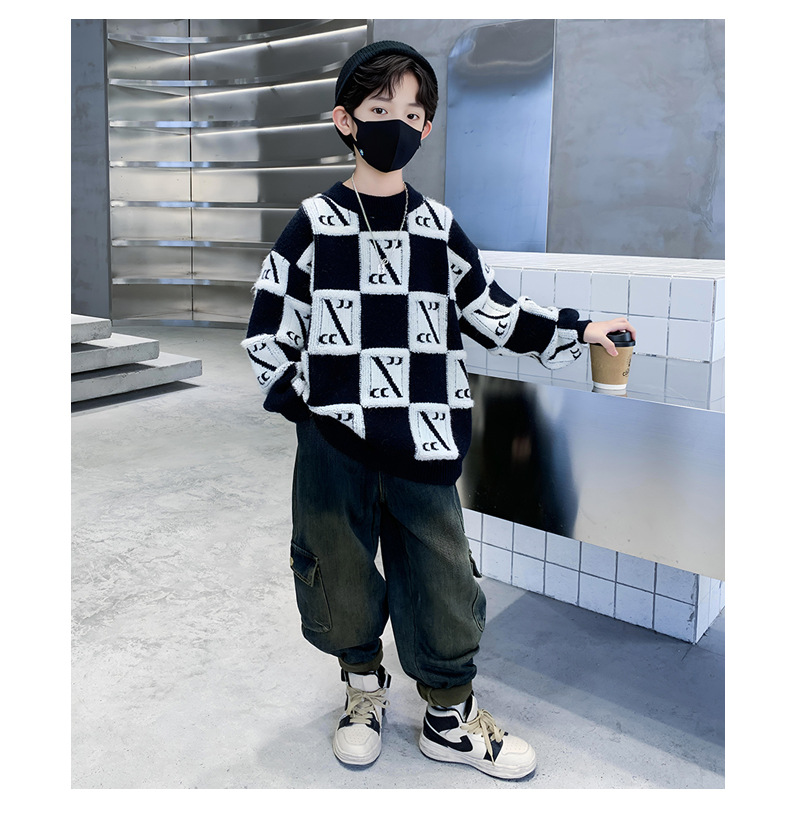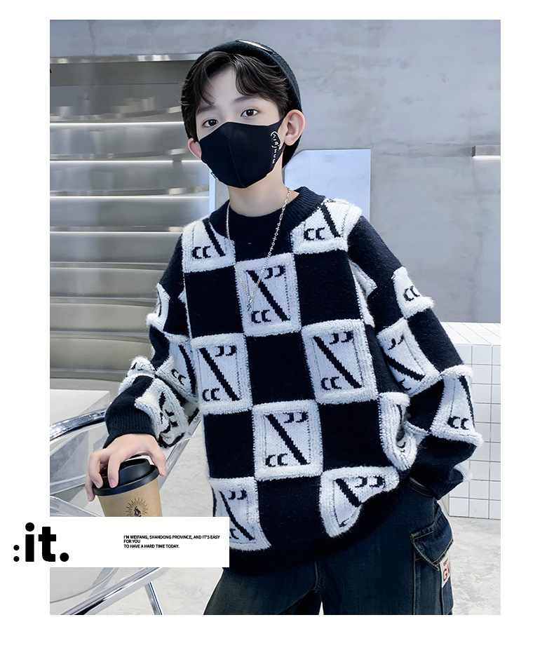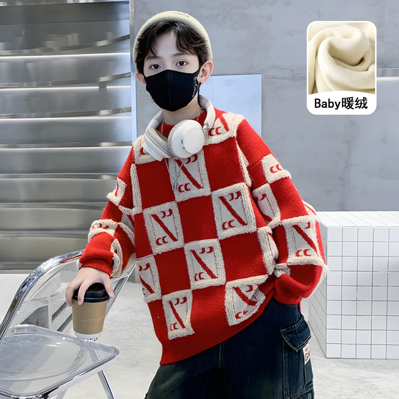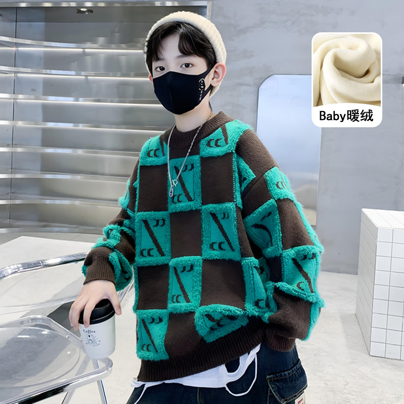 아동복 소년 겨울 두꺼운 스웨터 2024 새로운 큰 어린이 겨울 소년 벨벳 가을 겨울 기본 셔츠 유행스토어 가기