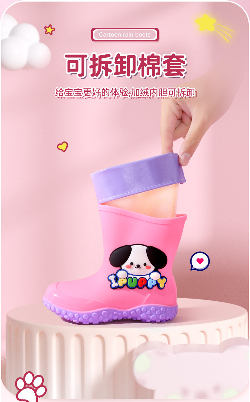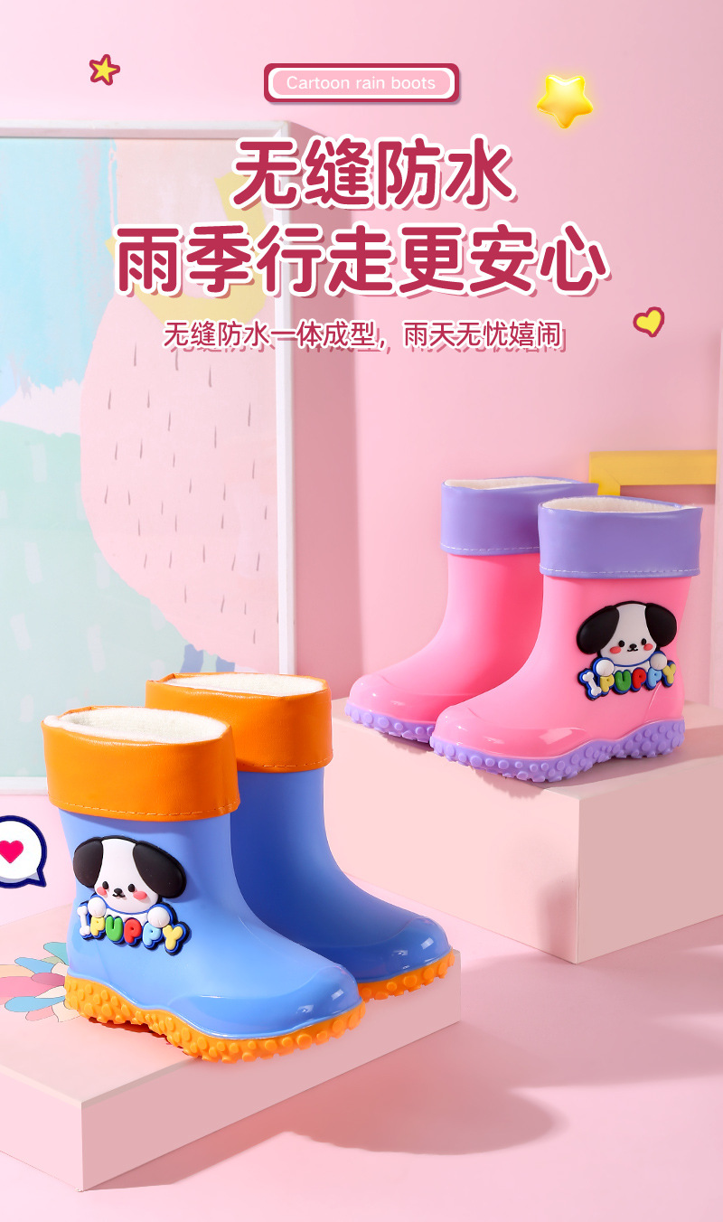 만화 어린이 장화 아기 미끄럼 방지 아기 소년 중간 배럴 장화 부드러운 밑창 소녀의 물 신발스토어 가기