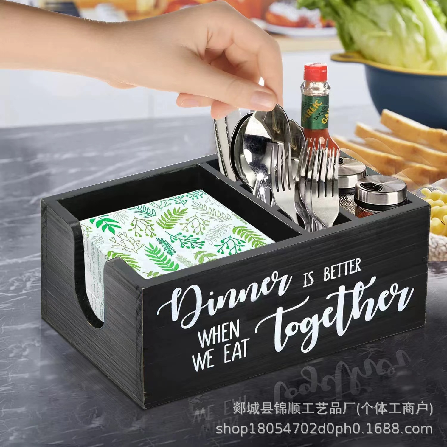 레스토랑 호텔 나무 탁상용 종이 타월 보관 상자 분리형 주방 식기 칼과 포크 상자 조미료 병 정리 상자