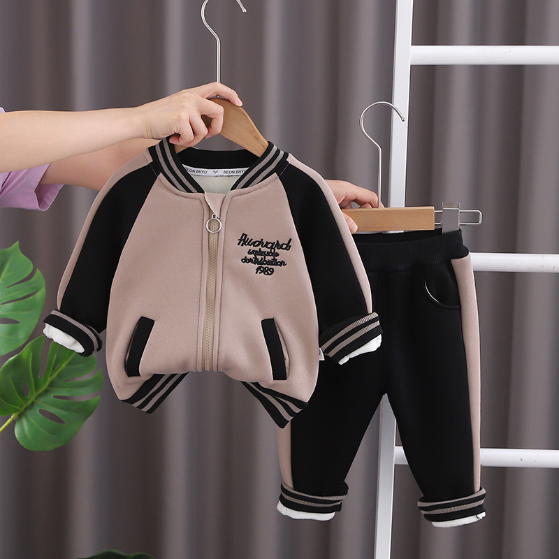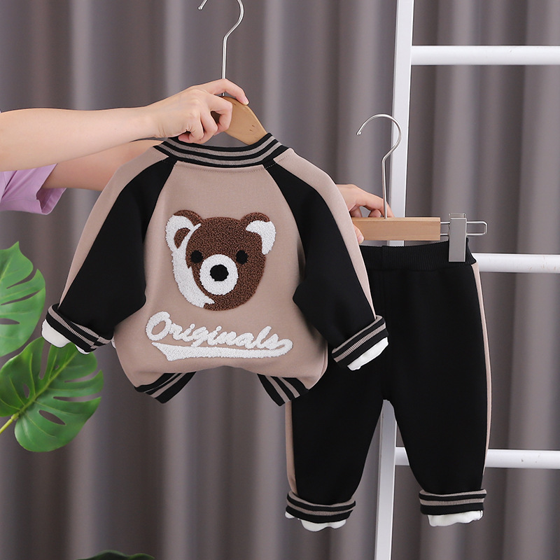 소년 세트 겨울 아기의 만화 기모 스웨트 셔츠 가을과 겨울 어린이 캐주얼 어린이 두꺼운 투피스 세트스토어 가기