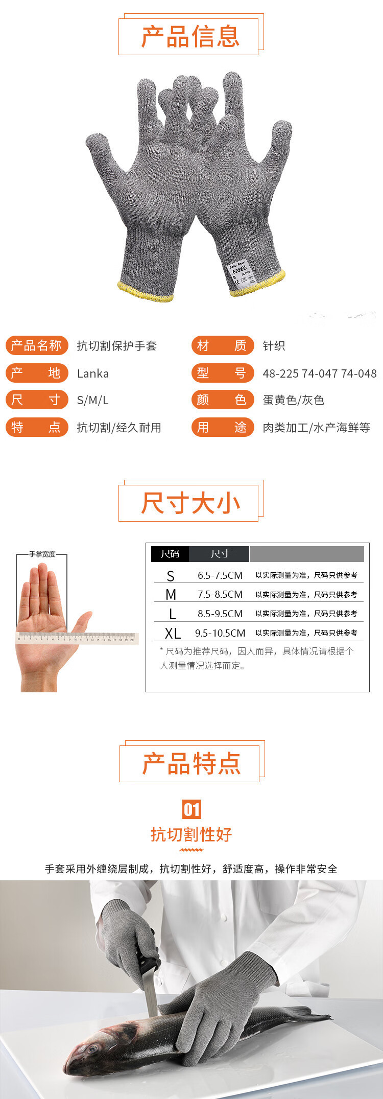 Ansere 74-047 절단 방지, 미끄럼 방지, 내마모성, 내유성, 경량 및 외부 절단 고기 가공 및 보호 장갑 취급