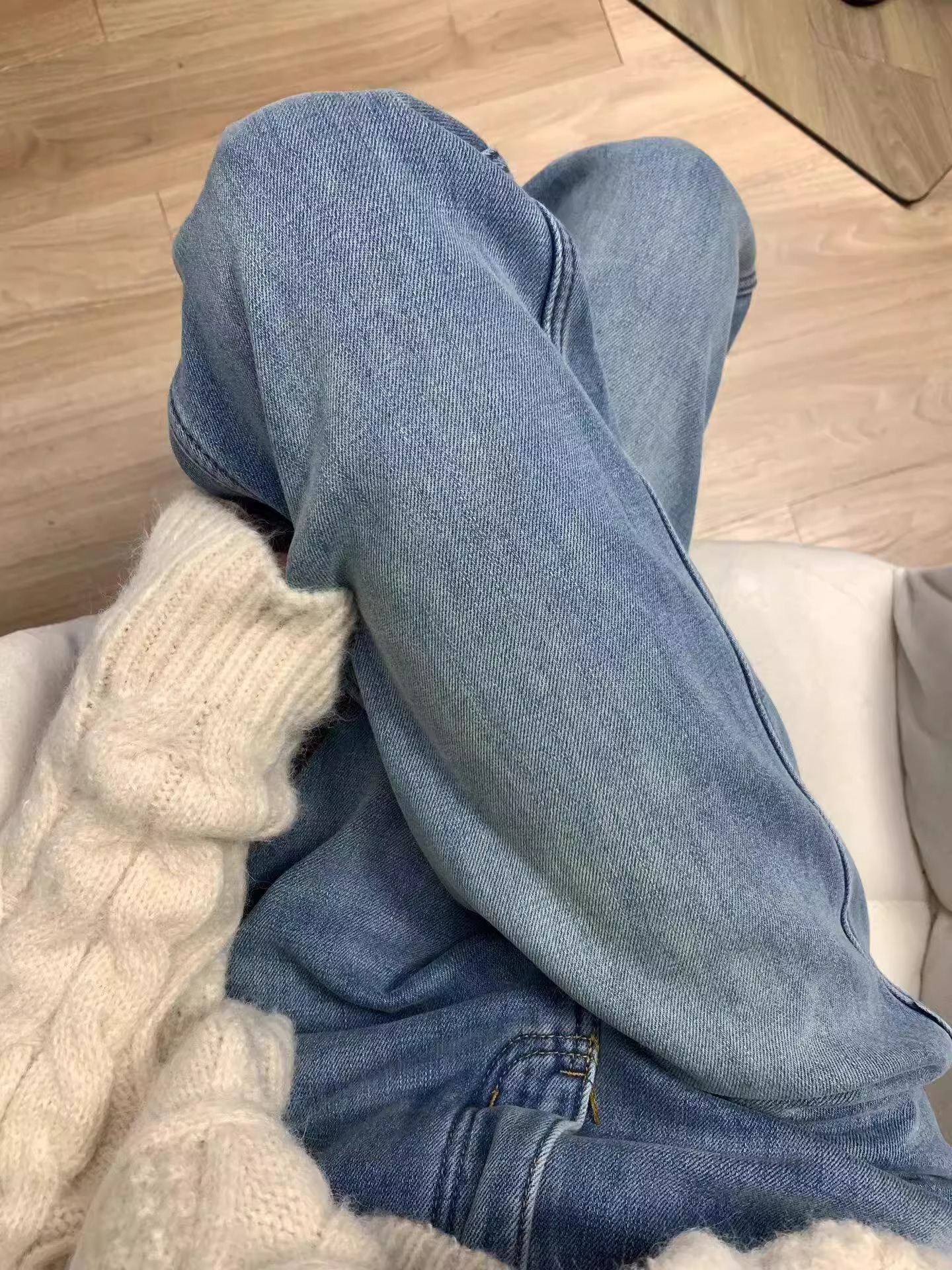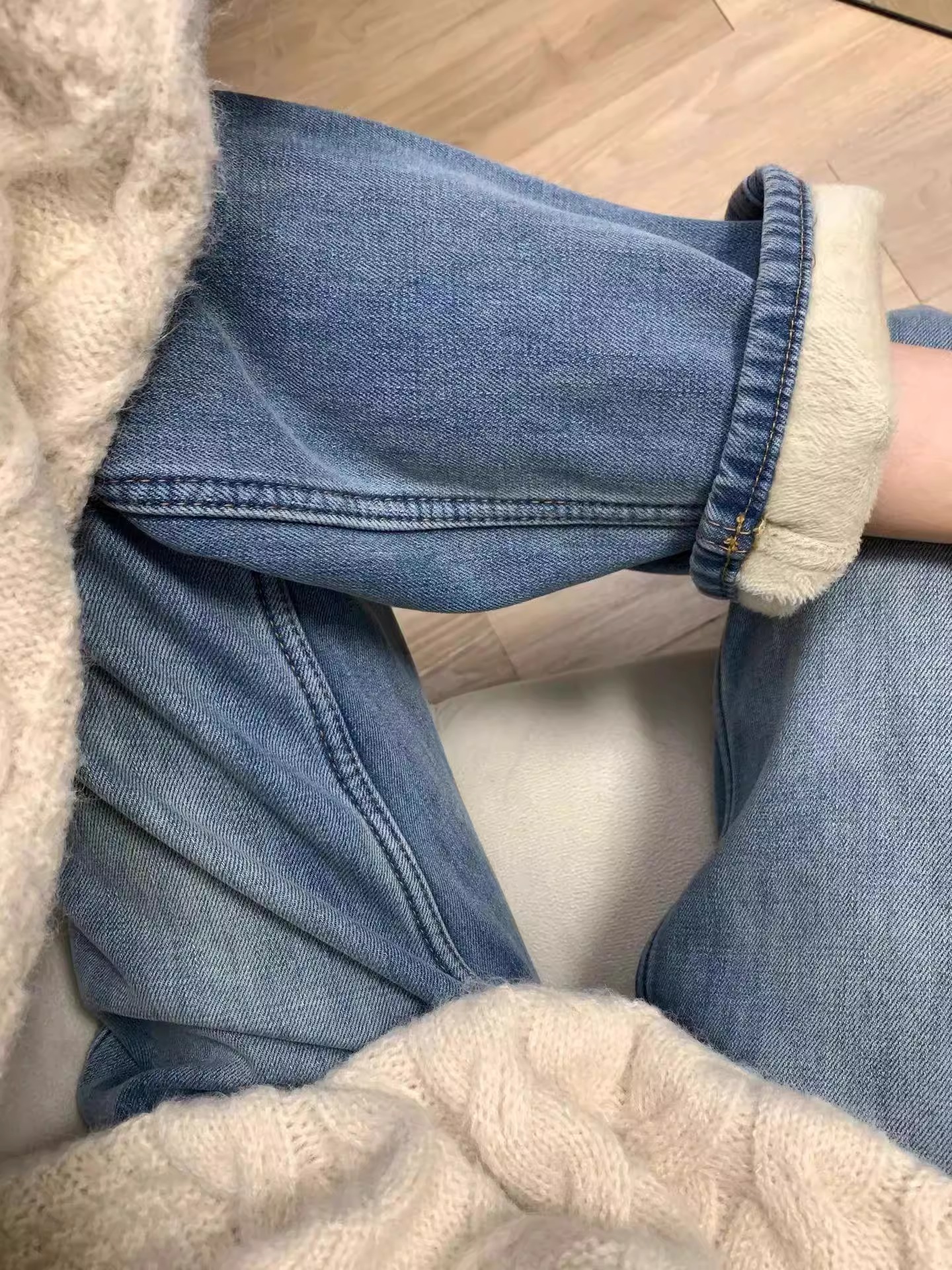 기모 두꺼운 스트레이트 청바지 여성의 겨울 인기 폭발 플러스 사이즈 슬리밍 높은 허리 따뜻한 넓은 다리 바지스토어 가기