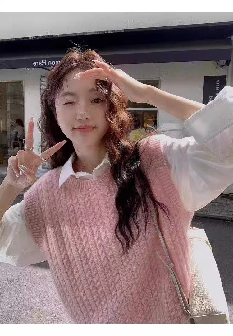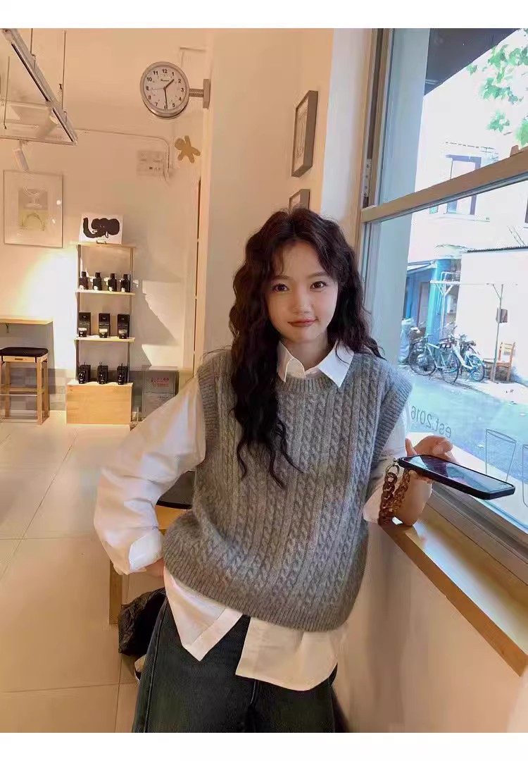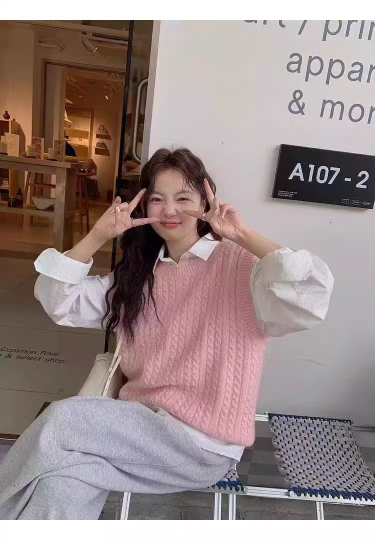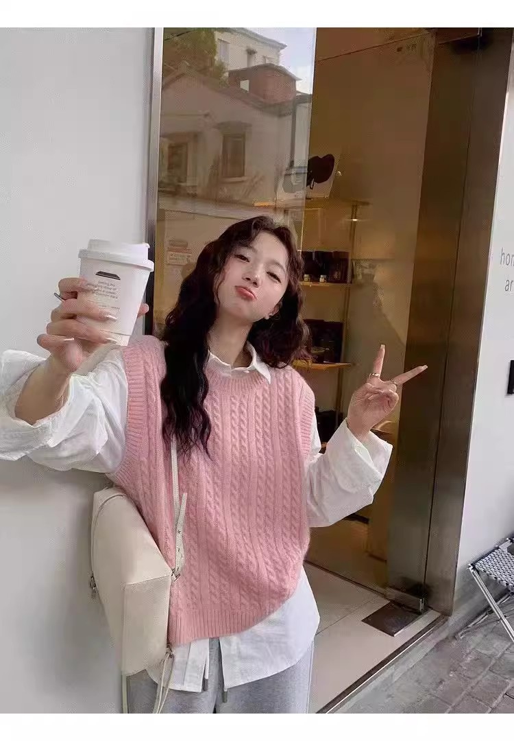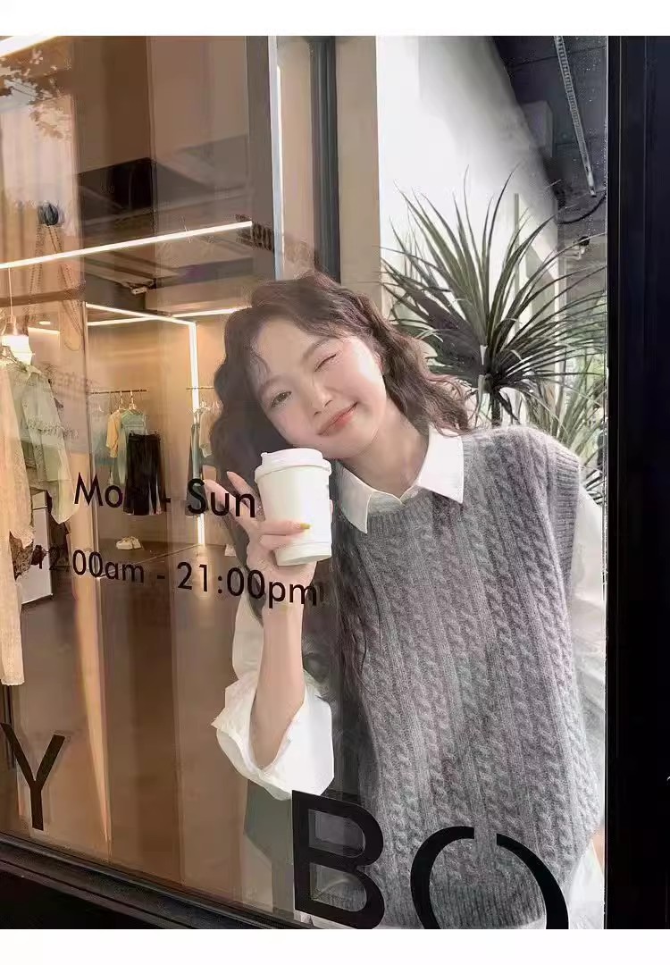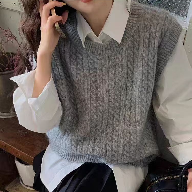 한국식 100 울 니트 조끼 여성 느슨한 민소매 트위스트 조끼 가을 · 겨울 쇼트 스웨터 장착스토어 가기
