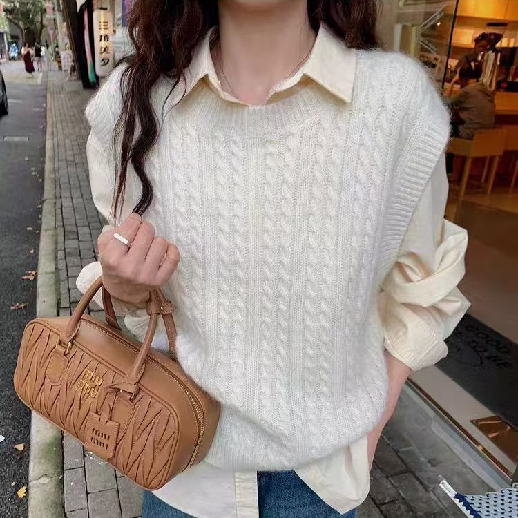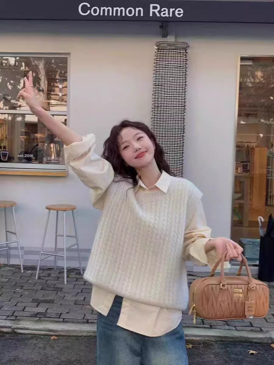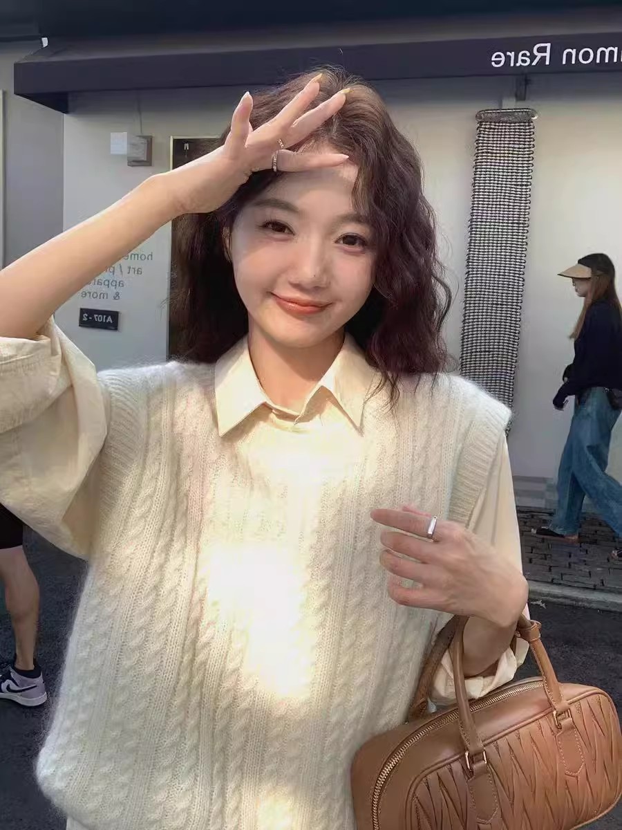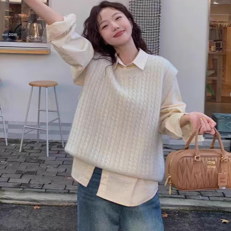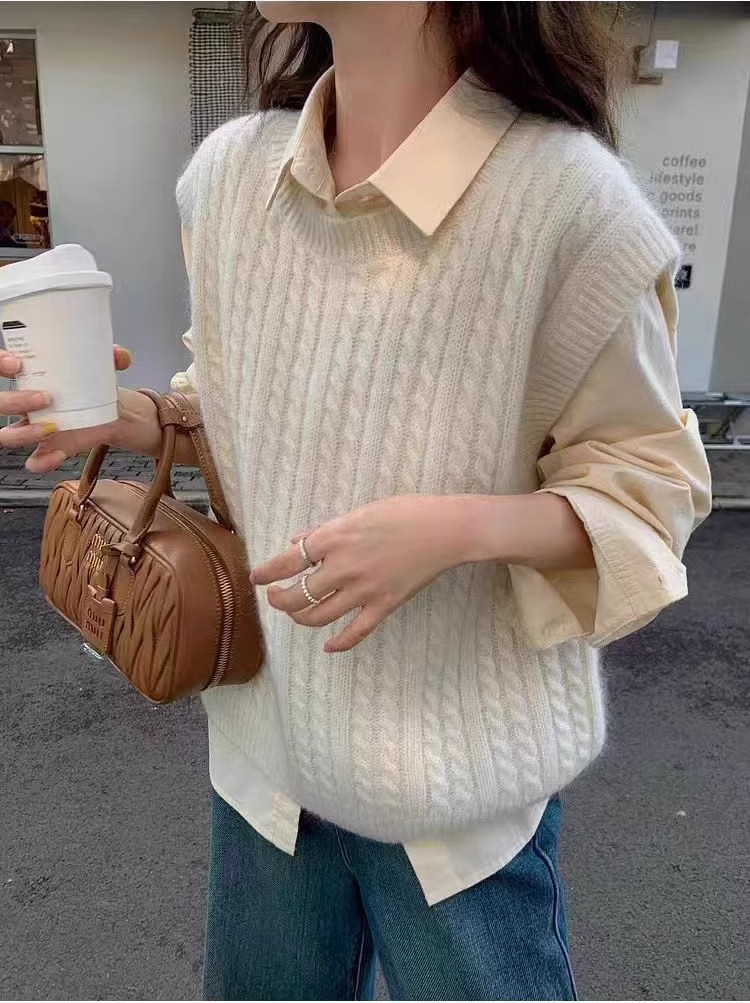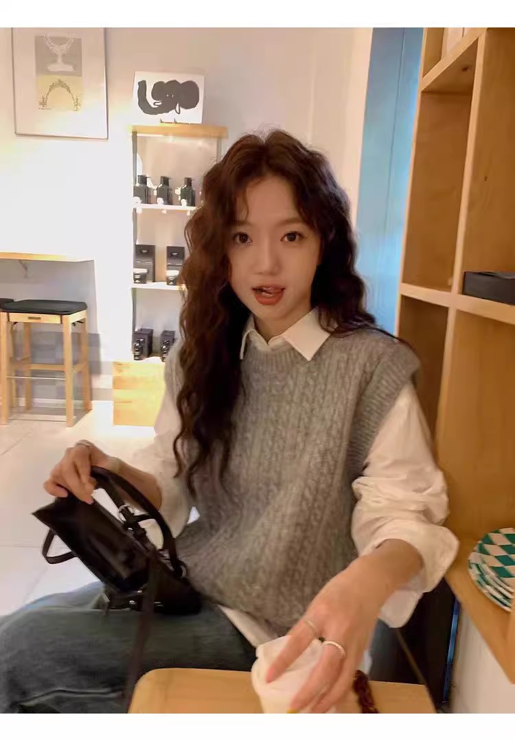 한국식 100 울 니트 조끼 여성 느슨한 민소매 트위스트 조끼 가을 · 겨울 쇼트 스웨터 장착스토어 가기
