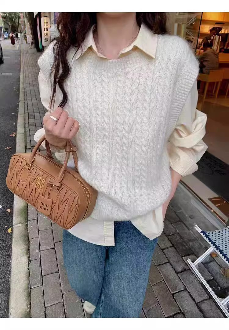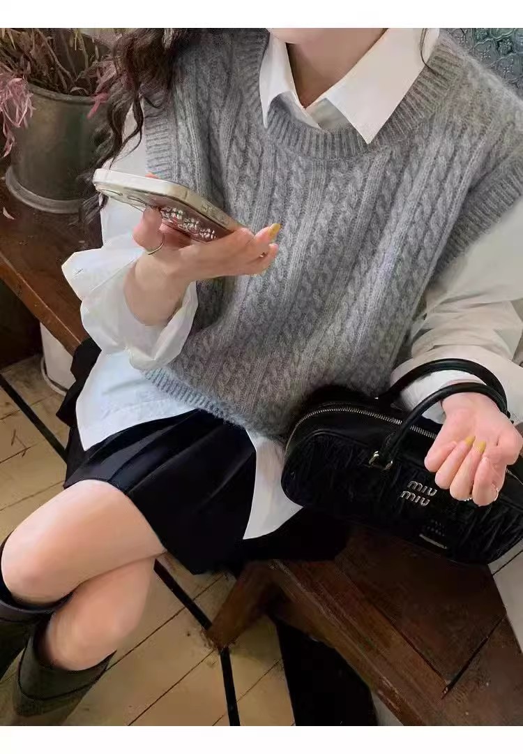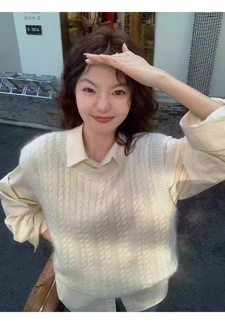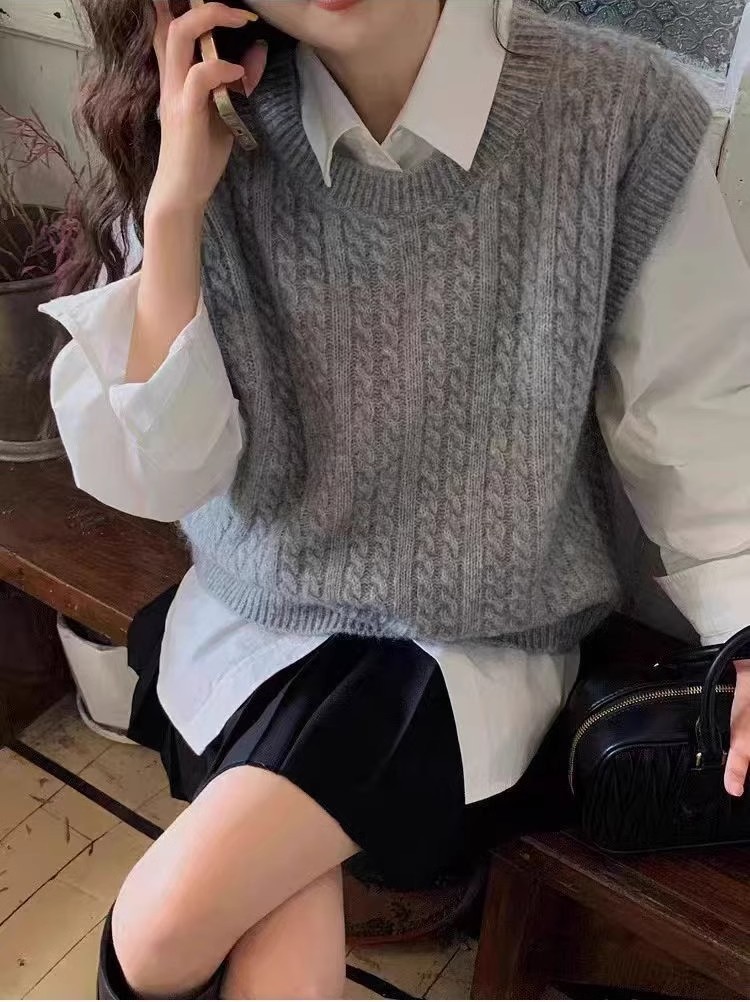 한국식 100 울 니트 조끼 여성 느슨한 민소매 트위스트 조끼 가을 · 겨울 쇼트 스웨터 장착