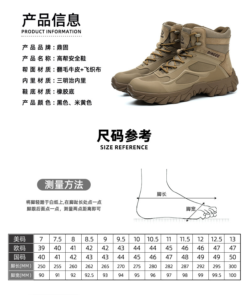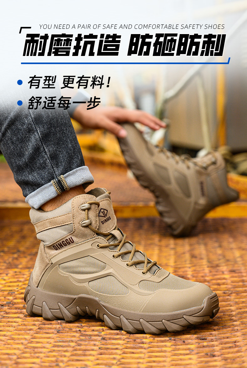 딩구 국경 안전 신발 스매싱 방지 및 피어싱 방지 작업 신발 건설 작업 하이 탑 슬립 방지 마모 방지 보호 신발