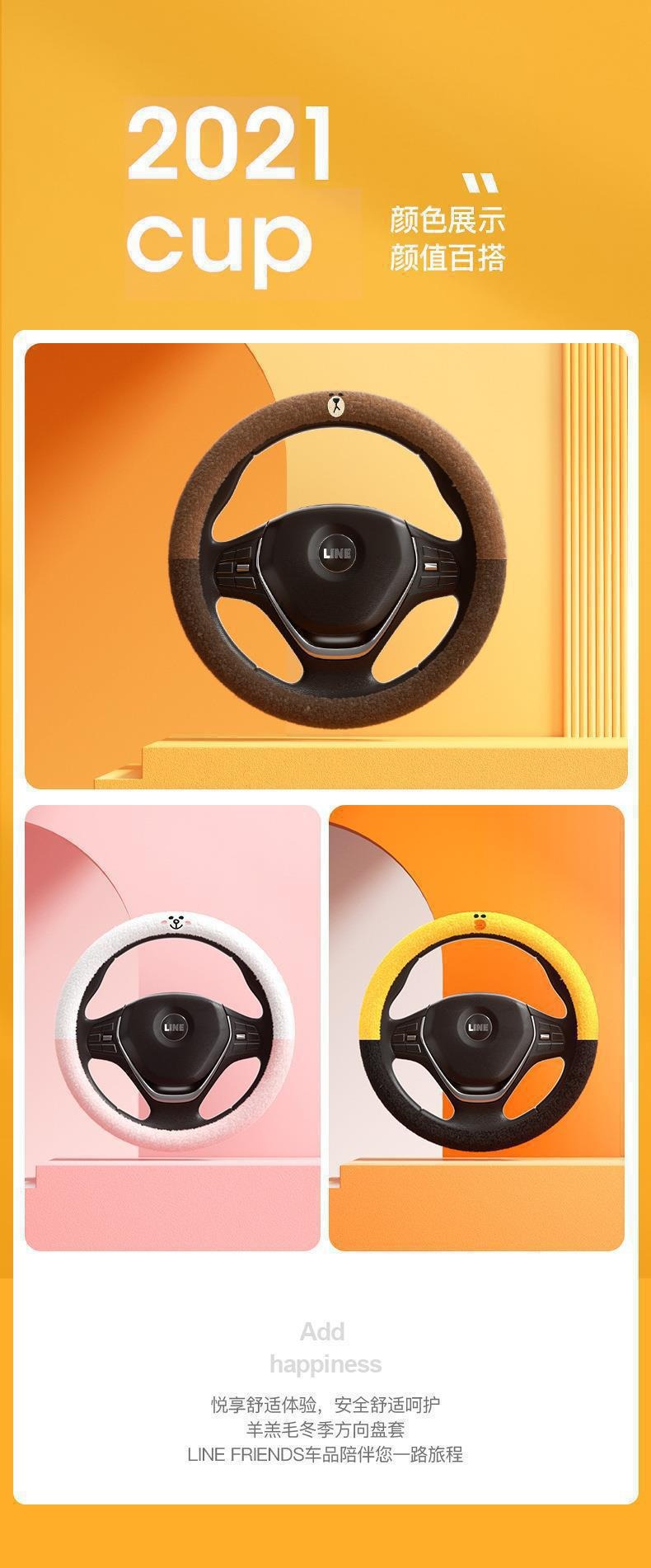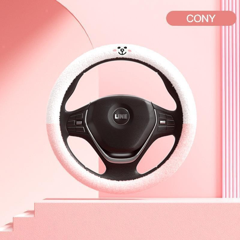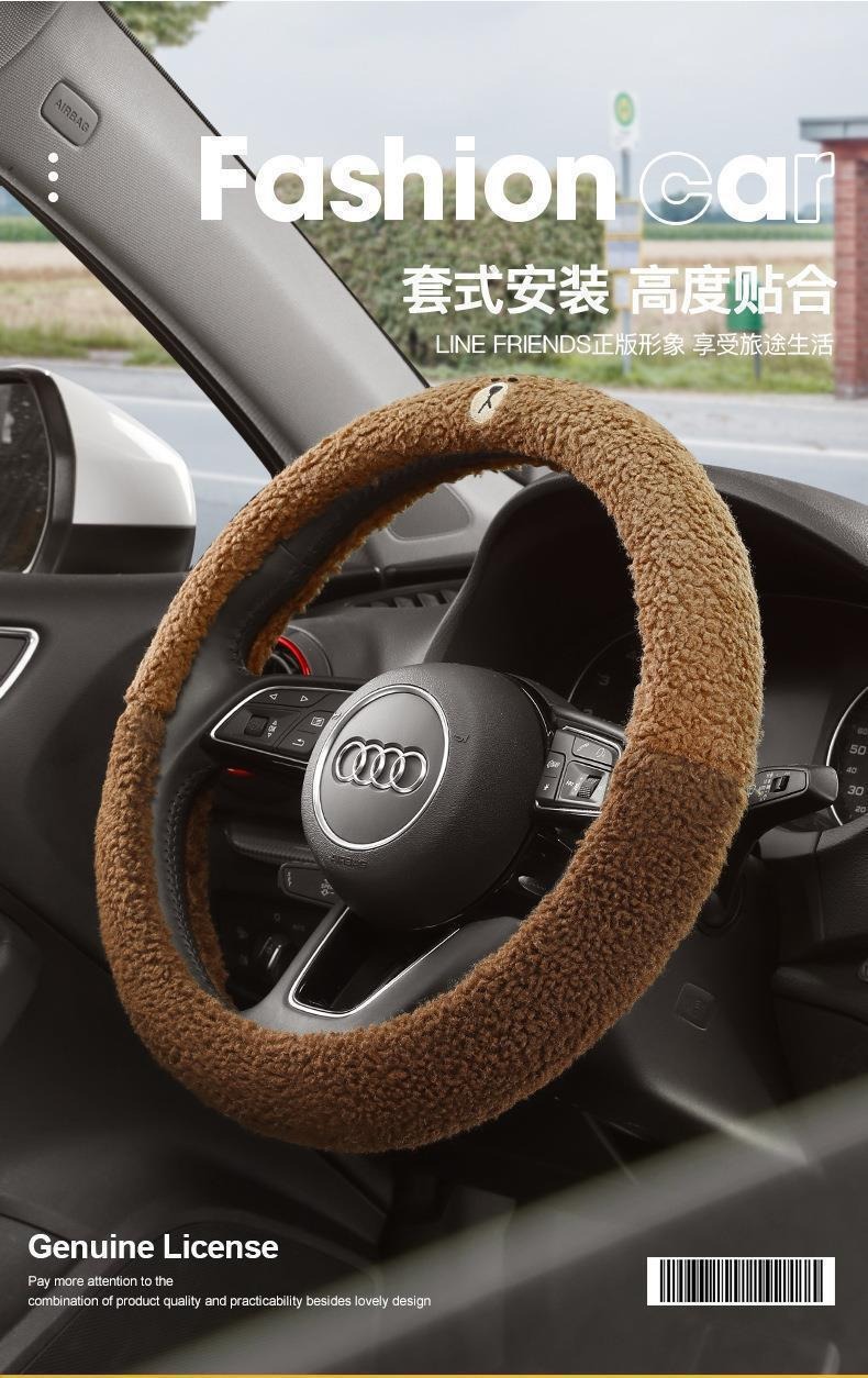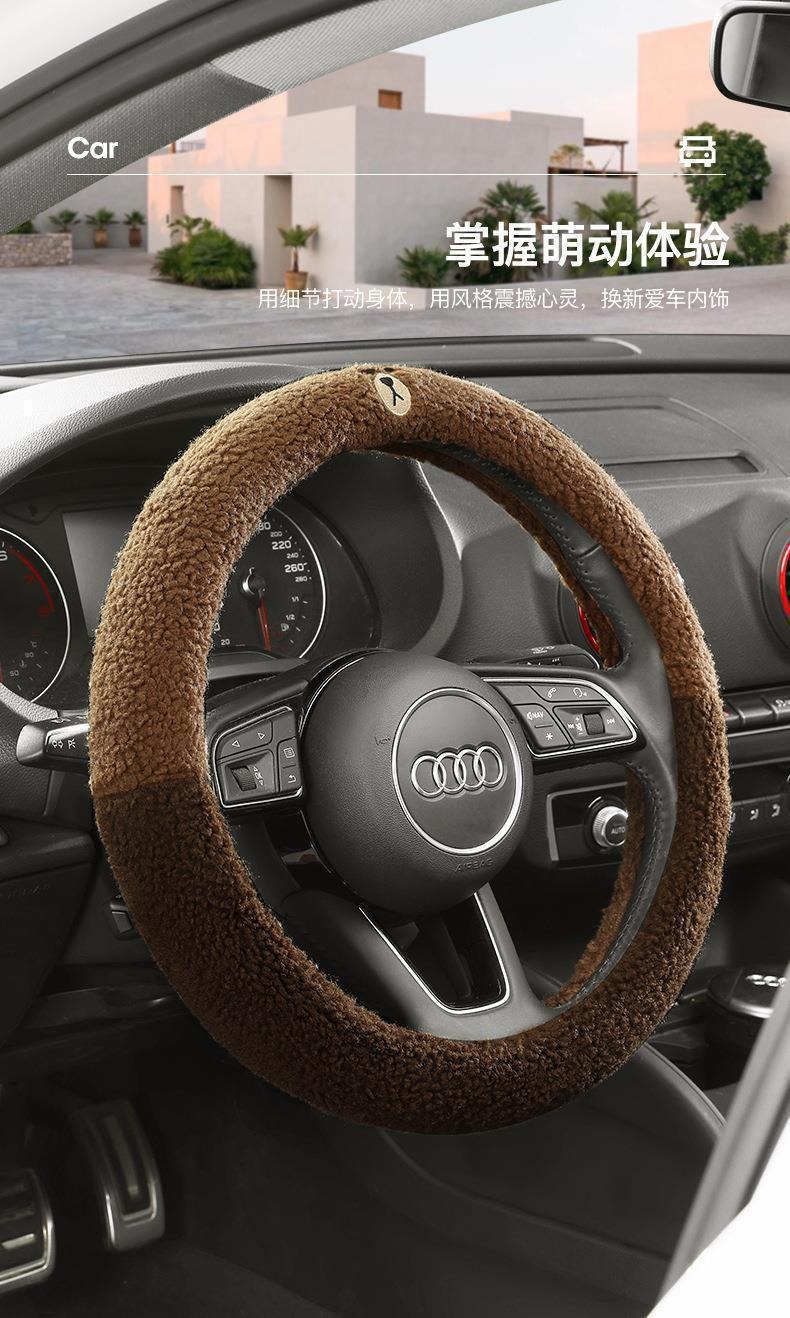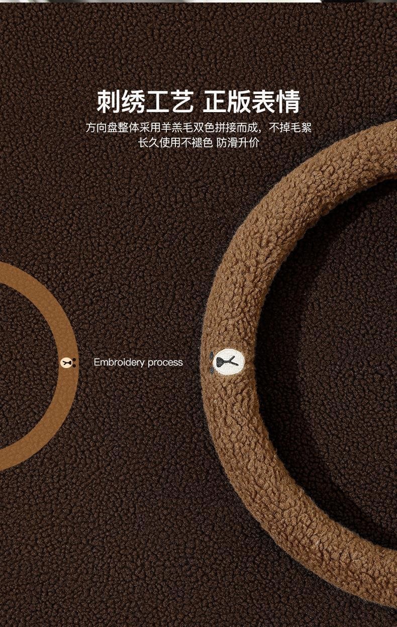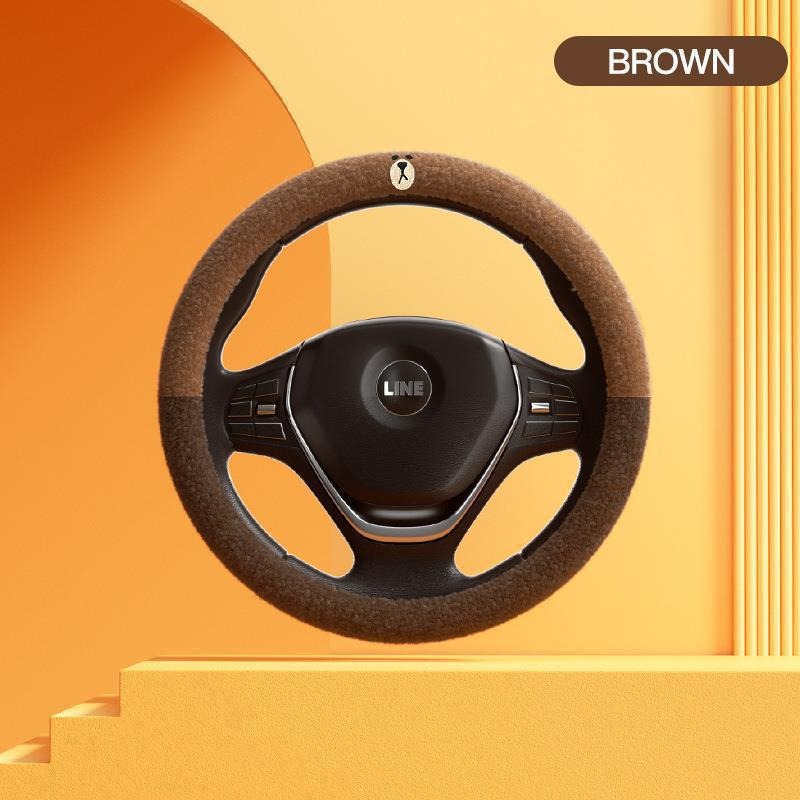 공장 다크 브라운 곰 자동차 겨울 스티어링 휠 커버 겨울 여성 봉제 짧은 벨벳 귀여운 장식 범용 자동차 핸들 커버