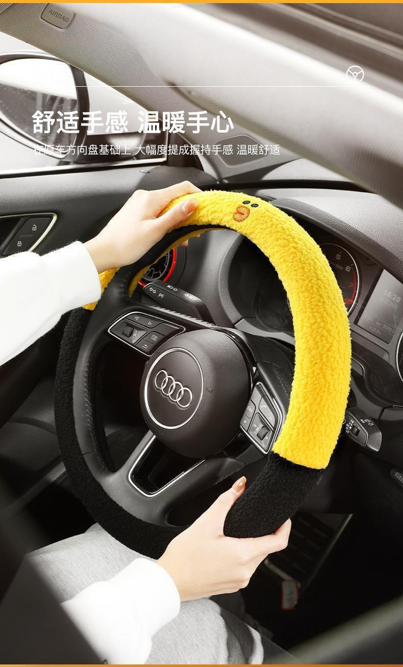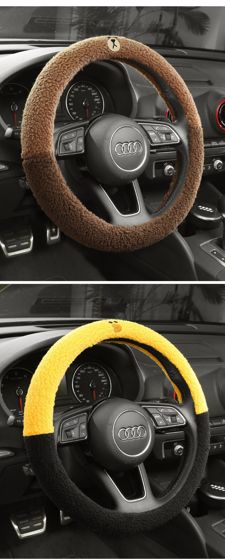 공장 다크 브라운 곰 자동차 겨울 스티어링 휠 커버 겨울 여성 봉제 짧은 벨벳 귀여운 장식 범용 자동차 핸들 커버스토어 가기