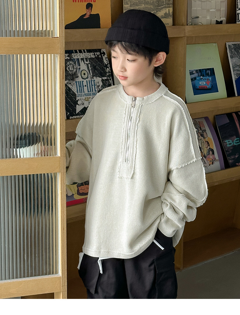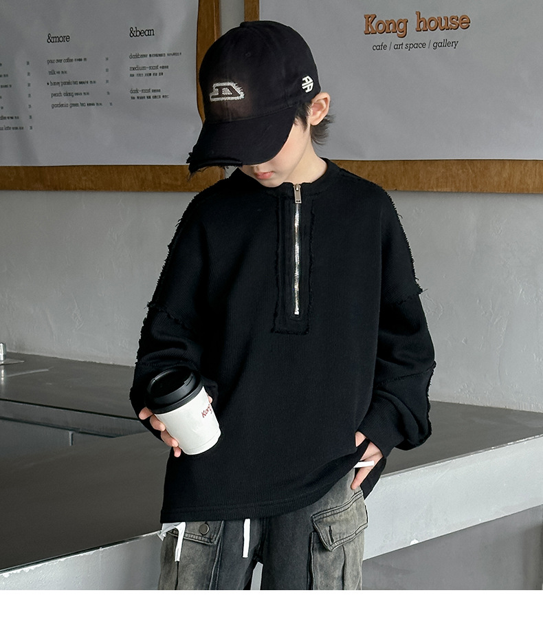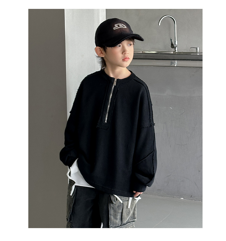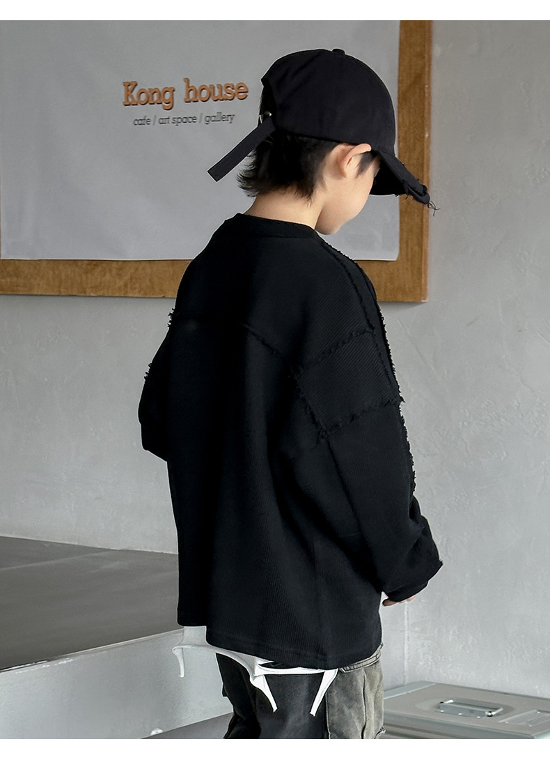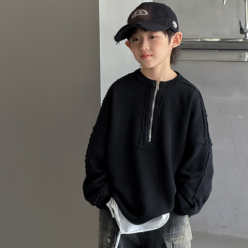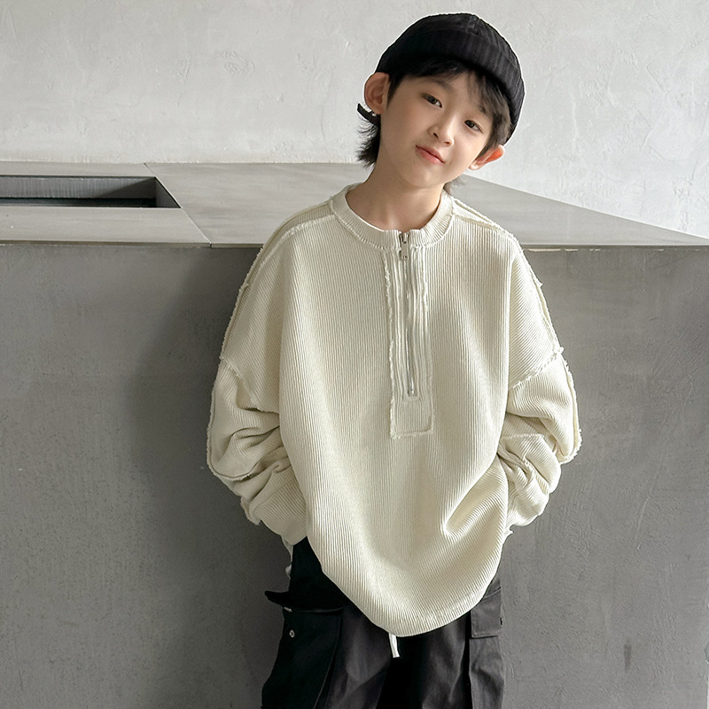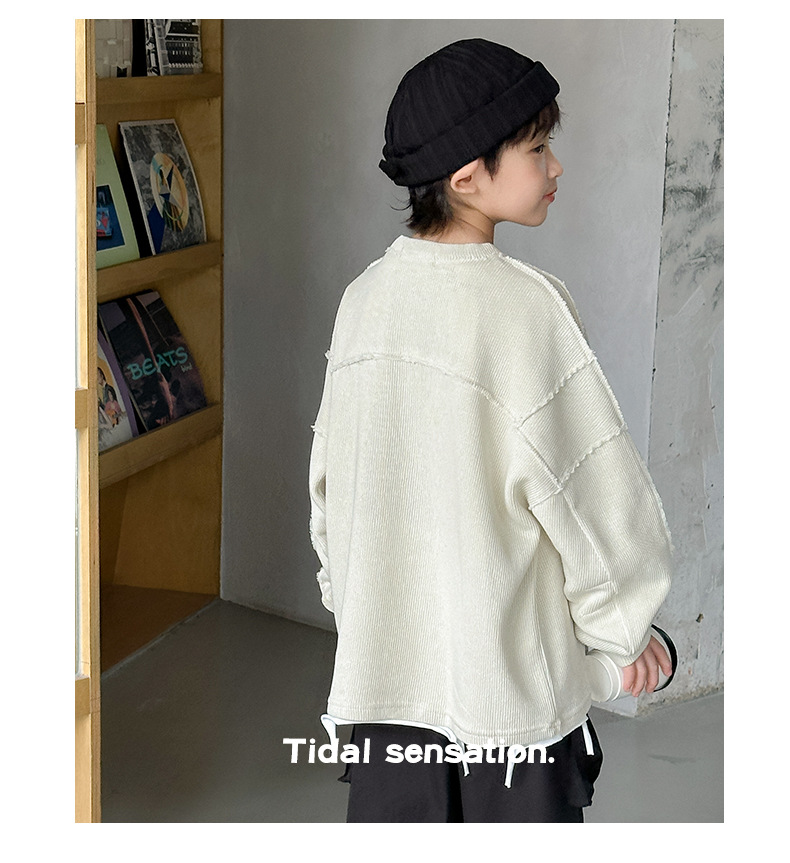 남학생 운동복 2024 년 봄과 가을 새로운 어린이 가을 크루 넥베이스 셔츠 큰 어린이 가을 옷 튀긴 거리 패션스토어 가기