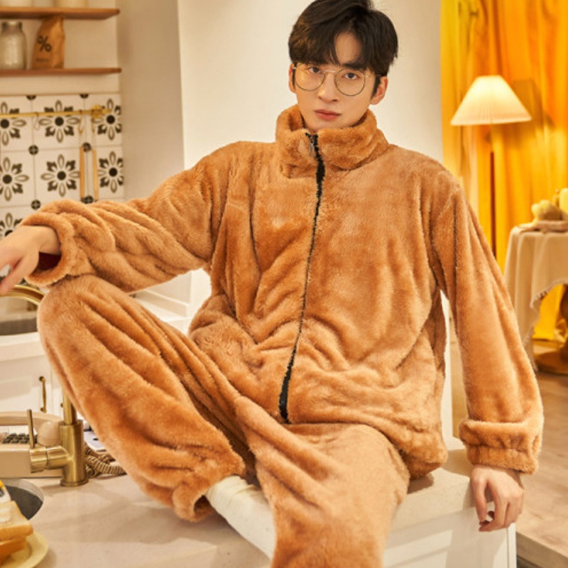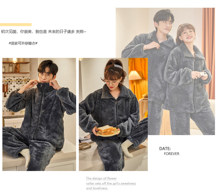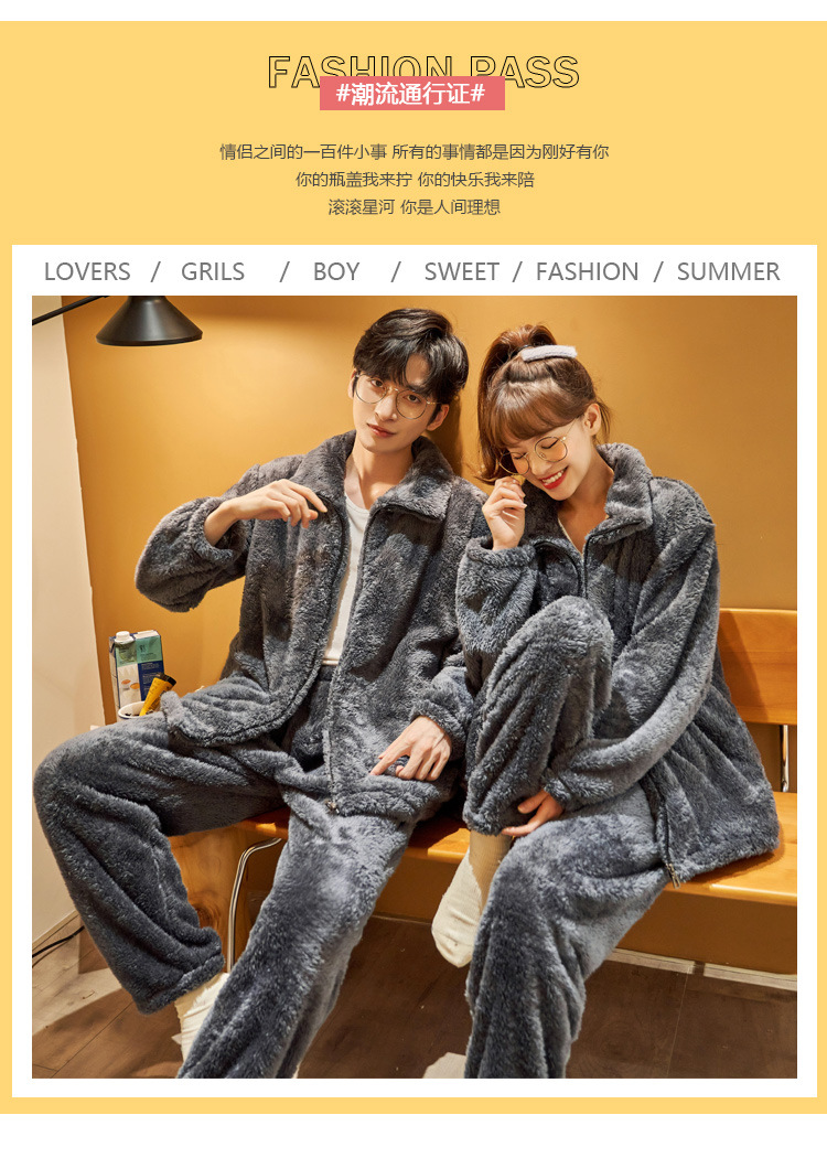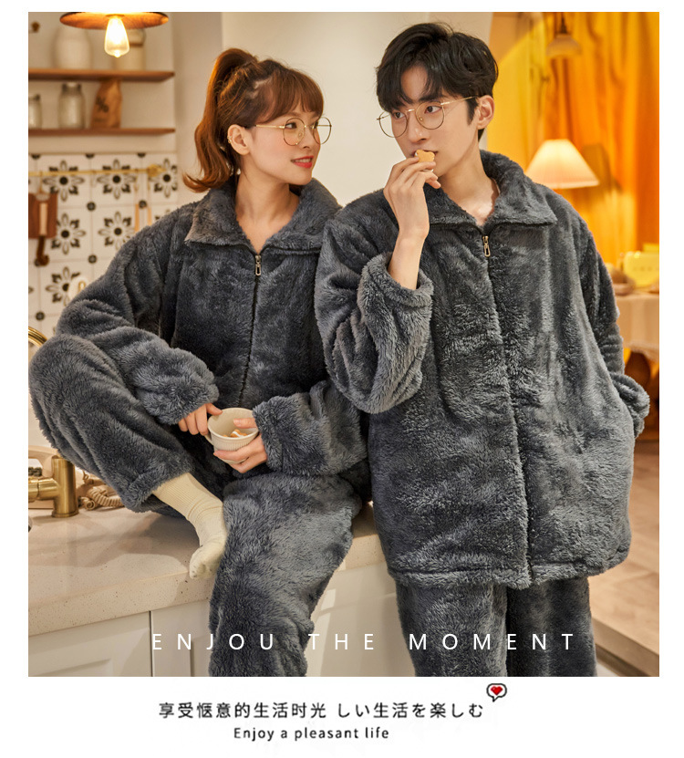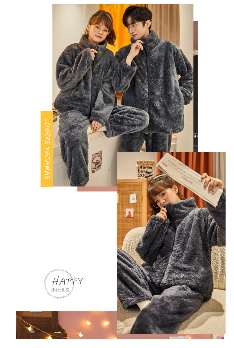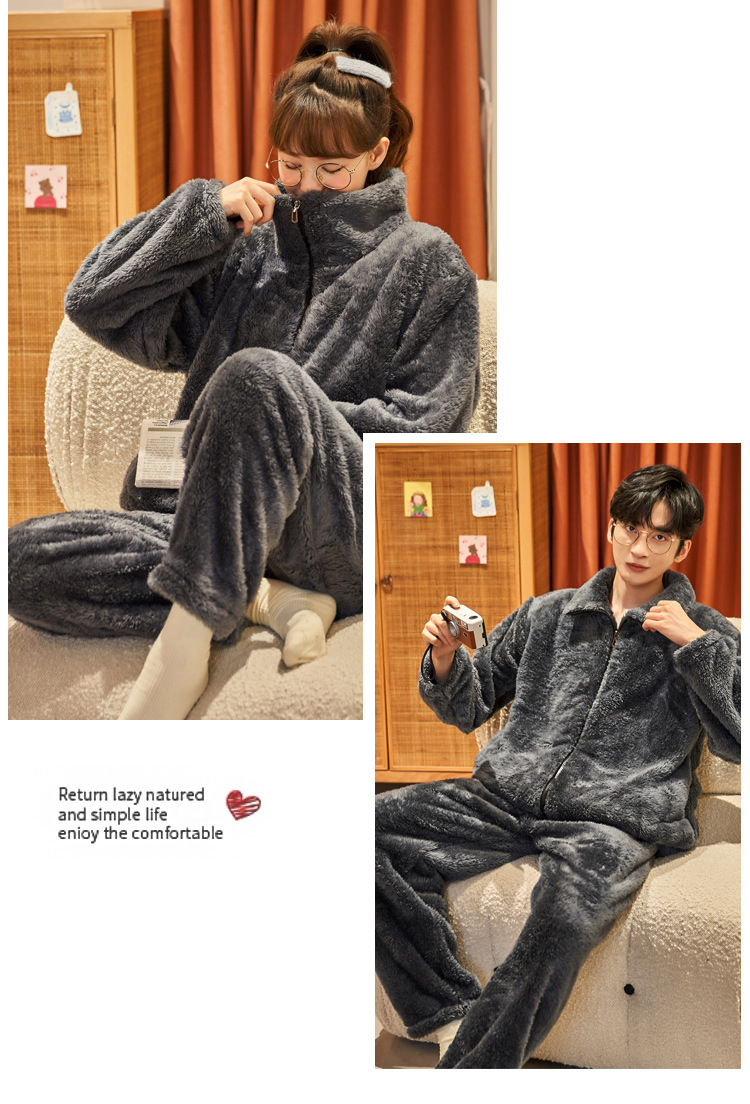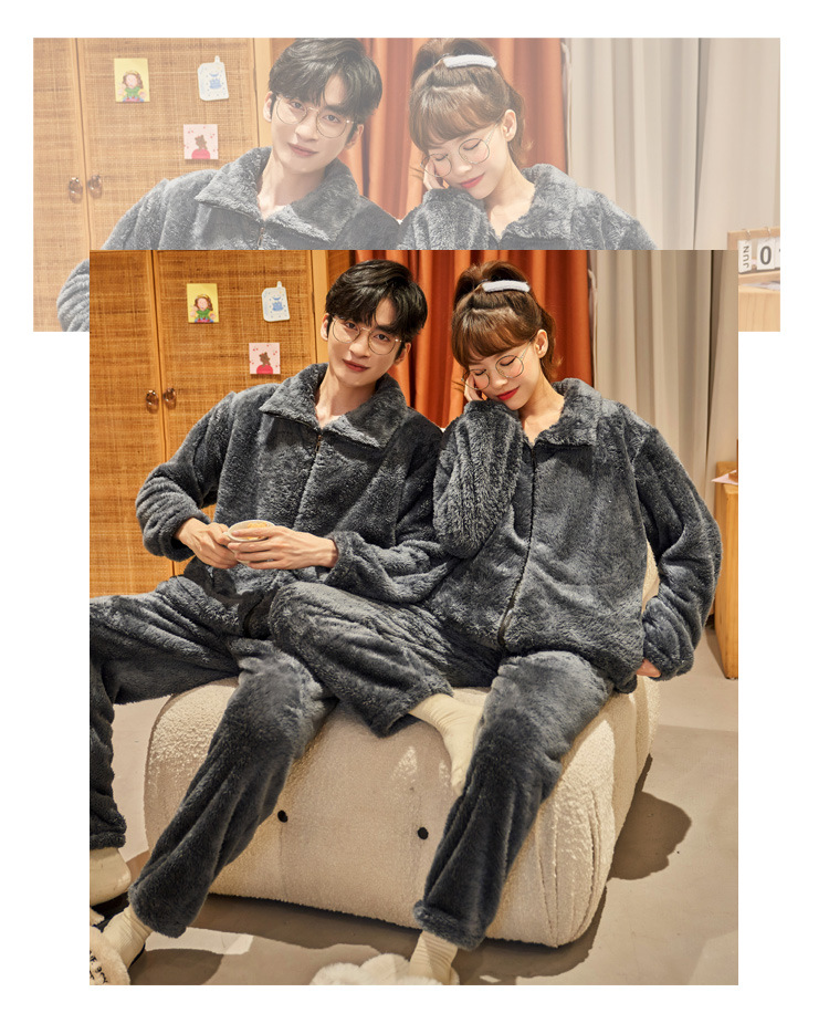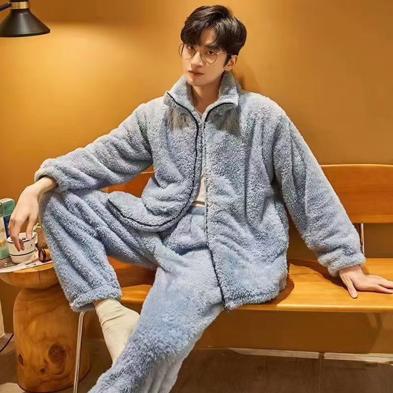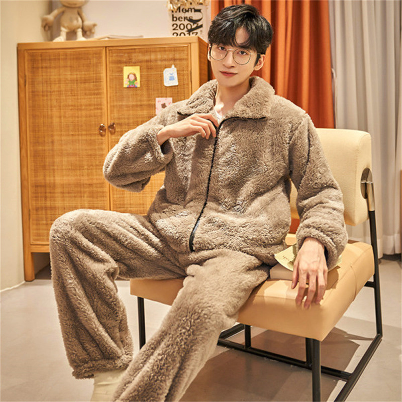 단색 잠옷 남자의 가을과 겨울 봉제 카디건 지퍼 옷깃 플란넬 산호 양털 홈 의류 세트스토어 가기