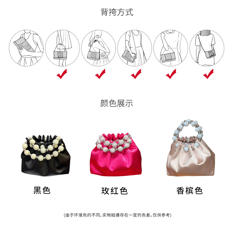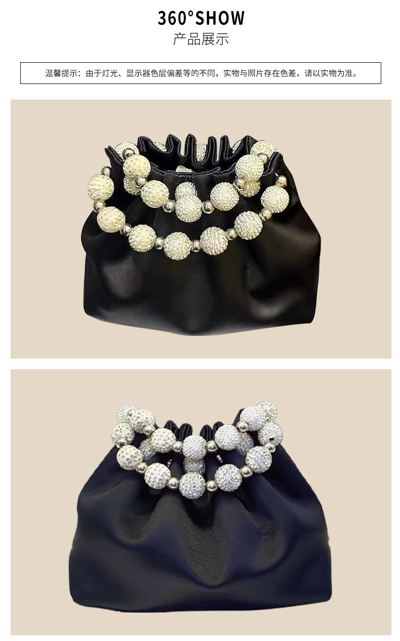 우아한 올 매치 여자 어깨 가방 새로운 중국 구슬 핸드백 하이 엔드 주름 버킷 백 벨벳 크로스 바디 백