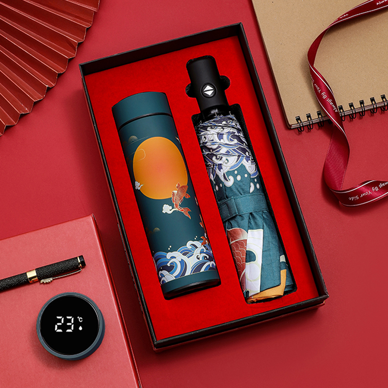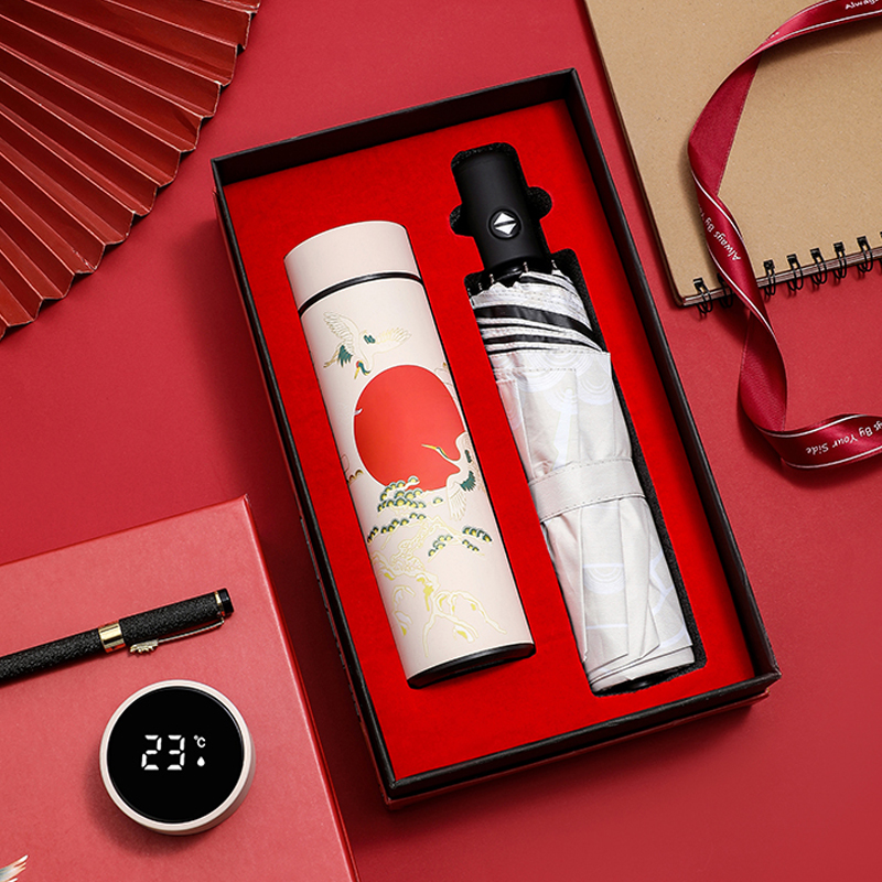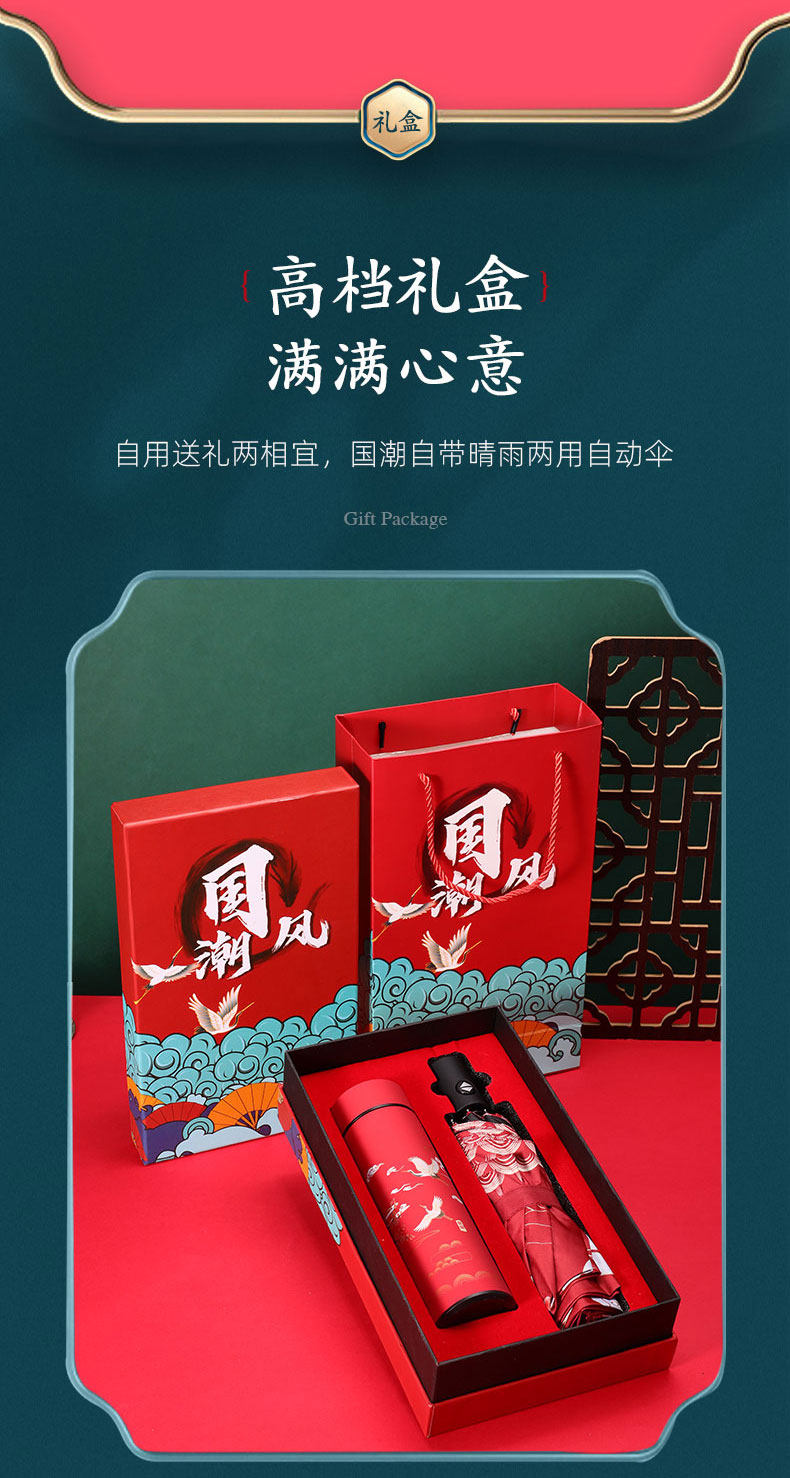 • 서리로 덥은 Rising Sun 스마트 컵 + Guochao 자동 우산