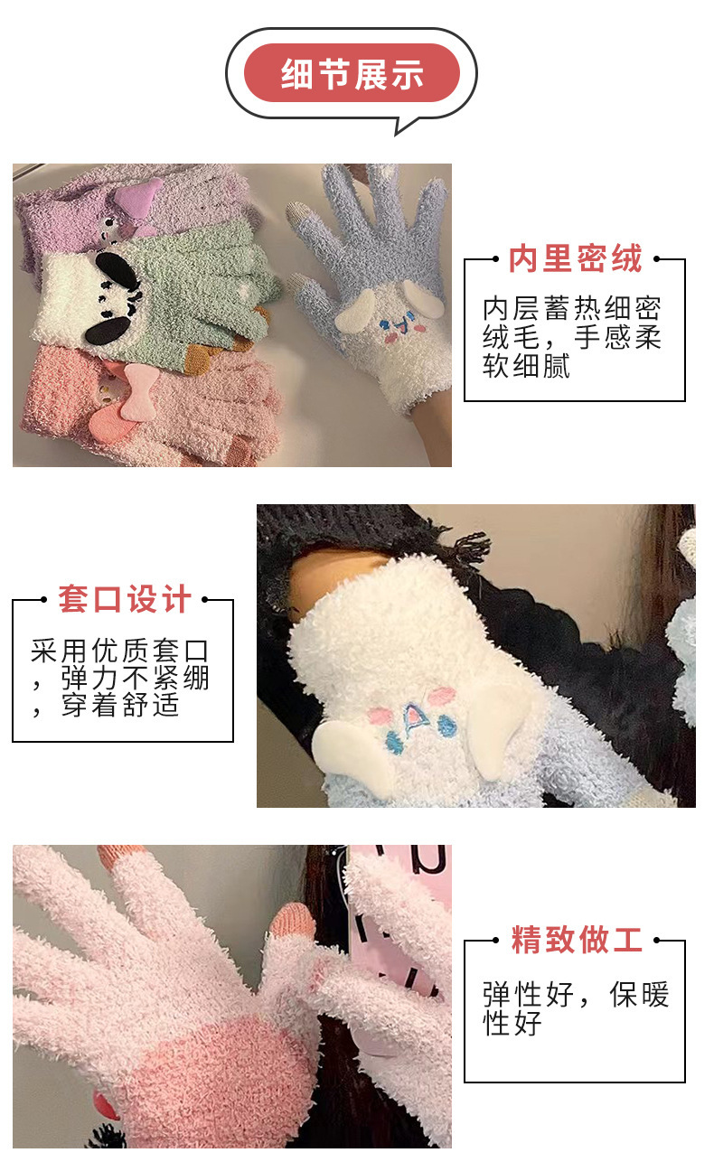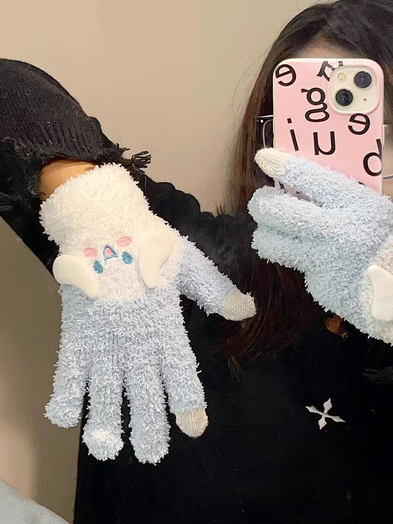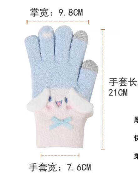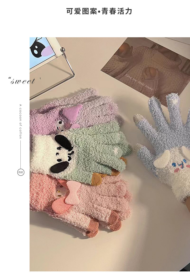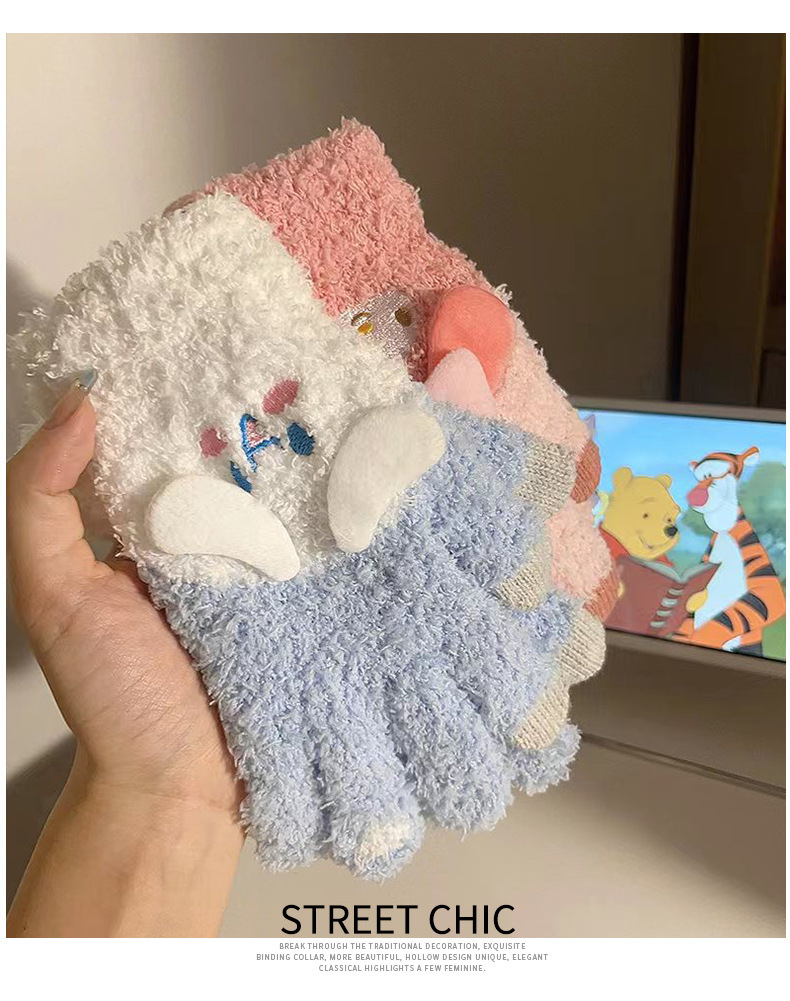 만화 봉제 장갑 귀여운 가을과 겨울 여성의 따뜻한 학생 두꺼운 타고 다섯 손가락 감기 방지 터치 스크린 장갑