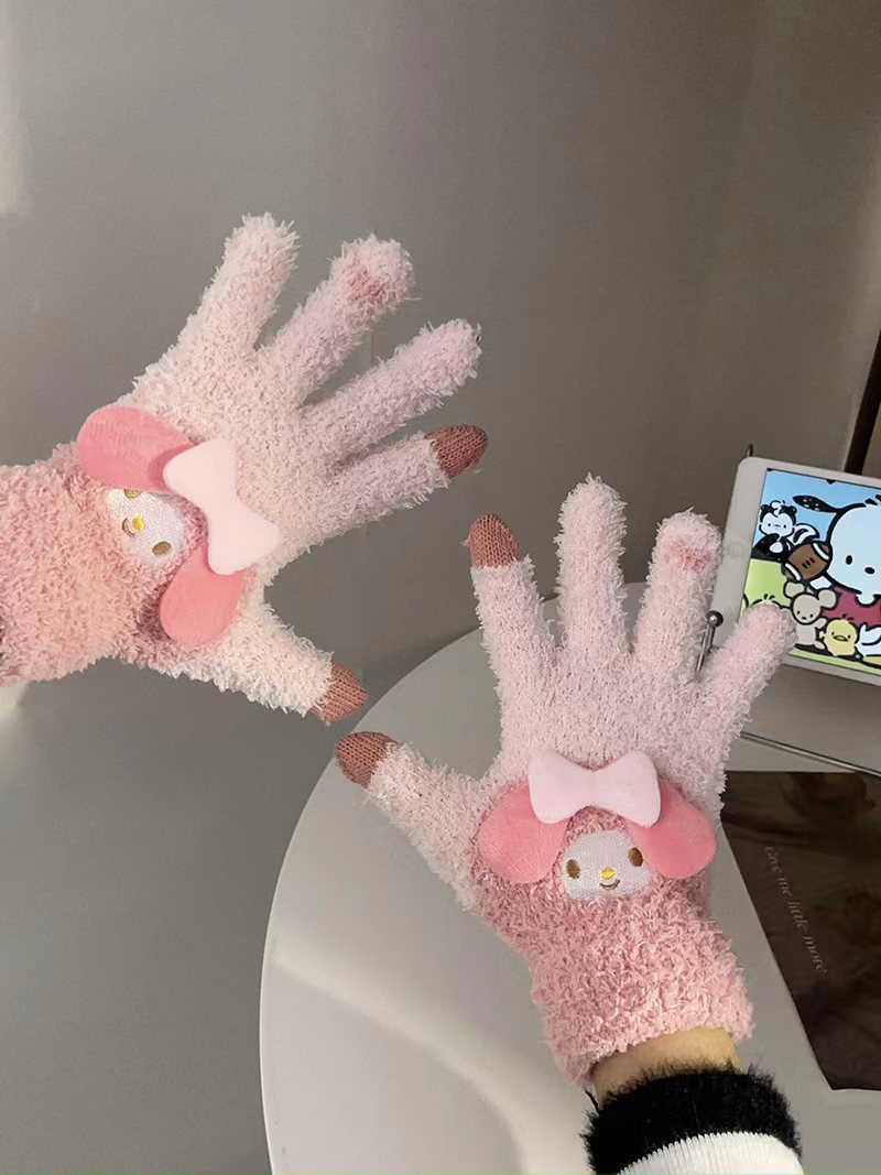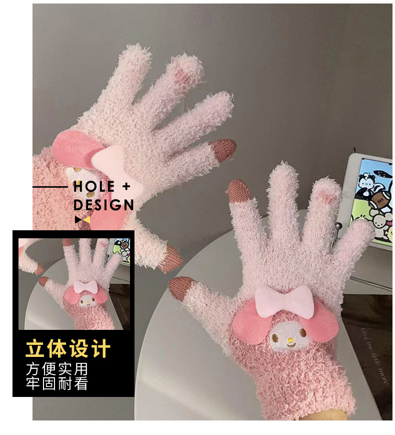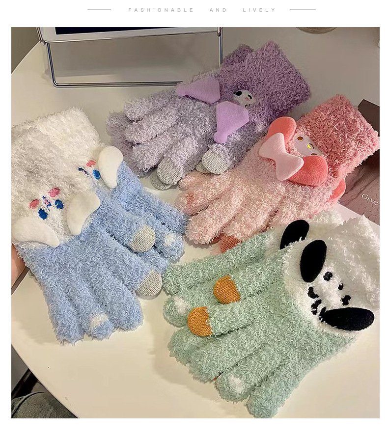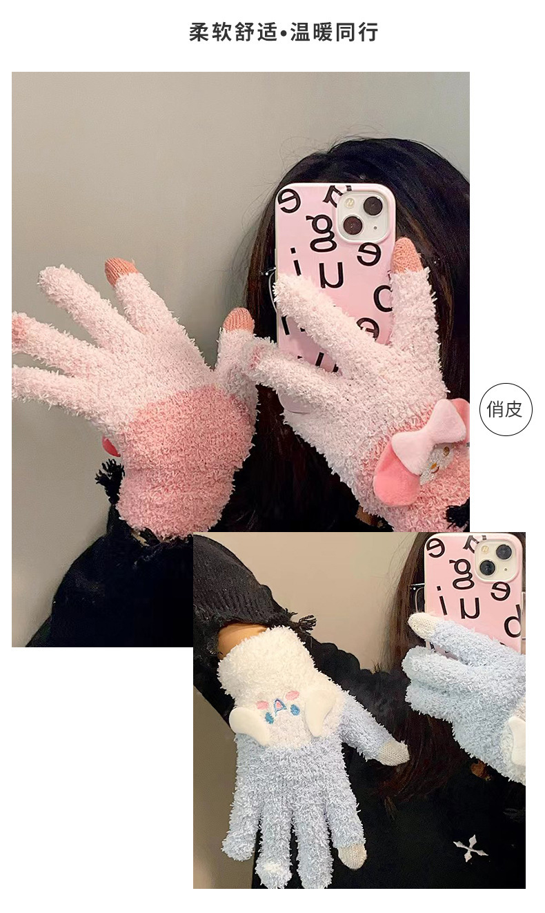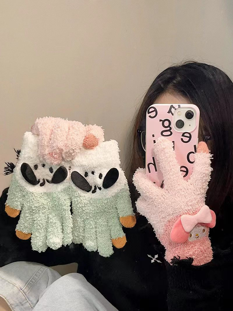 만화 봉제 장갑 귀여운 가을과 겨울 여성의 따뜻한 학생 두꺼운 타고 다섯 손가락 감기 방지 터치 스크린 장갑