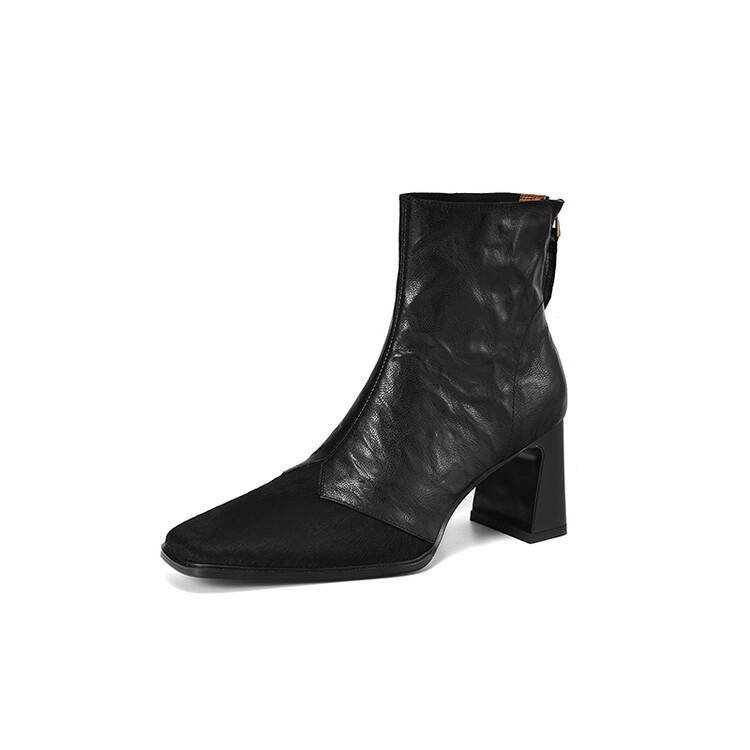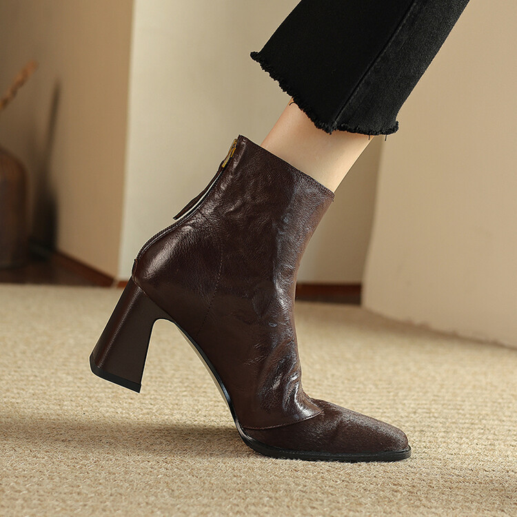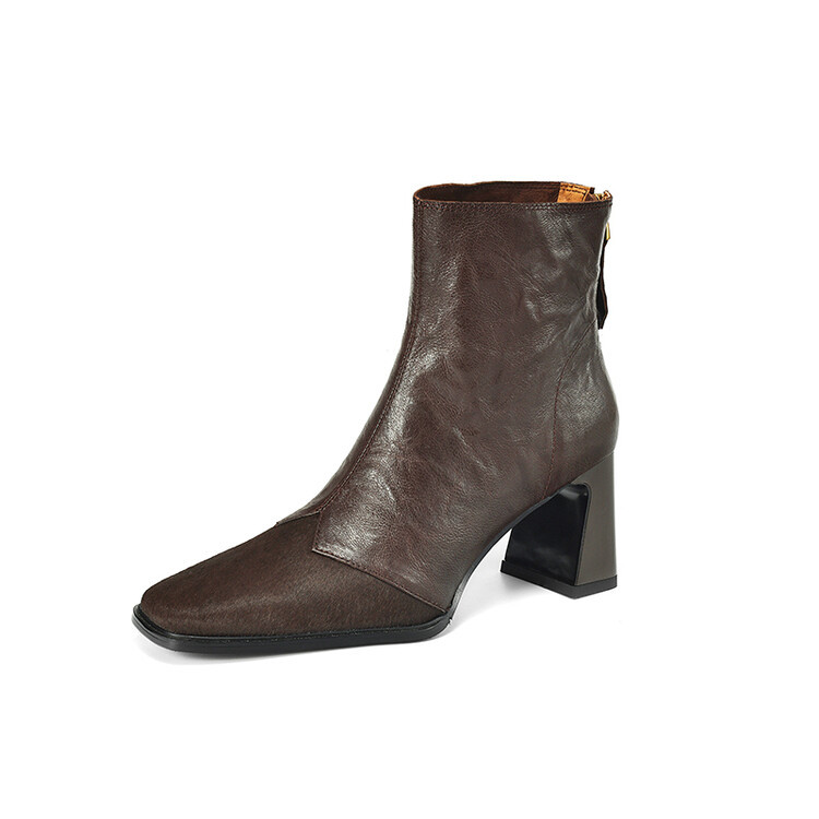 양가죽 말 머리의 첫 번째 레이어 가벼운 고급 여성 신발 하이힐 짧은 부츠 여성 패션 복고풍 두꺼운 뒤꿈치 스티칭 여성 가죽 부츠스토어 가기