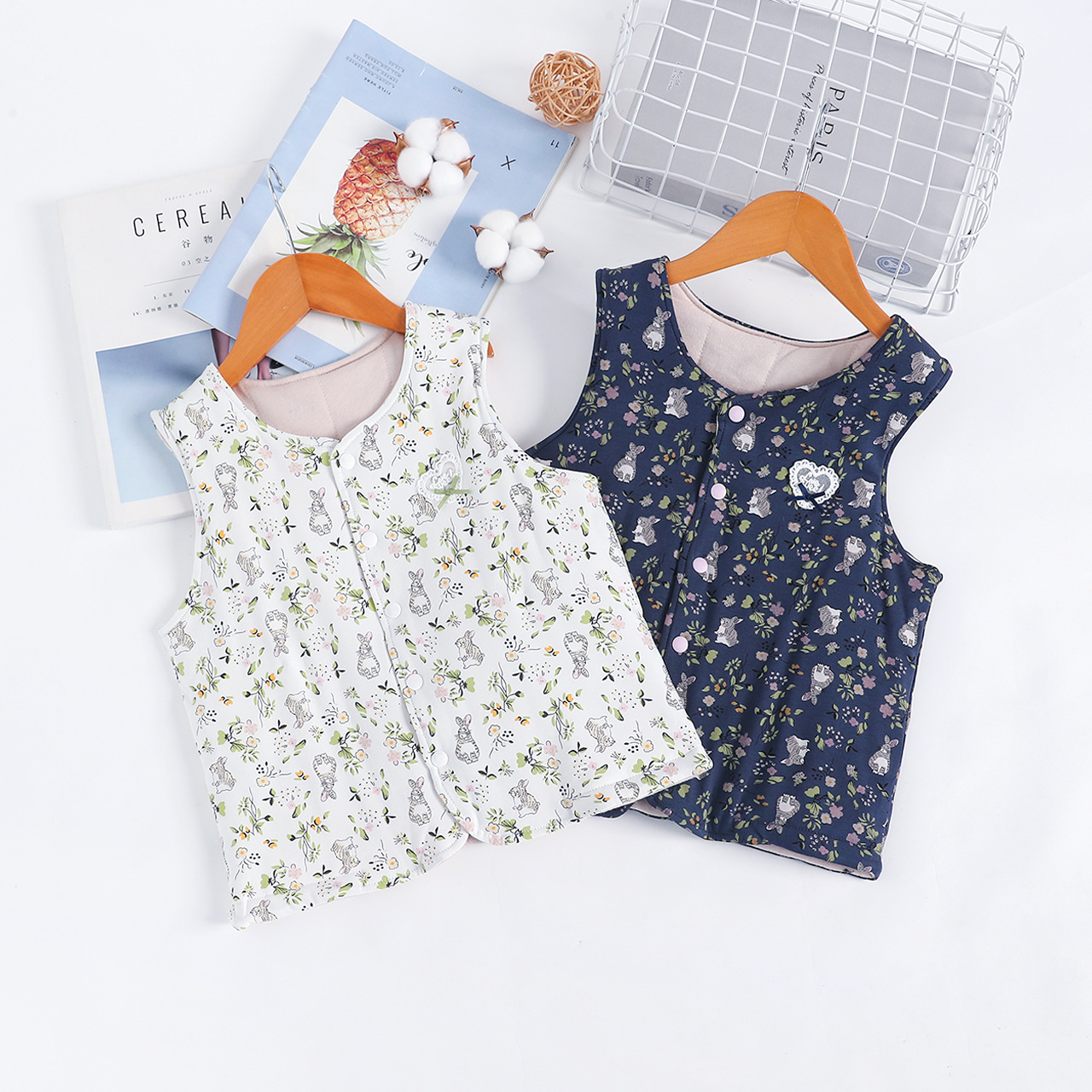 어린이 조끼 2024 년 가을과 겨울 새로운 스타일 면화 두꺼운 아기의 외부 착용 민소매 벨리 프로텍터 따뜻한 여자 면 윈치