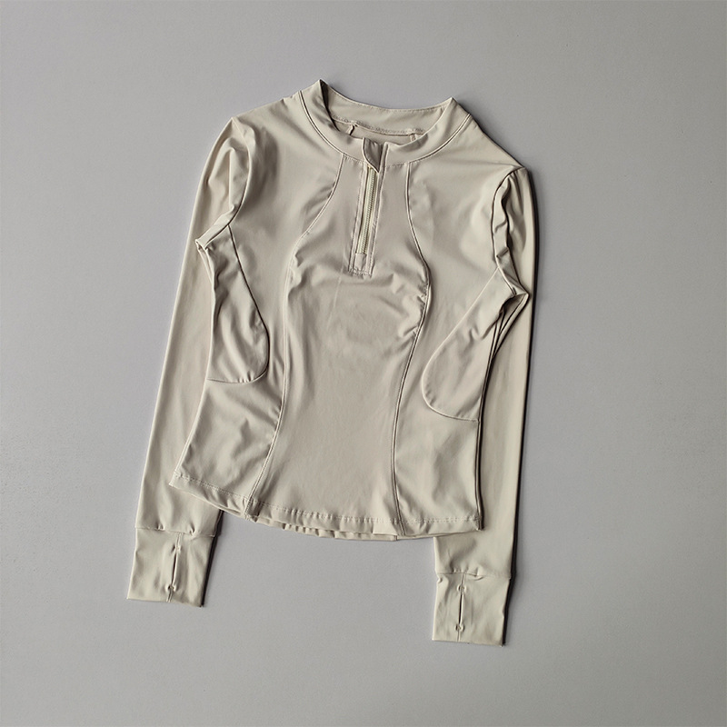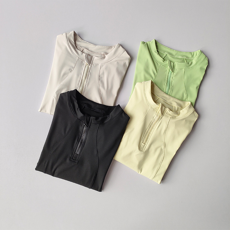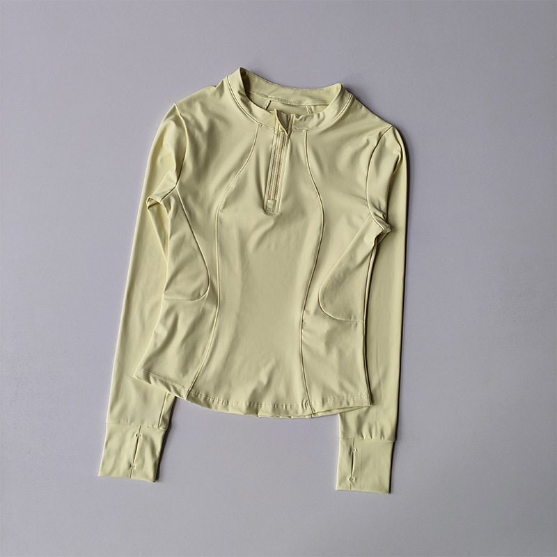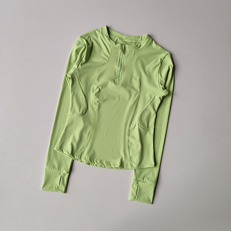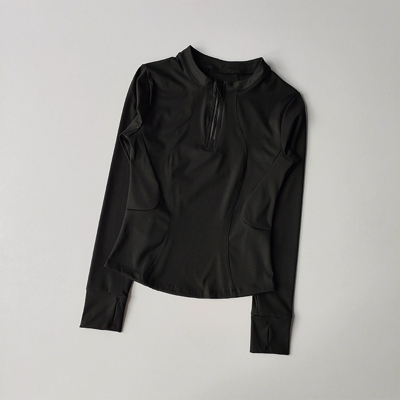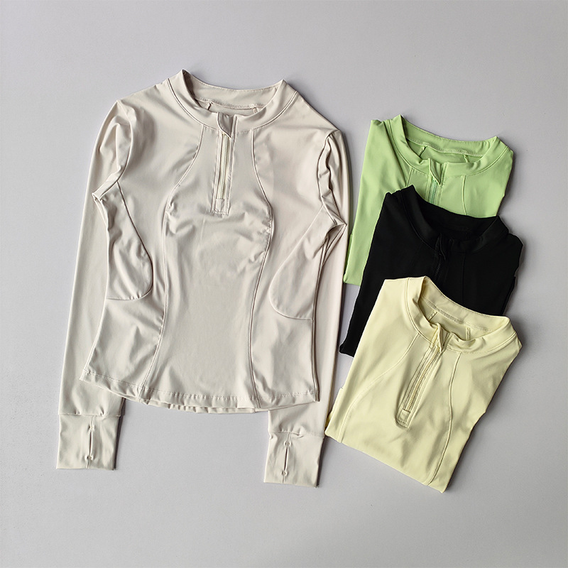 가을 새로운 하프 Zip 칼라 요가 탑 슬림 핏 슬리밍 러닝 긴팔 스포츠 파멜라 피트니스 웨어 여성용스토어 가기