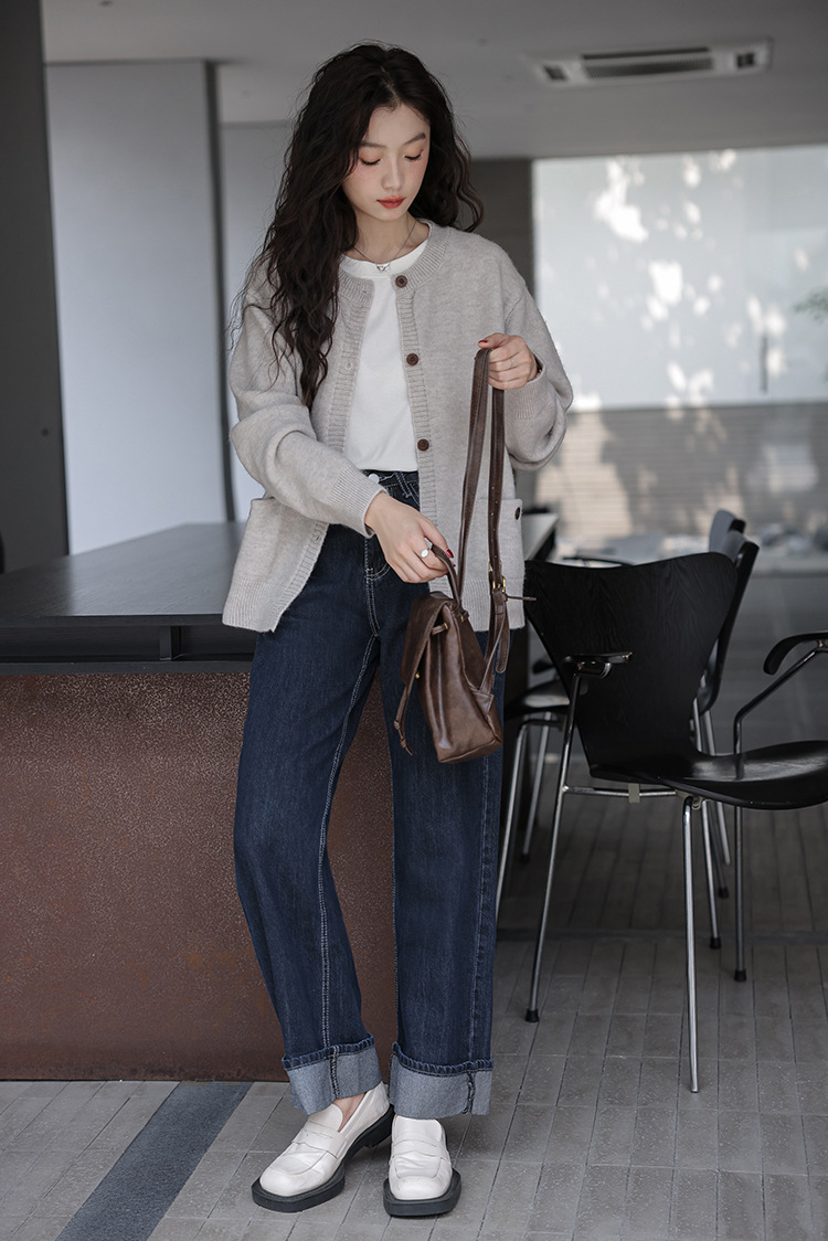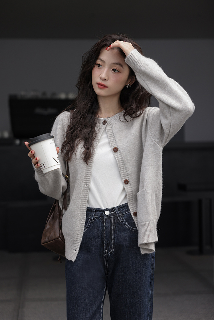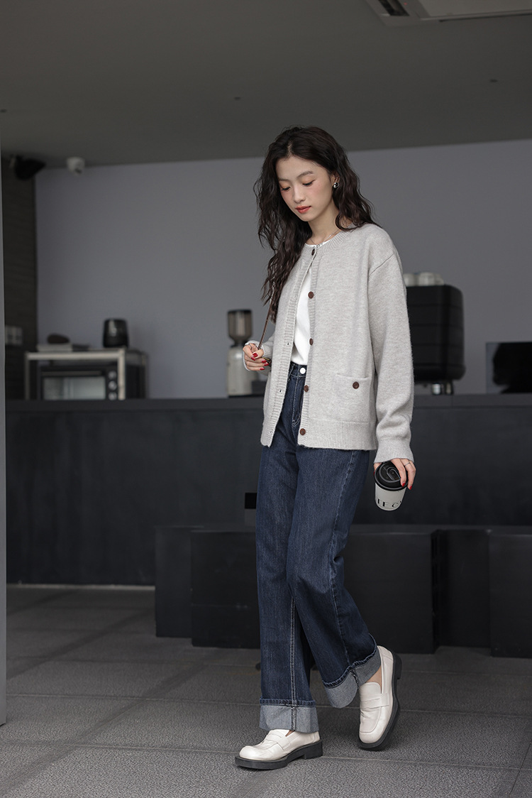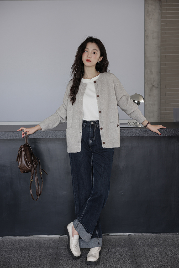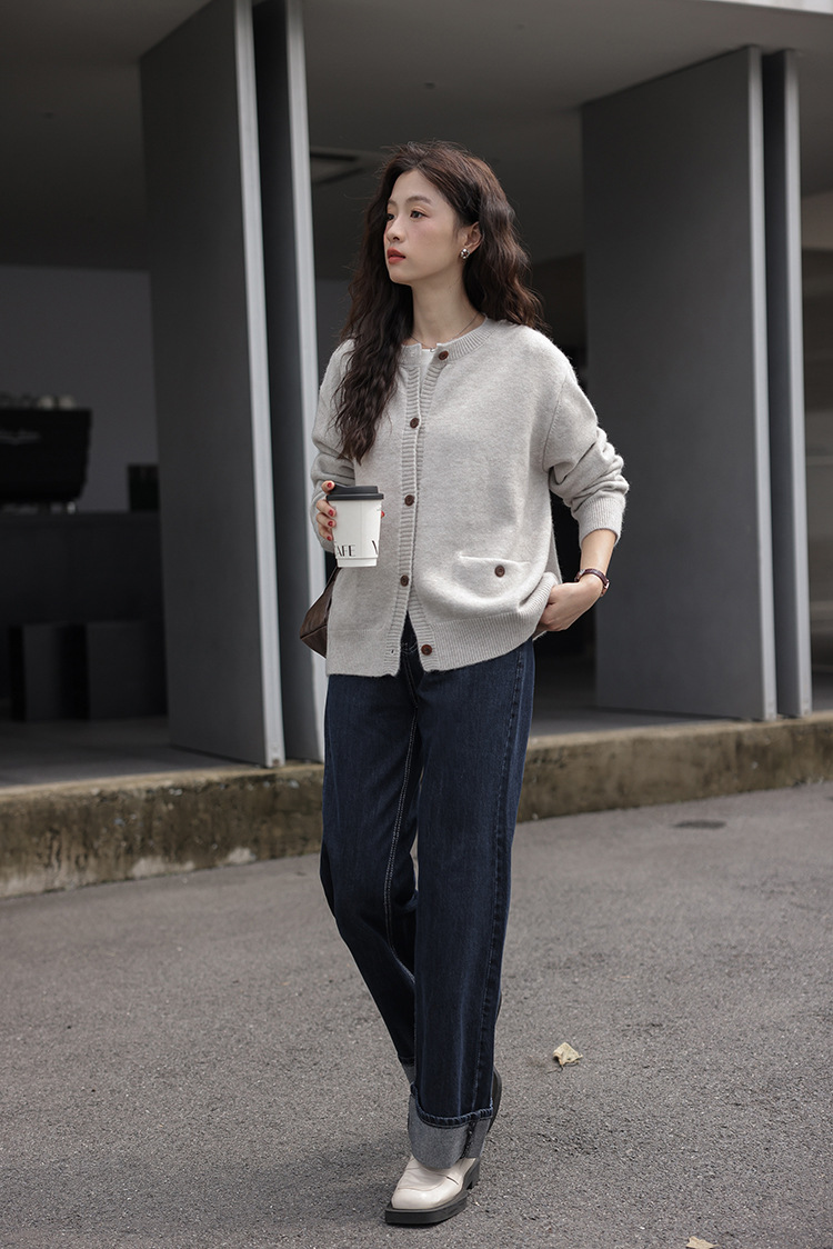 2024 가을과 겨울 새로운 패션 하이 엔드 스웨터 코트 여성용 웨스턴 니트 카디건 라운드 넥 더블 포켓 코트스토어 가기