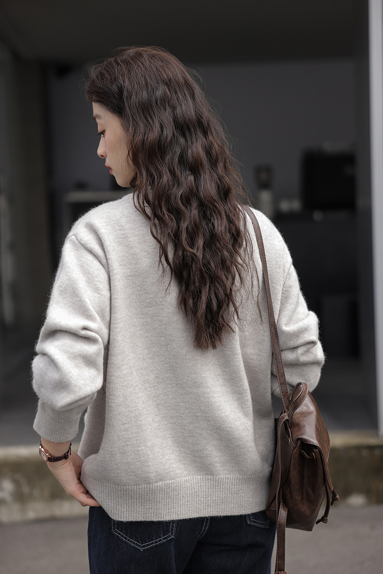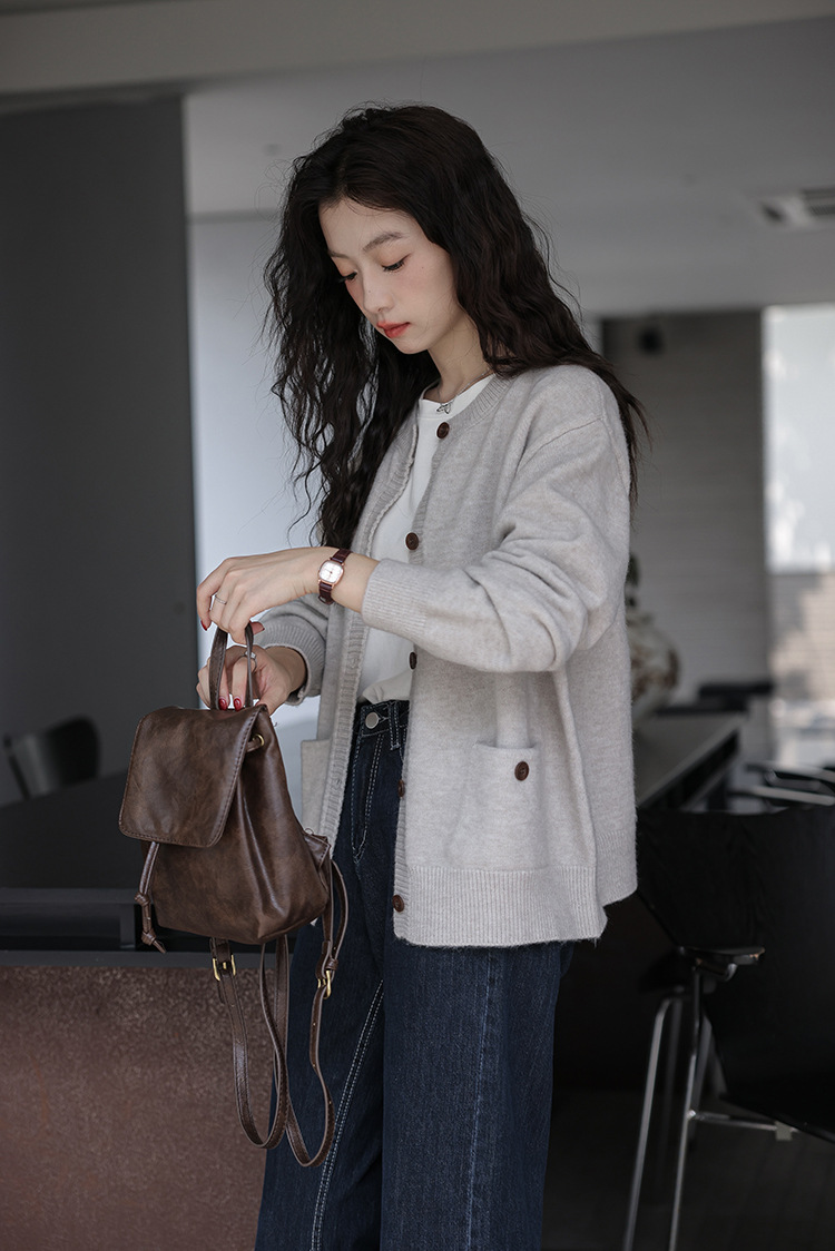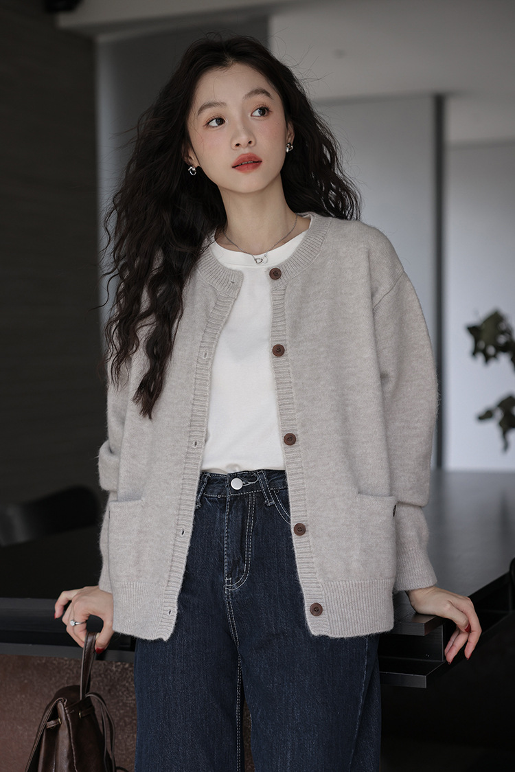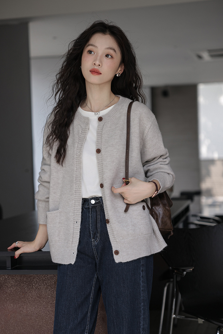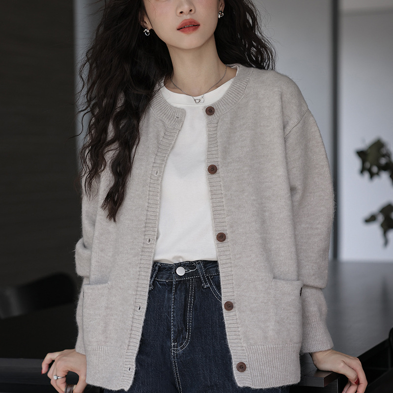2024 가을과 겨울 새로운 패션 하이 엔드 스웨터 코트 여성용 웨스턴 니트 카디건 라운드 넥 더블 포켓 코트