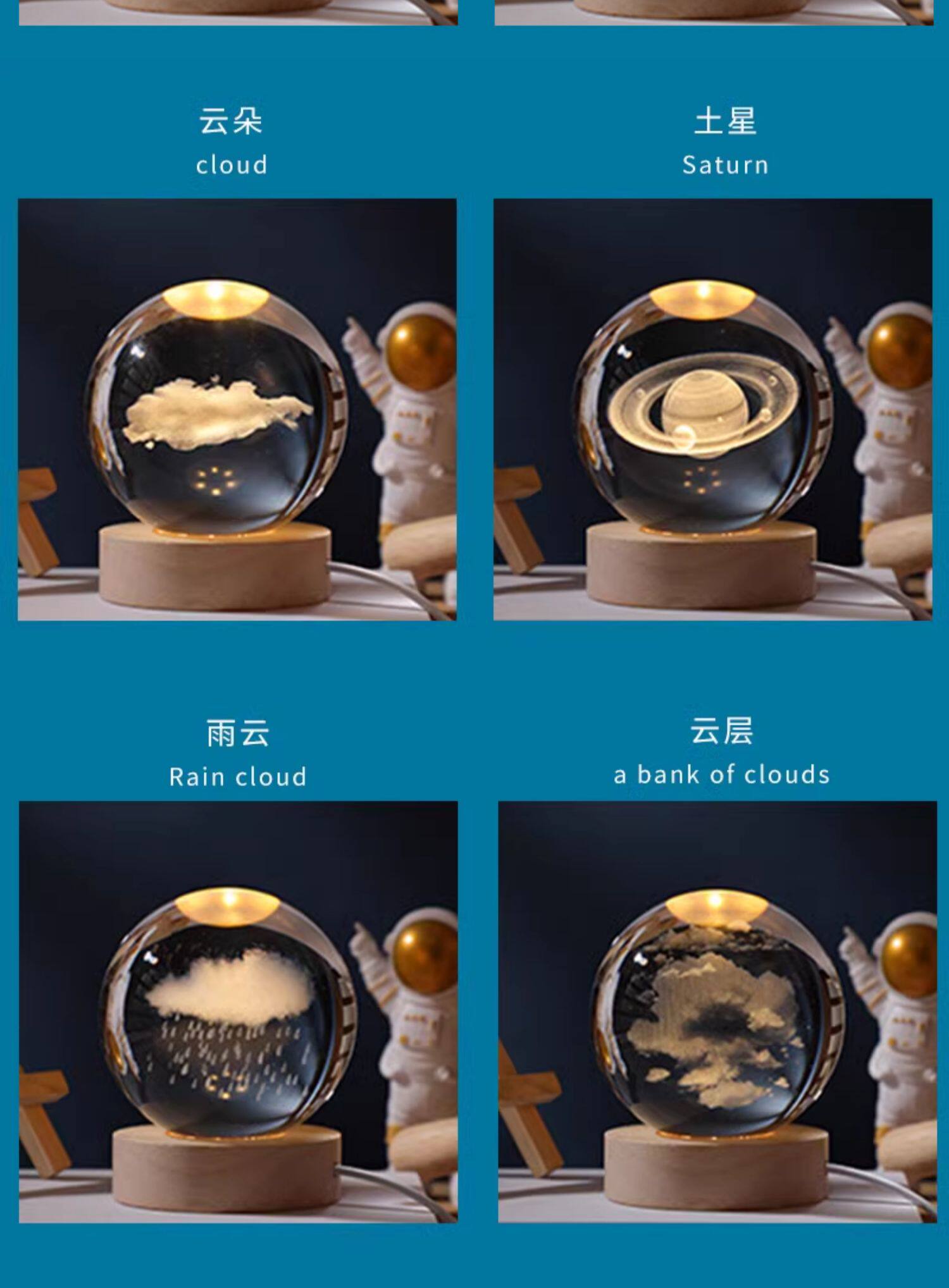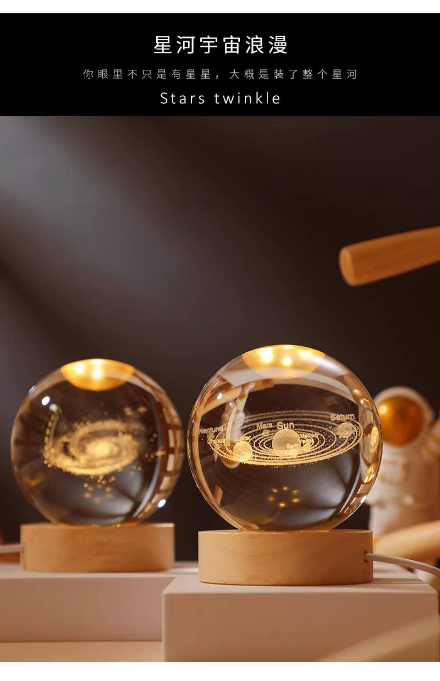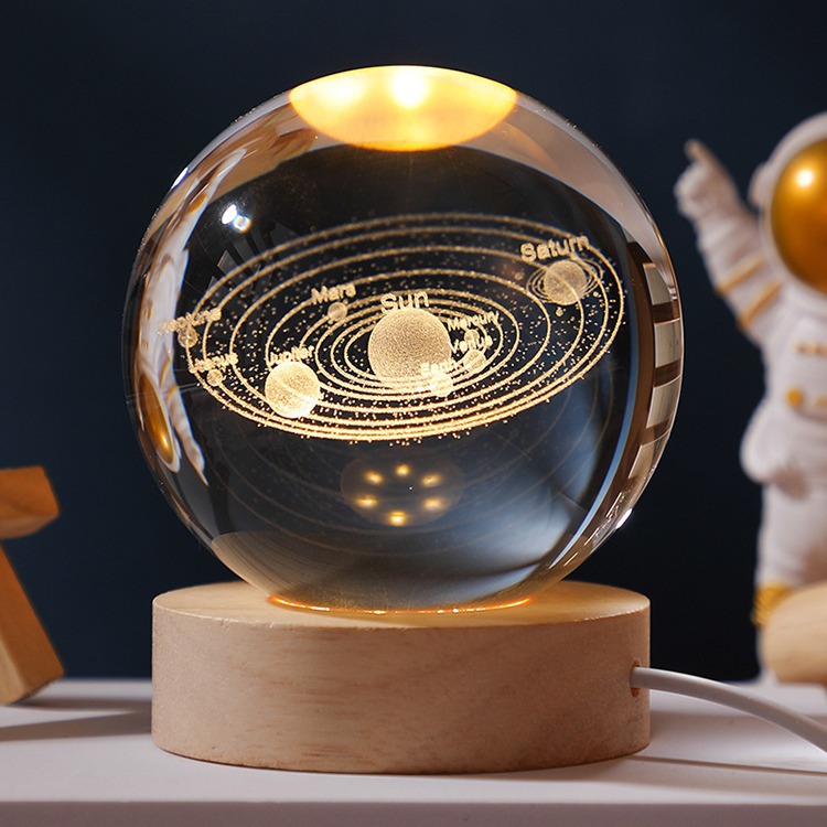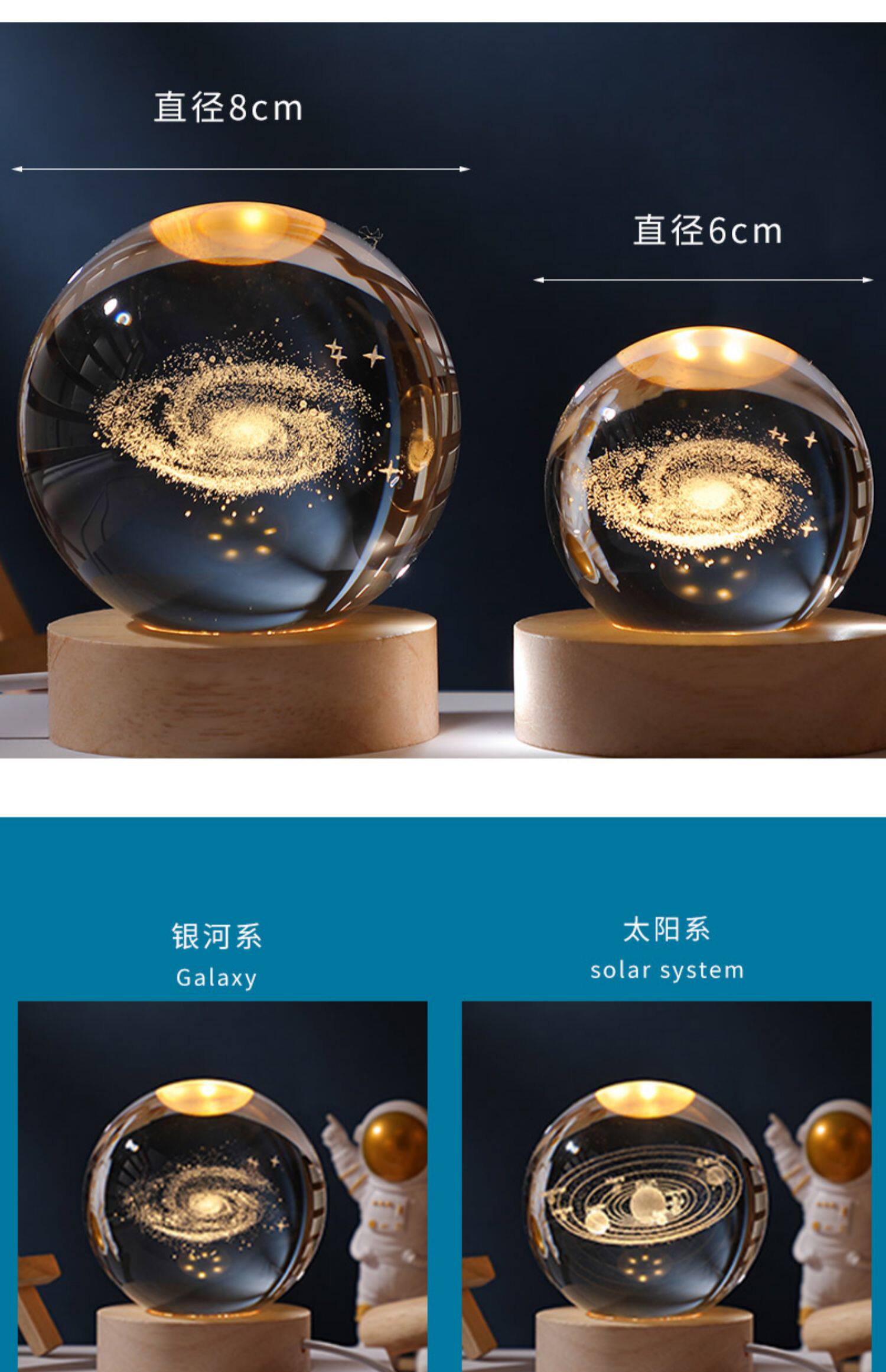 빛나는 태양계 크리스탈 볼 데스크탑 나이트 라이트 장식품 소녀와 소년 스승의 날을위한 별이 빛나는 하늘 유리 공 생일 선물스토어 가기