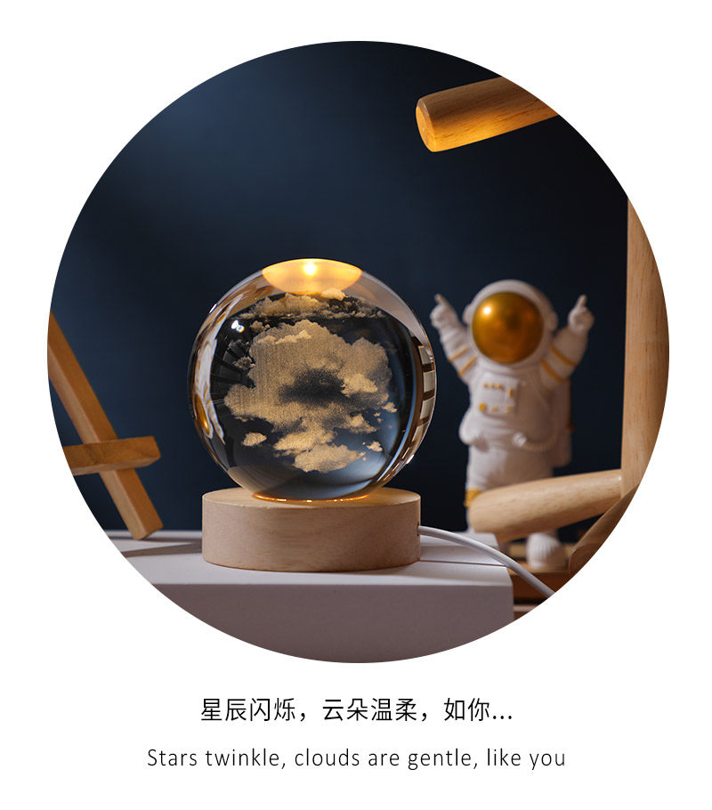 빛나는 태양계 크리스탈 볼 데스크탑 나이트 라이트 장식품 소녀와 소년 스승의 날을위한 별이 빛나는 하늘 유리 공 생일 선물