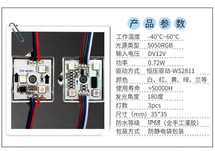 4 램프 철 쉘 2801 매직 컬러 3535 모듈 발광 캐릭터 스퀘어 풀 컬러 SPI 데이터 3 램프 방수 모듈스토어 가기