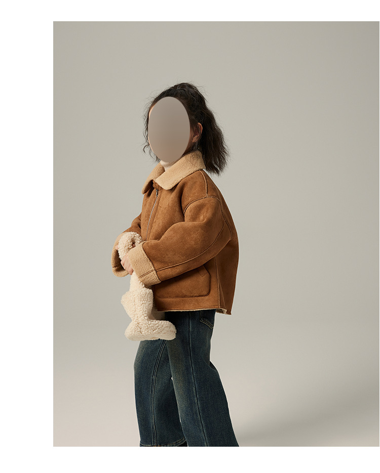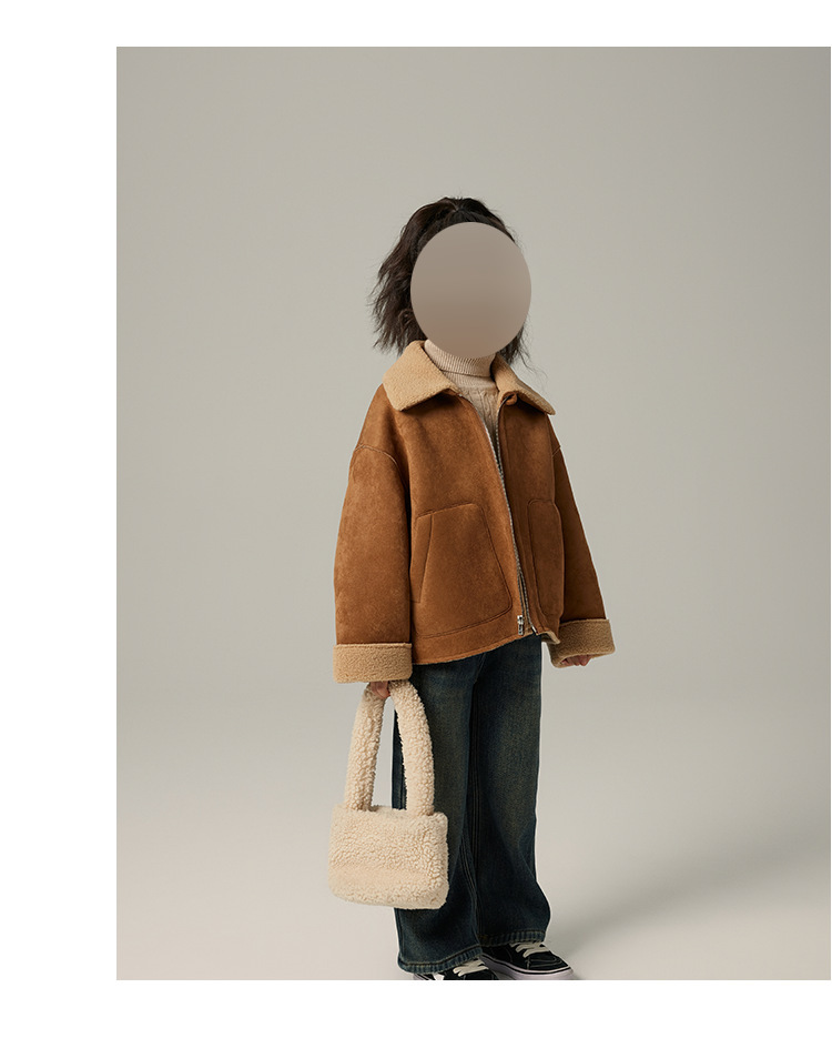 여자 마오 코트 가을과 겨울 새로운 한국 버전의 외국 스타일 기모 재킷 캐주얼 코트 어린이 헤어 세대