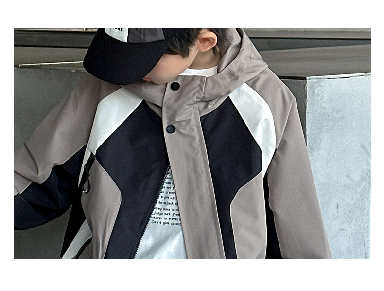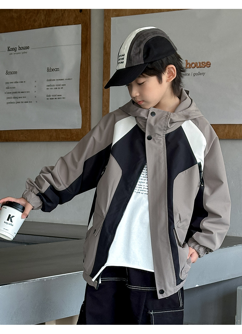 소년 충전 옷 코트 2024 년 봄과 가을 새로운 도착 중다 어린이 가을 후드 탑 소년 가을 패션 브랜드스토어 가기