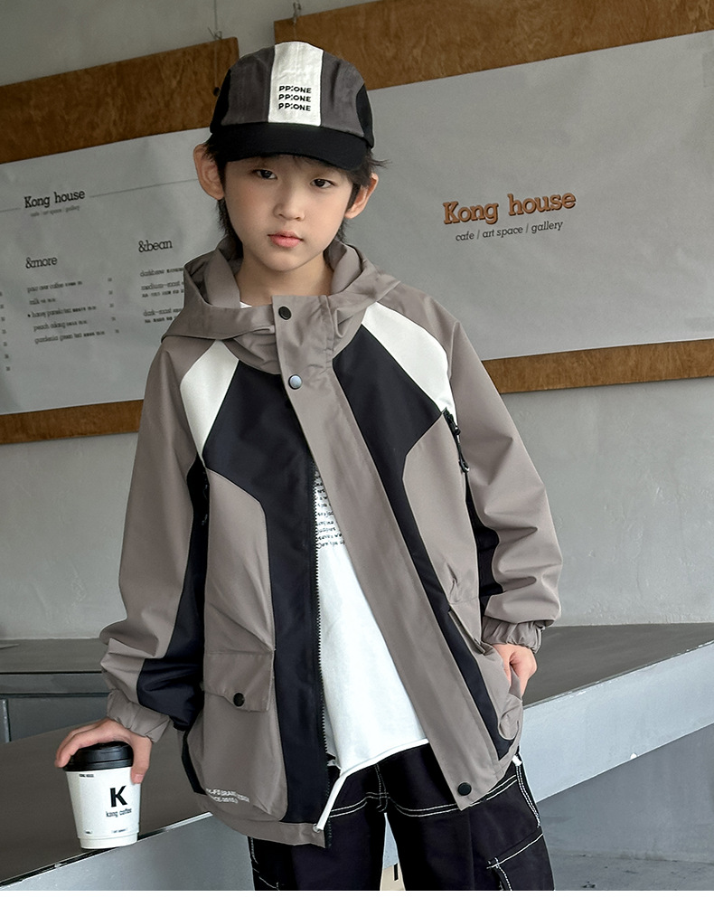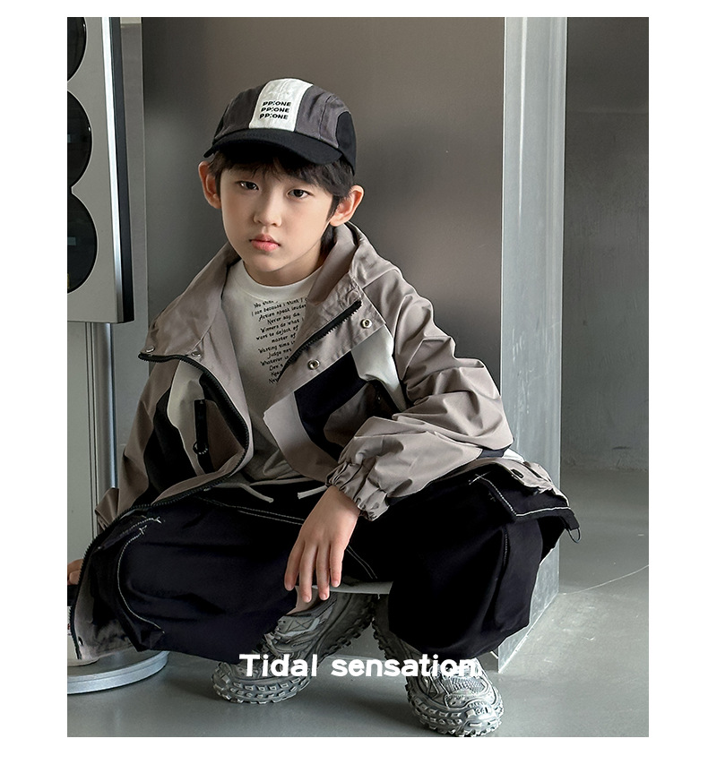 소년 충전 옷 코트 2024 년 봄과 가을 새로운 도착 중다 어린이 가을 후드 탑 소년 가을 패션 브랜드