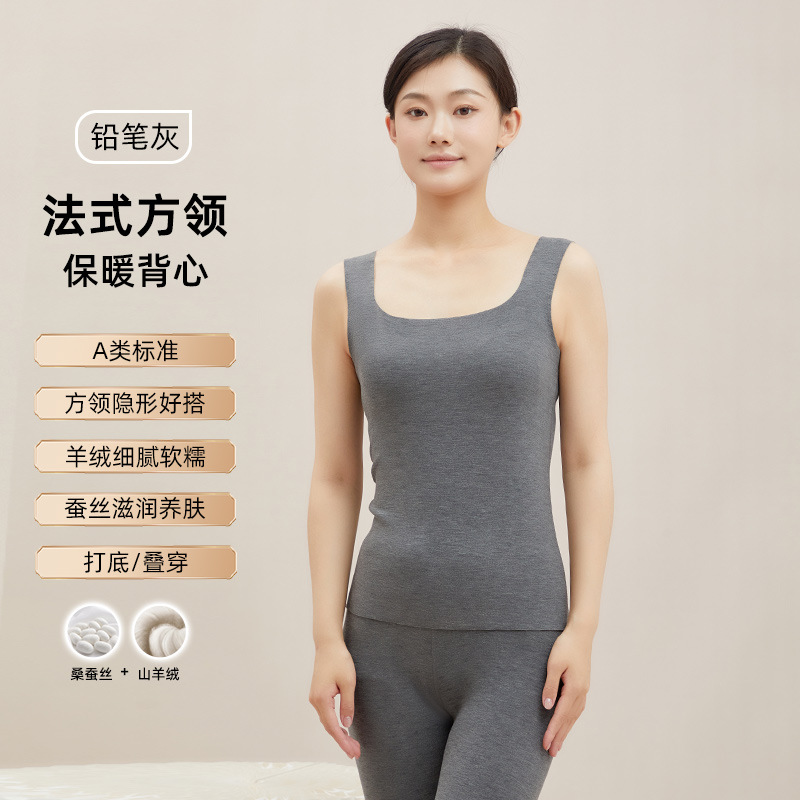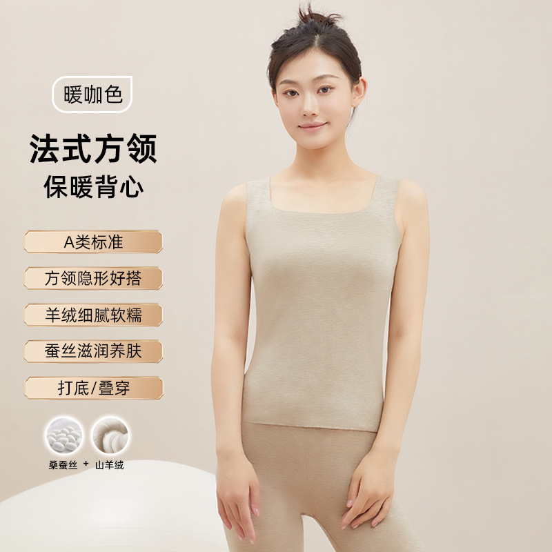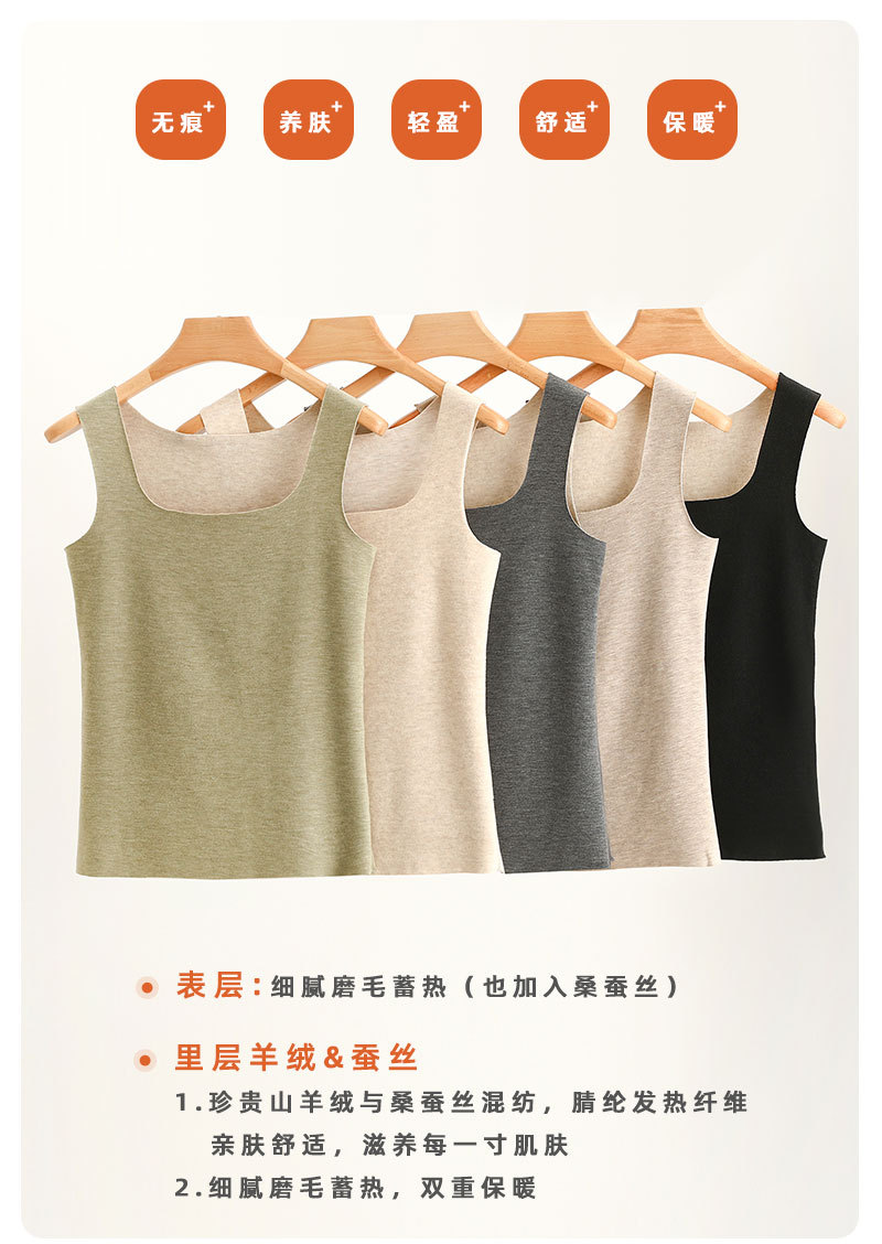 가을 겨울 무봉제 스퀘어넥 보온 이너웨어 여성용 실크 캐시미어 베이스 레이어 민소매 조끼 플러스 벨벳 슬림핏 여성용 다용도스토어 가기
