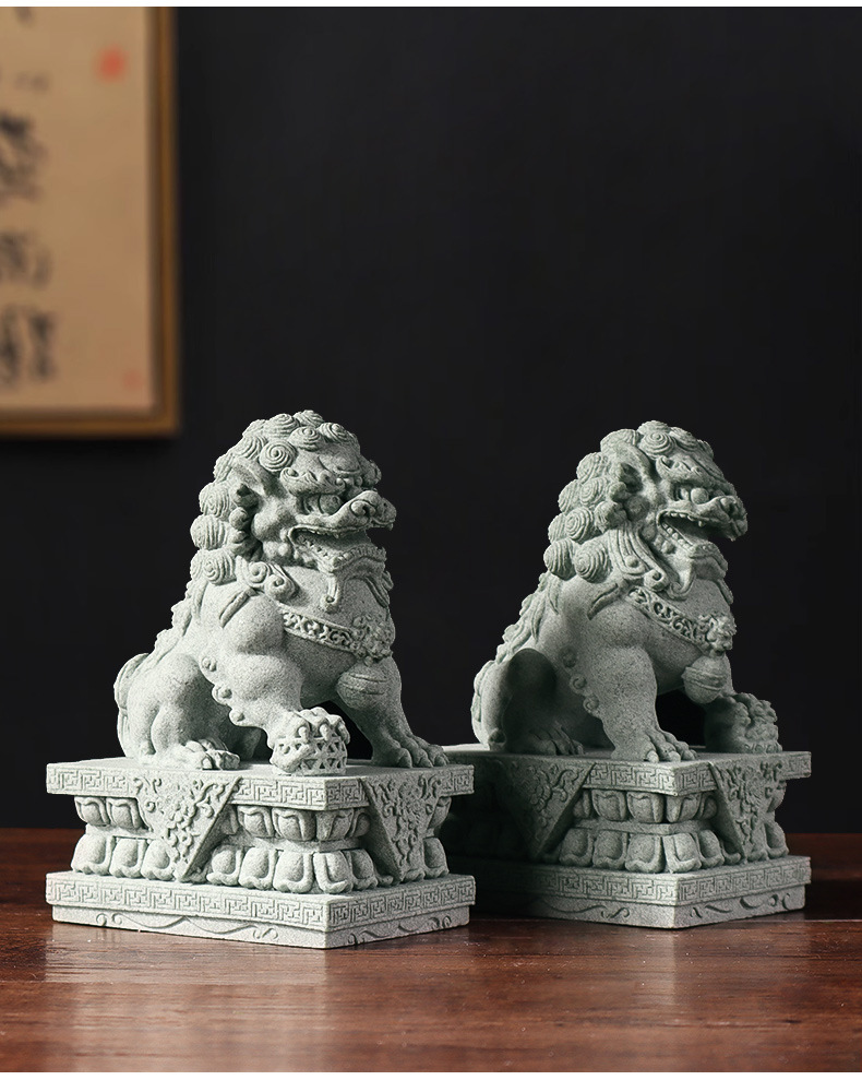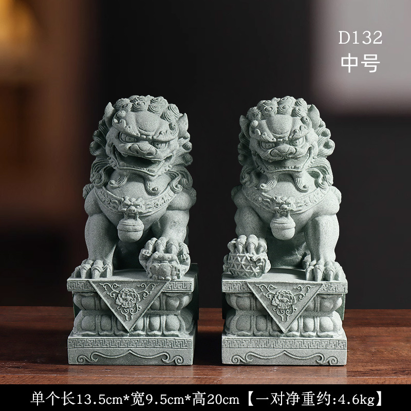 중국 스타일의 녹색 모래 돌 사자 쌍 국가 패션 장식품 물고기 탱크 풍경 창의력 데스크탑 거실 장식스토어 가기