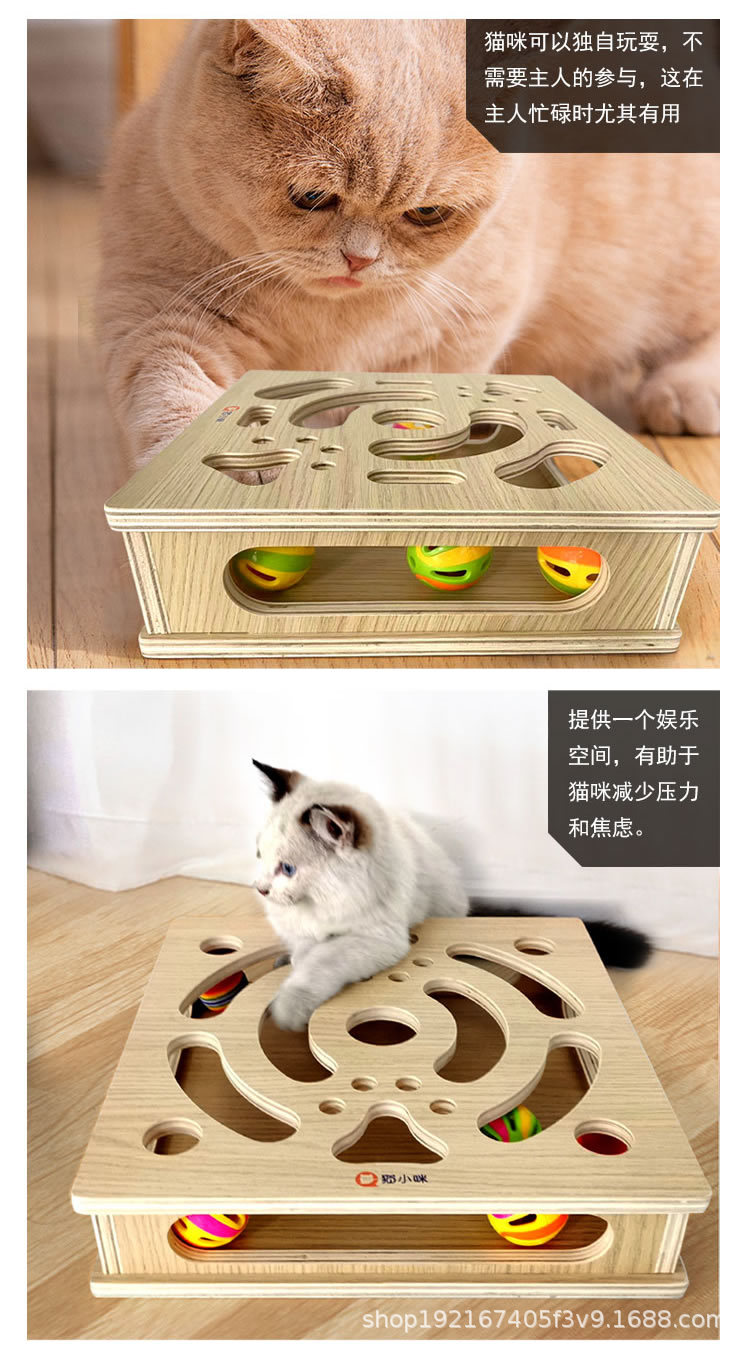 고양이 장난감 미로 상자 고양이 종소리 원목 게임 고양이 트랙볼 고양이 스크래치 보드 애완동물 용품 교육용 장난감스토어 가기
