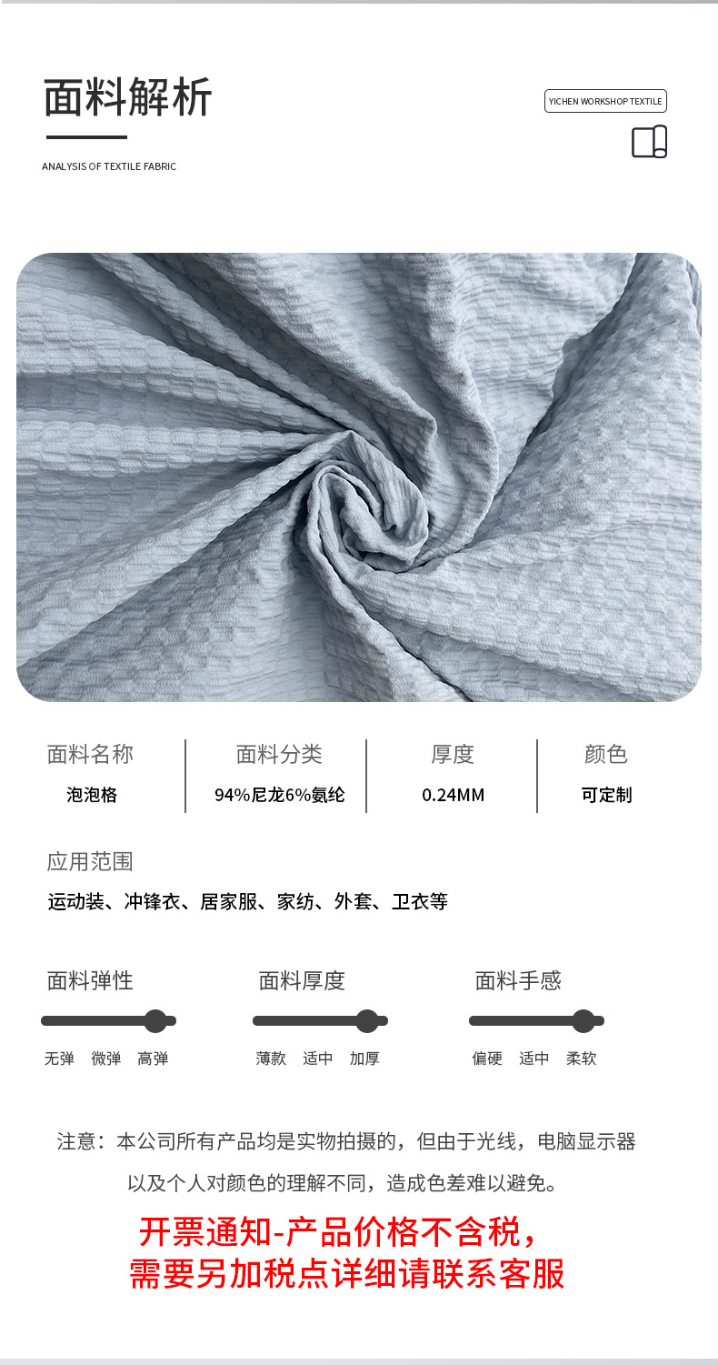 나일론 버블 격자 무늬 원단 4 면 폭탄 윈드브레이커 재킷 재킷 재킷 원단 방수제 정전기 방지 짠 직물