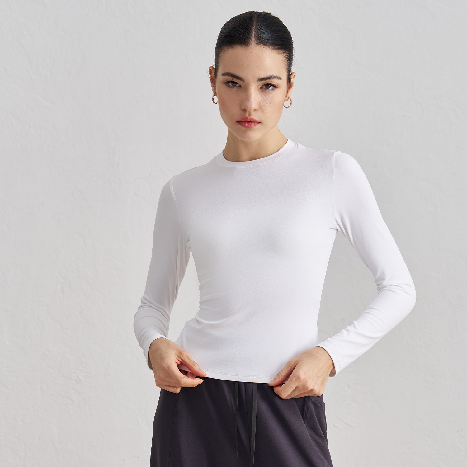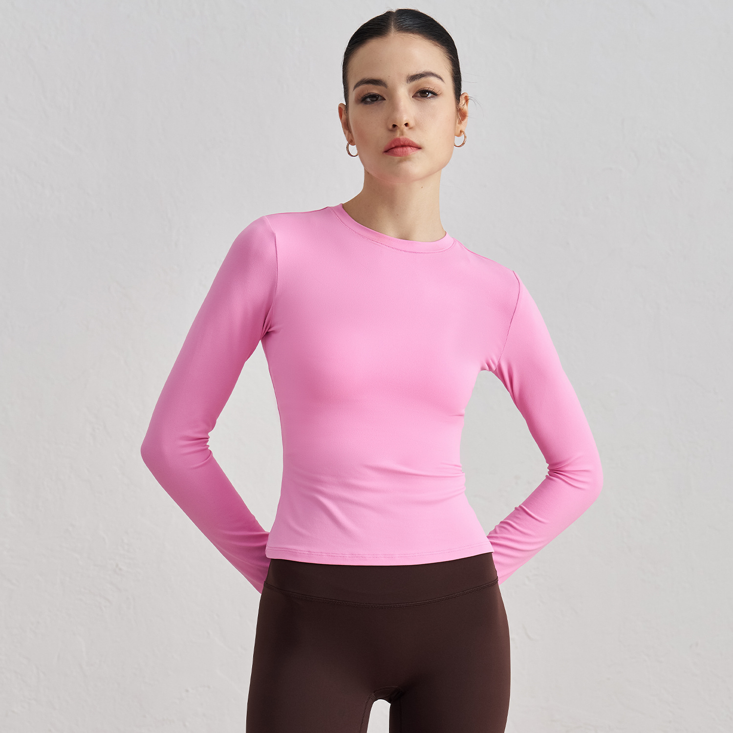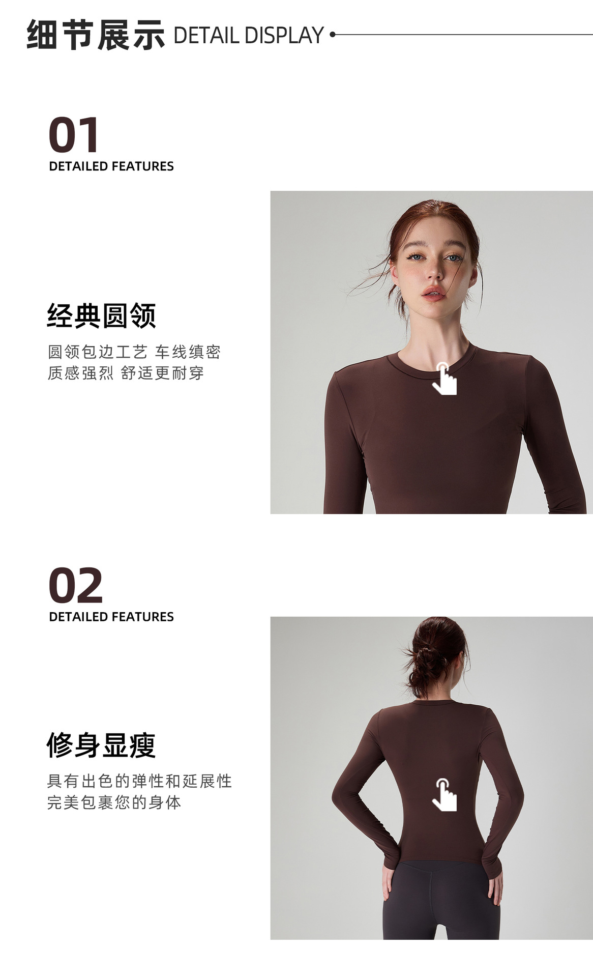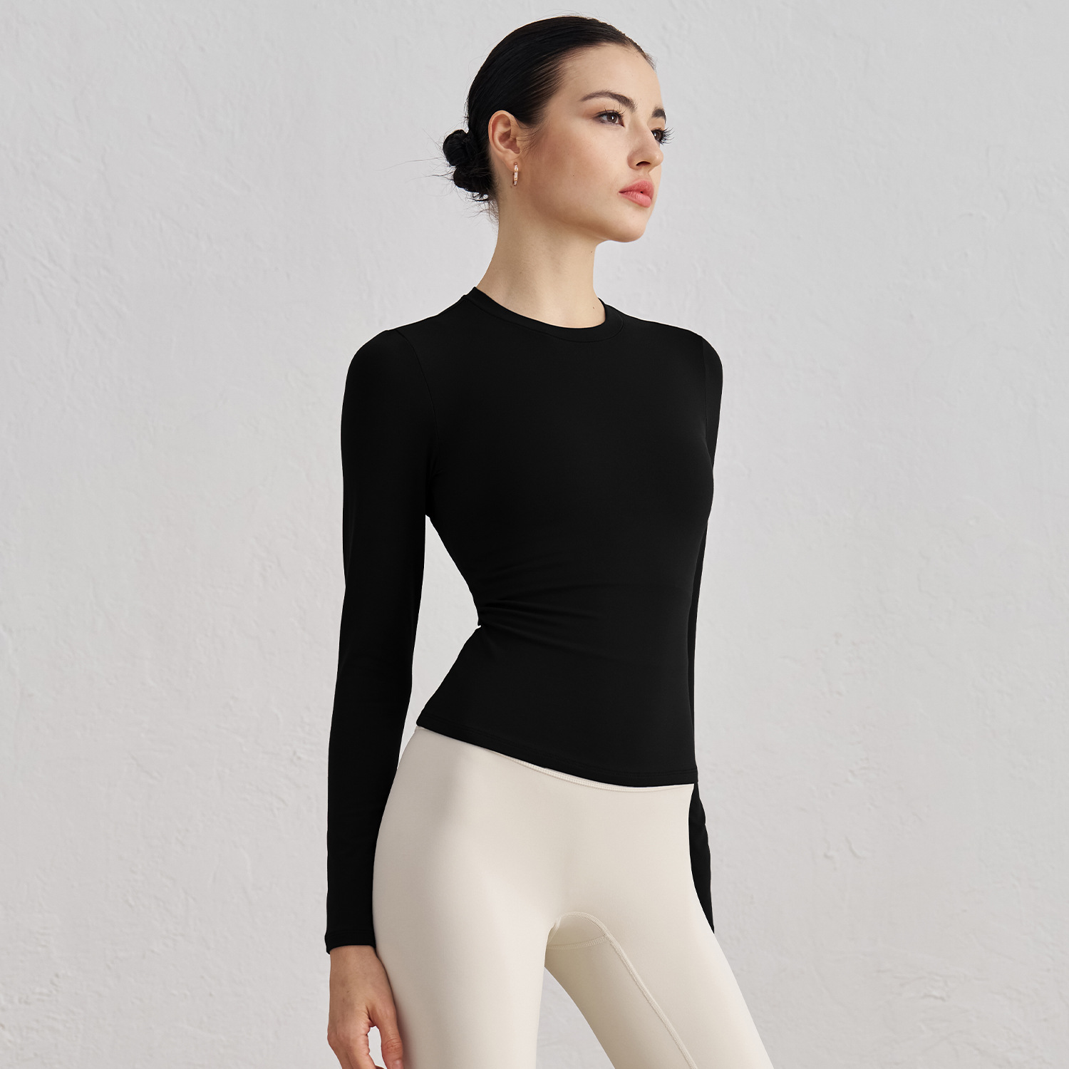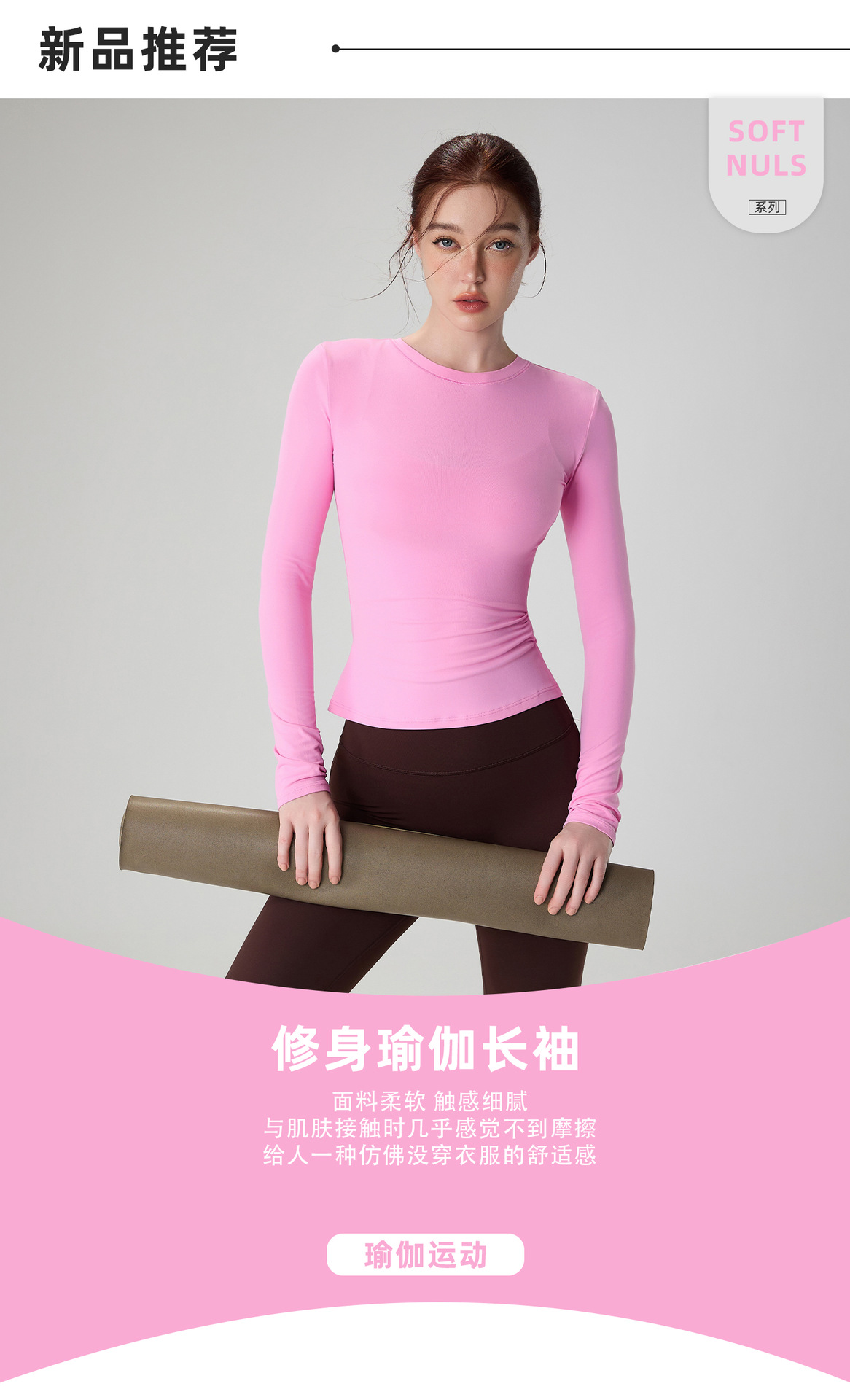 봄 신상 라운드넥 허리 슬림핏 요가 긴팔 여성 슬림핏 이너웨어 피트니스 탑 캐주얼 베이스웨어 요가복스토어 가기