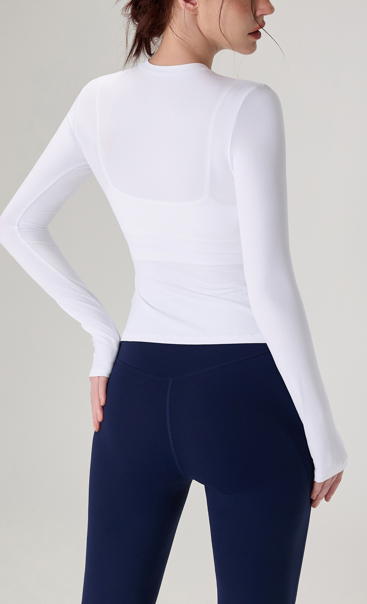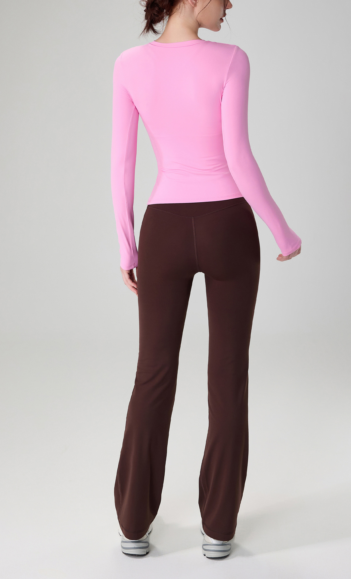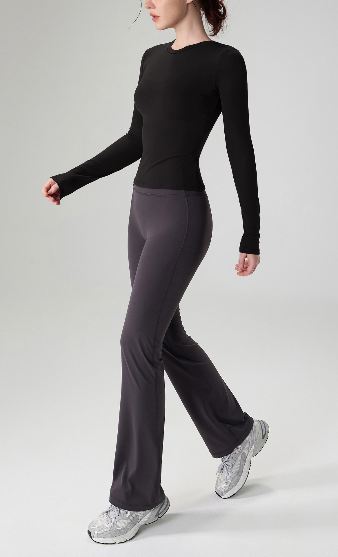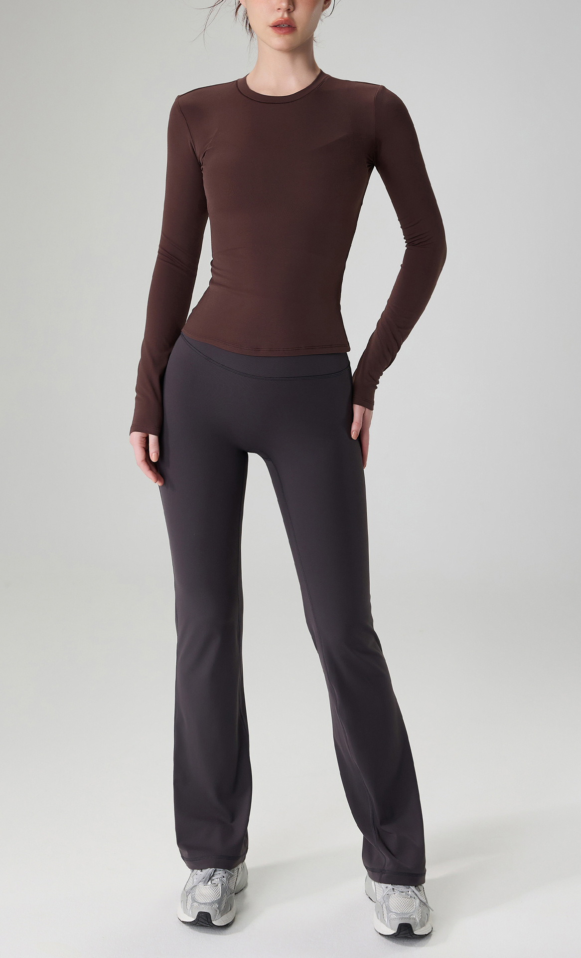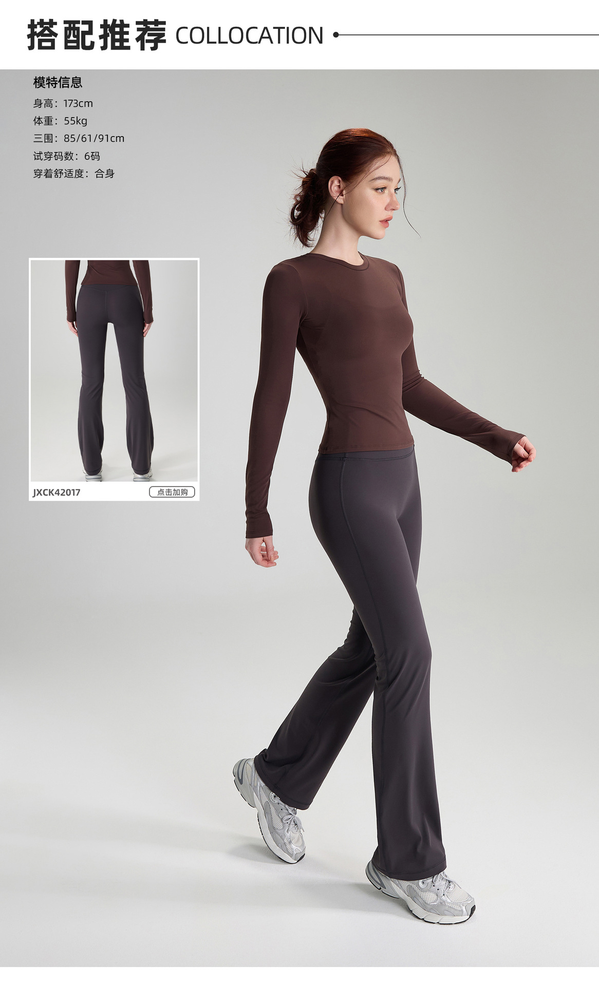 봄 신상 라운드넥 허리 슬림핏 요가 긴팔 여성 슬림핏 이너웨어 피트니스 탑 캐주얼 베이스웨어 요가복스토어 가기