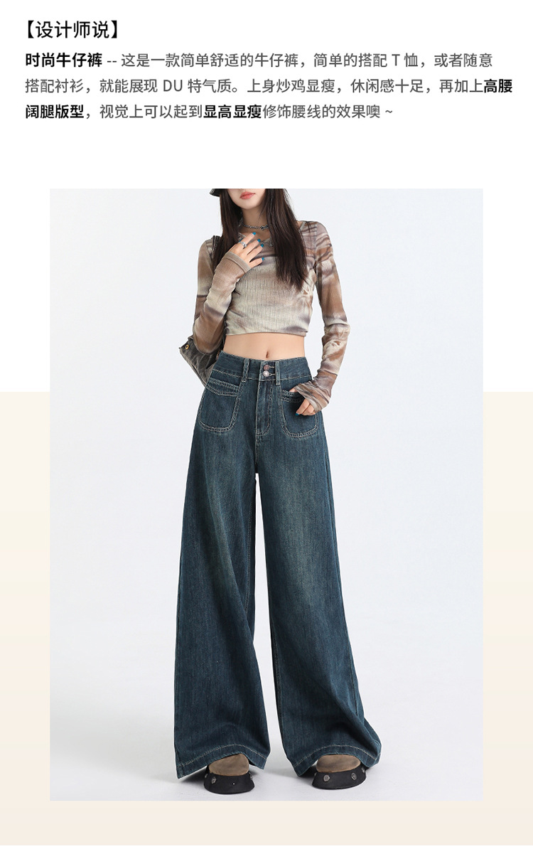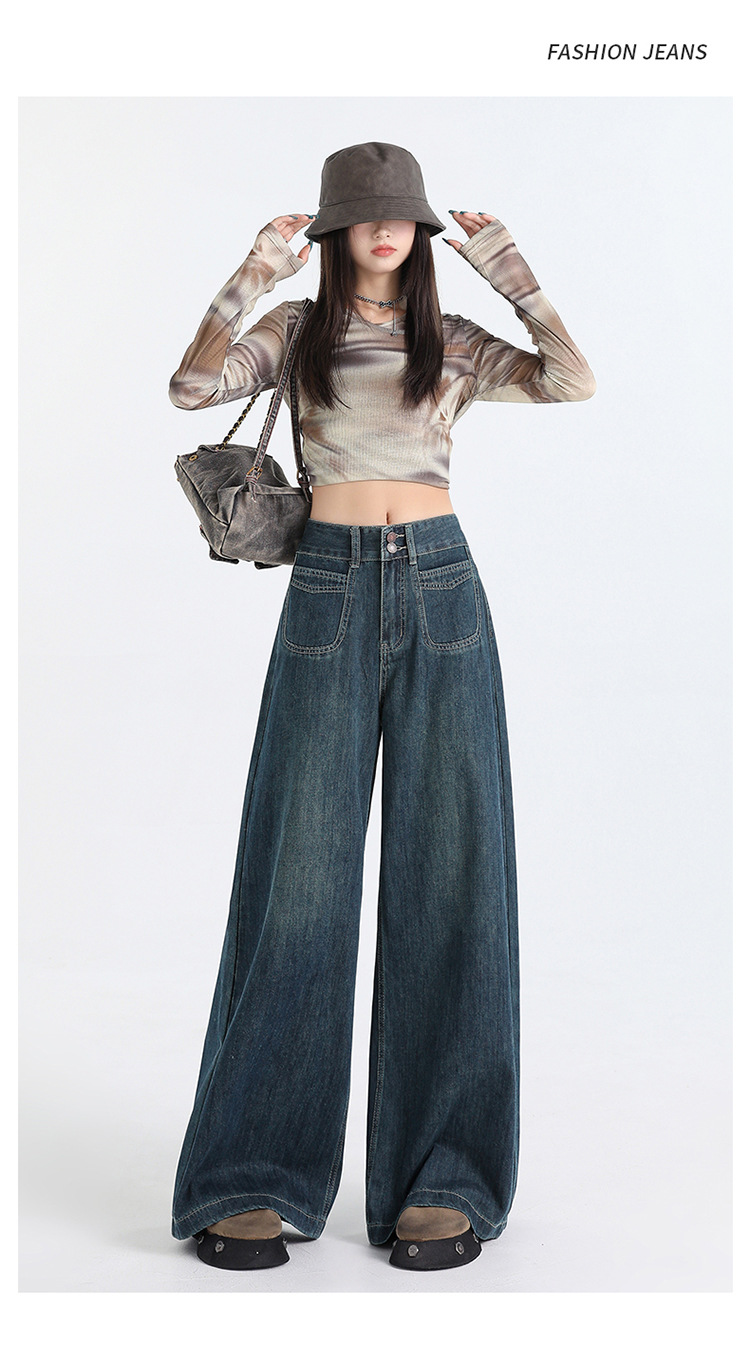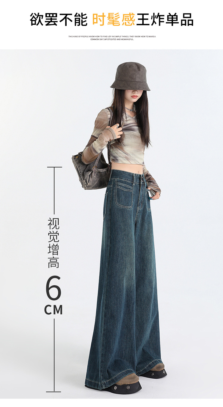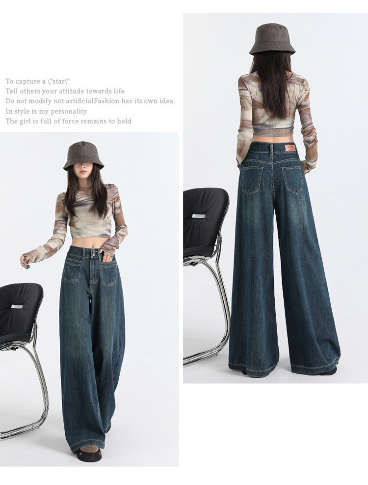 섹시한 와이드 레그 청바지 여성용 루즈핏 슬림 봄 스윙 팬츠 하이웨이스트 드레이프 스트레이트 팬츠 핫걸 스타일스토어 가기