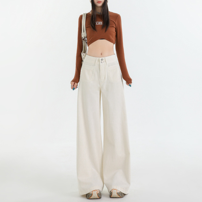 섹시한 와이드 레그 청바지 여성용 루즈핏 슬림 봄 스윙 팬츠 하이웨이스트 드레이프 스트레이트 팬츠 핫걸 스타일