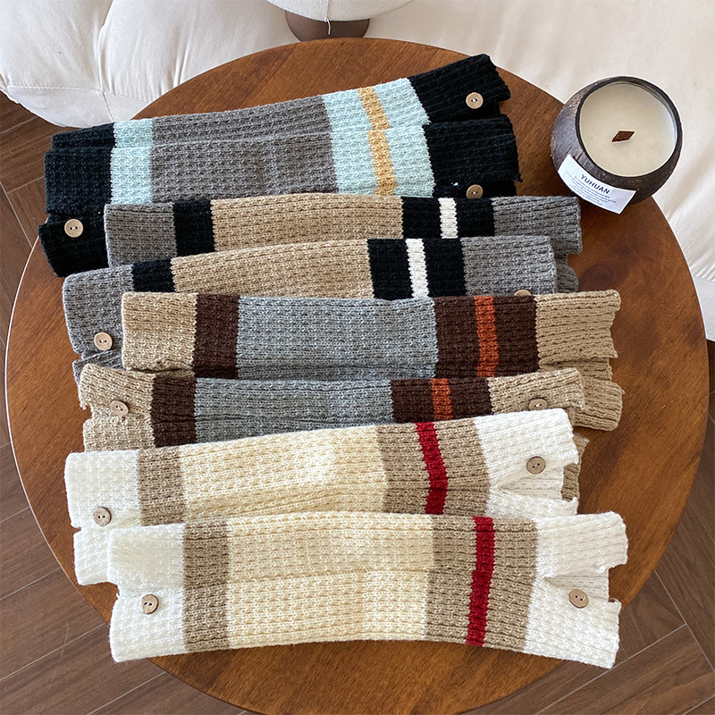 Maillard 컬러 스트라이프 콘트라스트 다리 양말 가을과 겨울 착용 JK 일본식 올 매치 버튼 스플릿 스택 양말